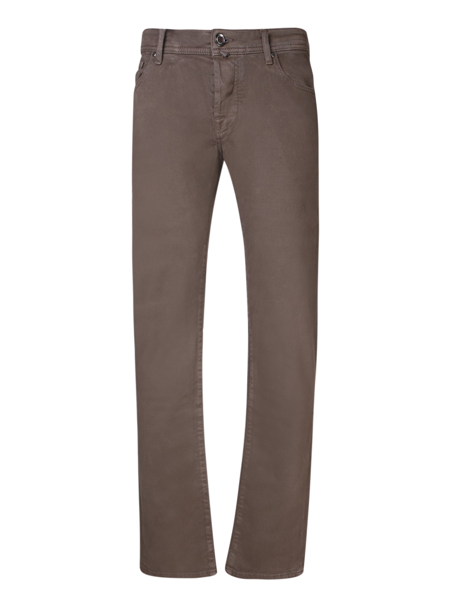 Express an elegant sense of style with these brown grey cotton trousers by Jacob Cohen, perfect for casual-chic ensembles.