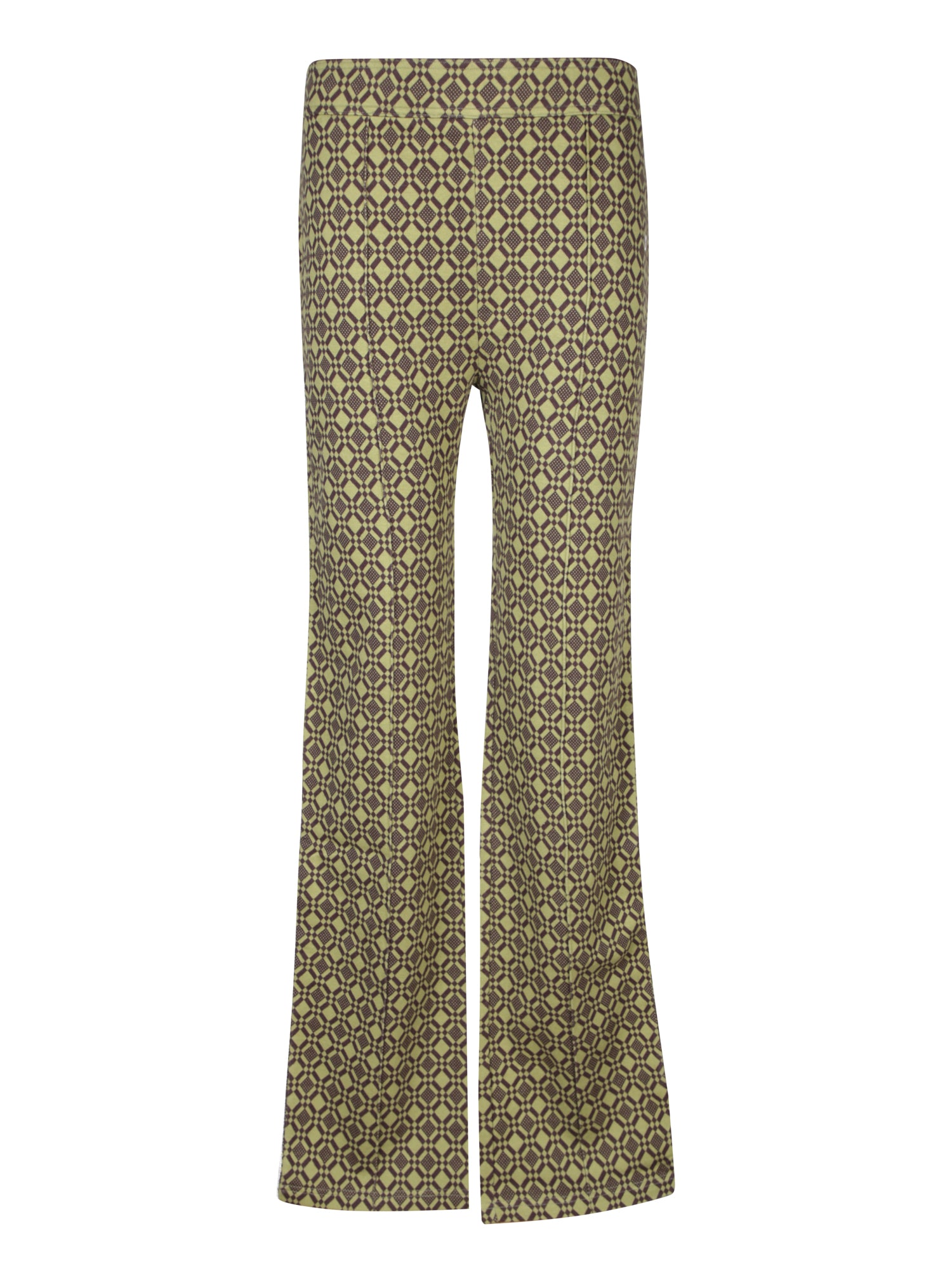 Flared Trousers with geometric pattern. Lightweight and comfortable material. Regular fit.