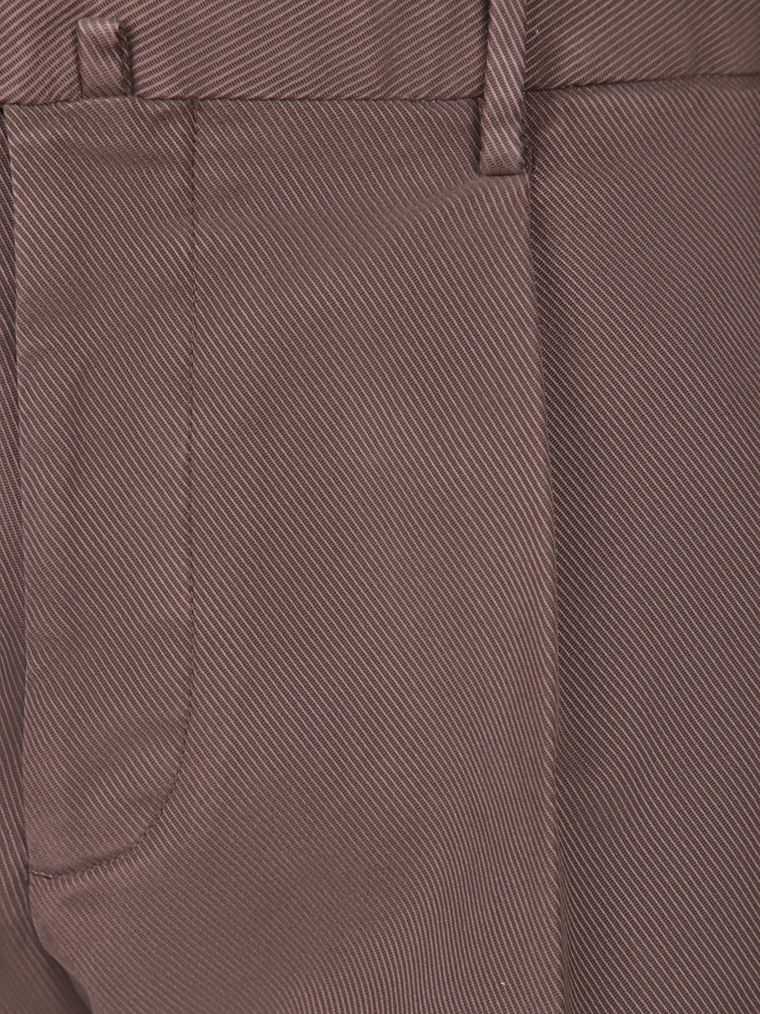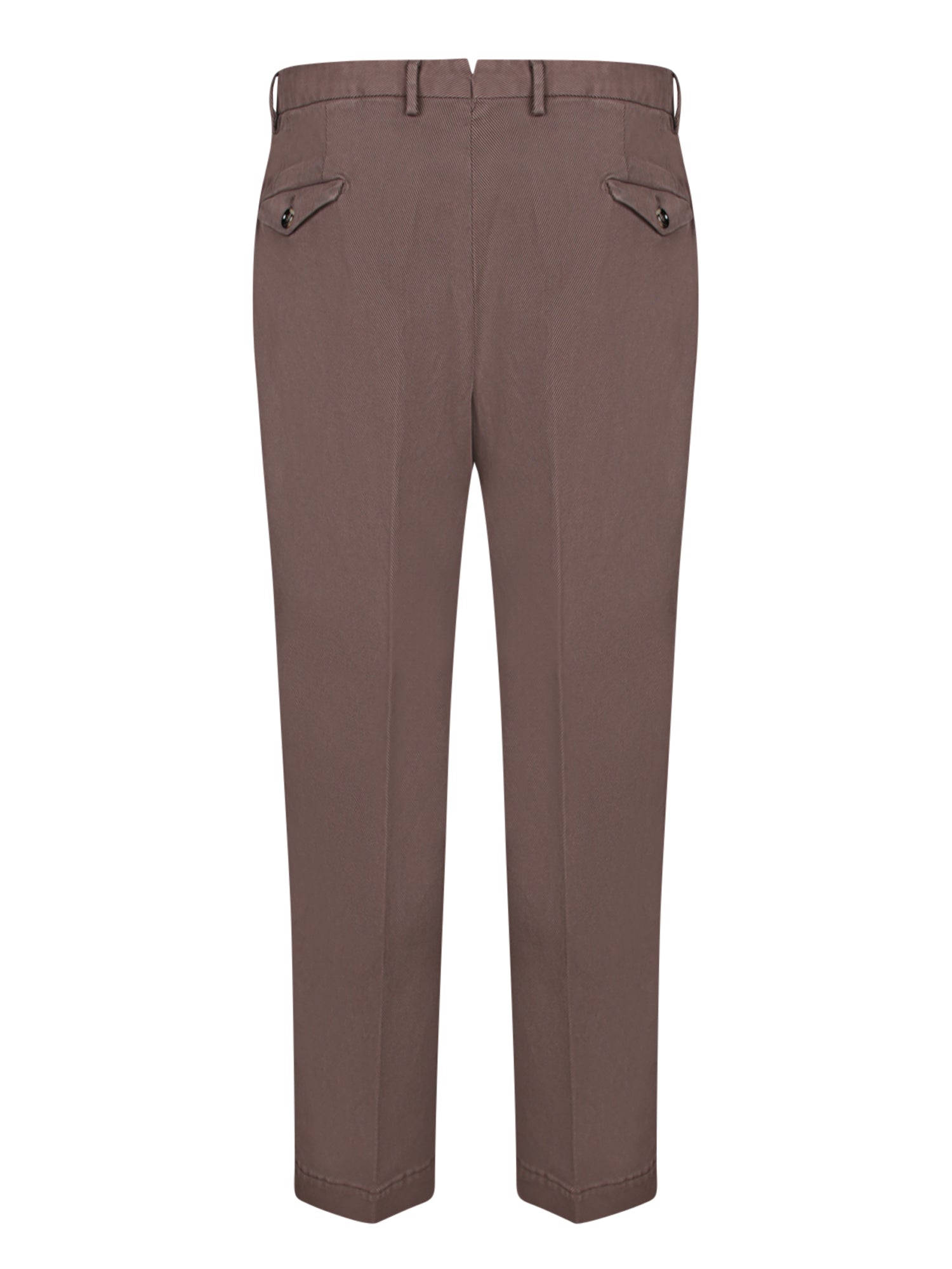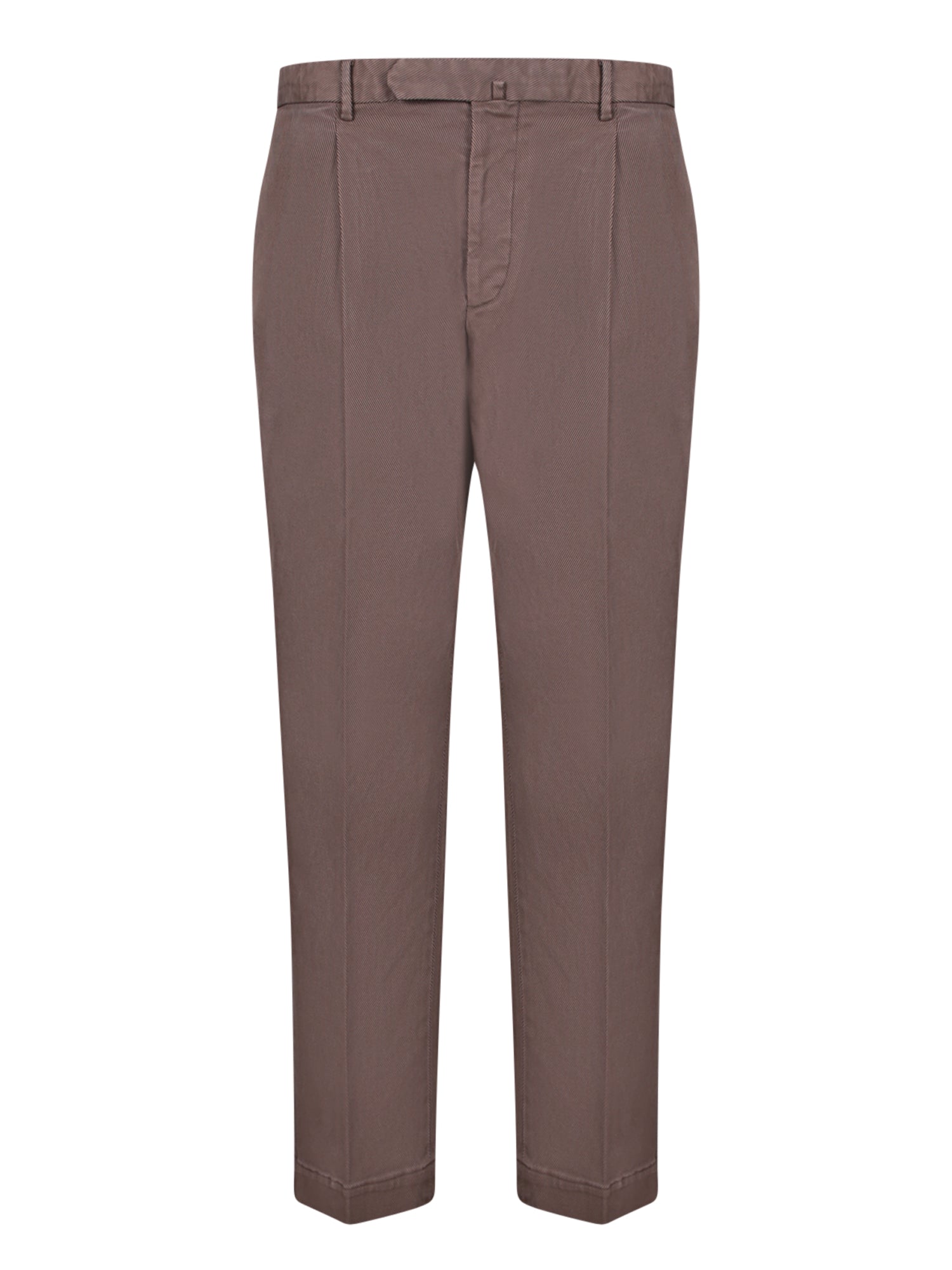 Slim fit trousers in stretch fabric. Front zip and button closure. Side and back pockets.