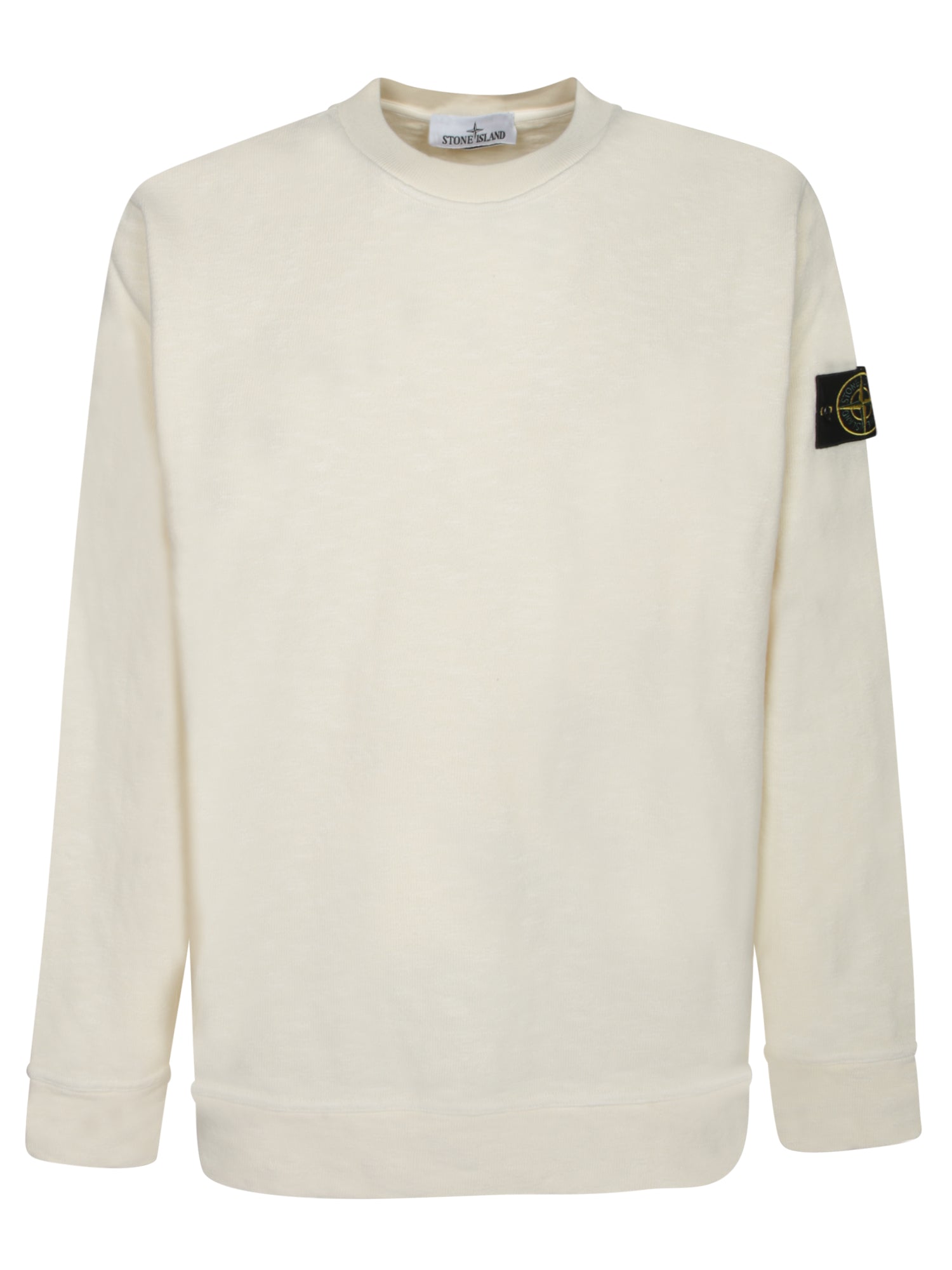Long sleeve sweatshirt with iconic removable badge on the arm. Ribbed finishes on collar, cuffs, and hem. Brushed fabric interior for maximum comfort.