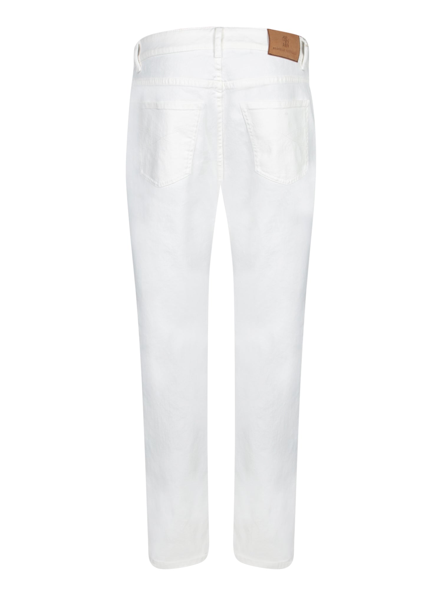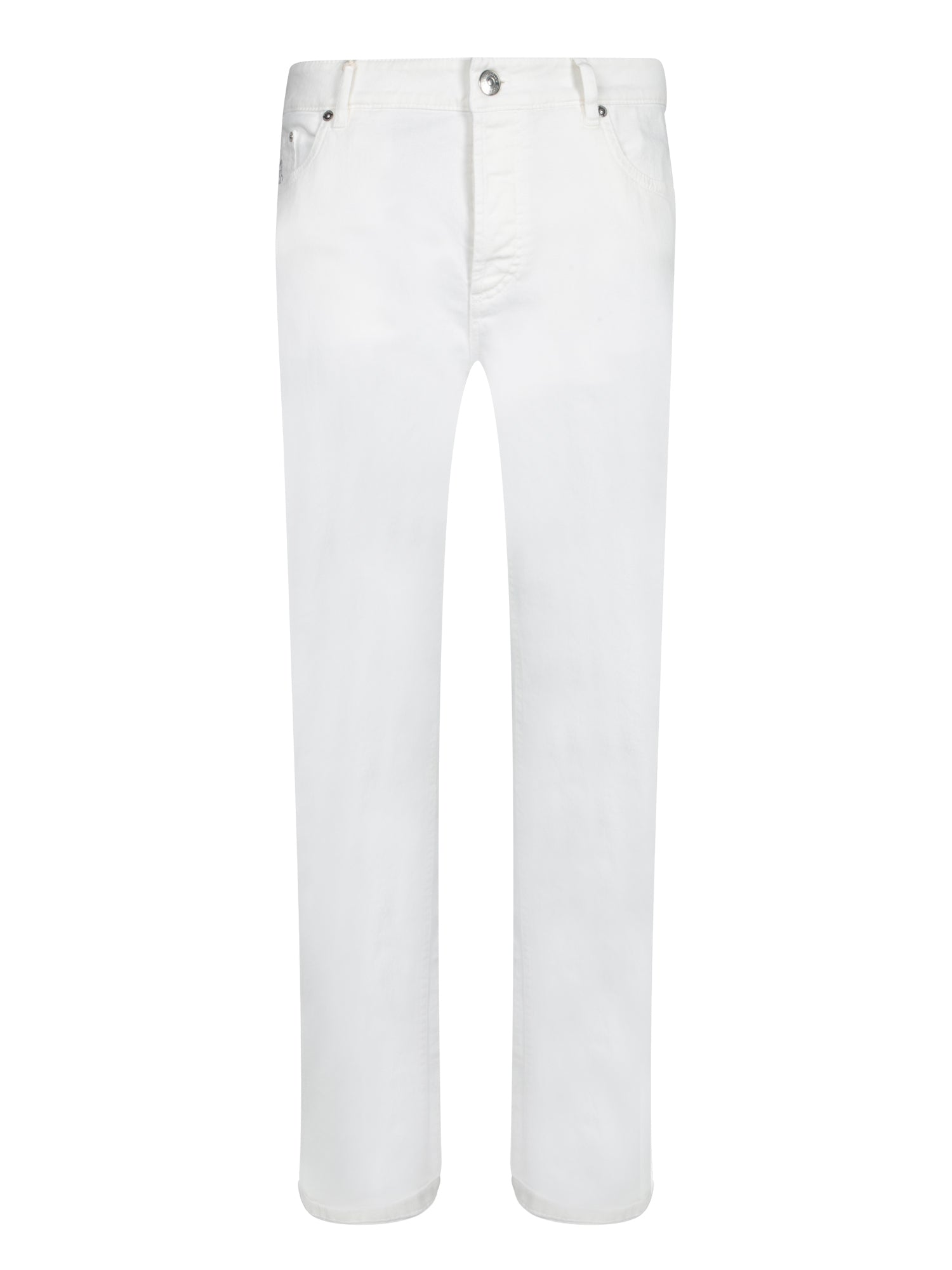 Brunello Cucinelli's white denim pants are perfect for a sophisticated yet relaxed look. The minimalist design and comfortable fit make these pants a must-have for any season.