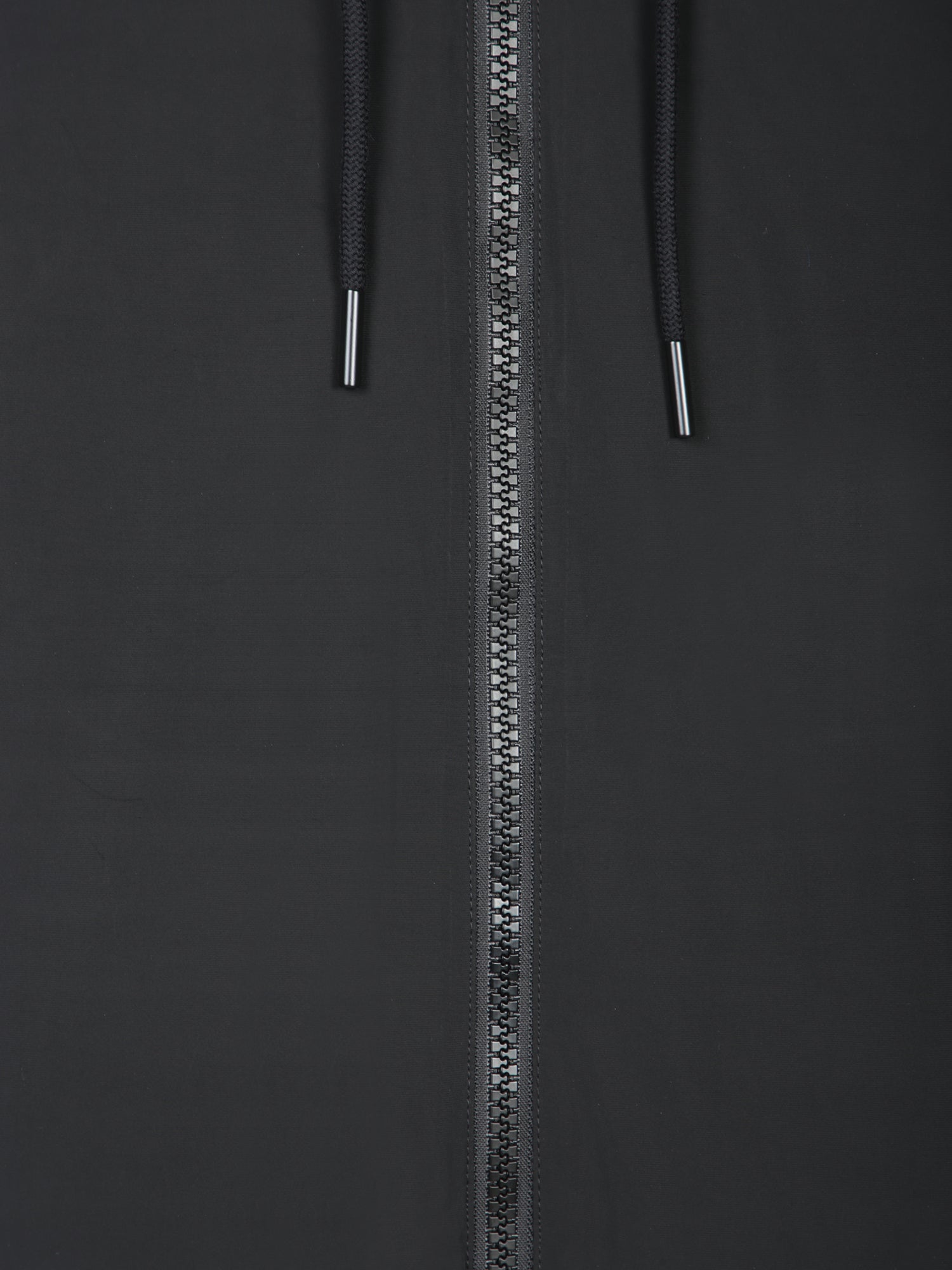 Jacket with hood and synthetic fur lining. Central zip closure. Side zip pockets. Elasticized cuffs.