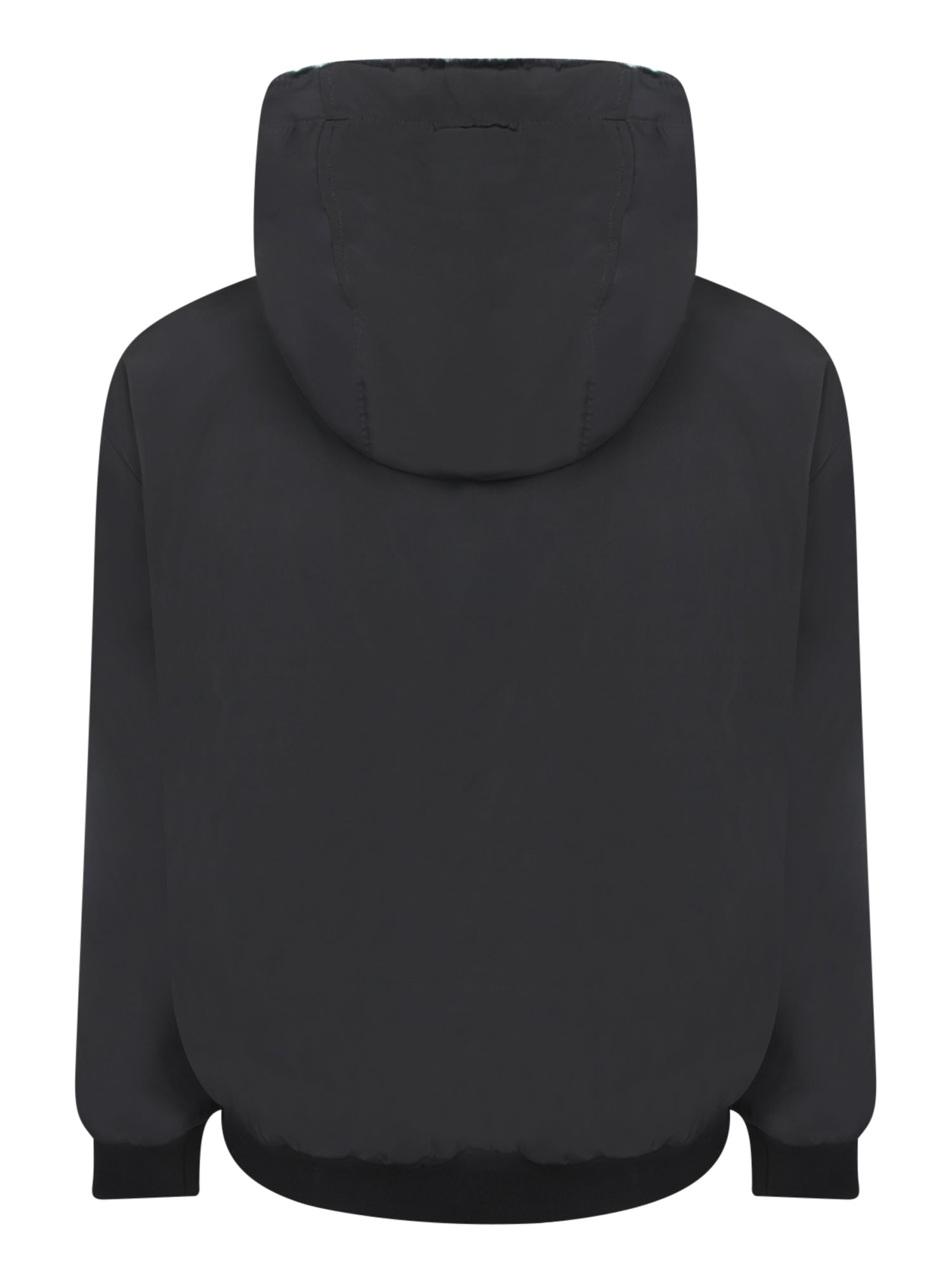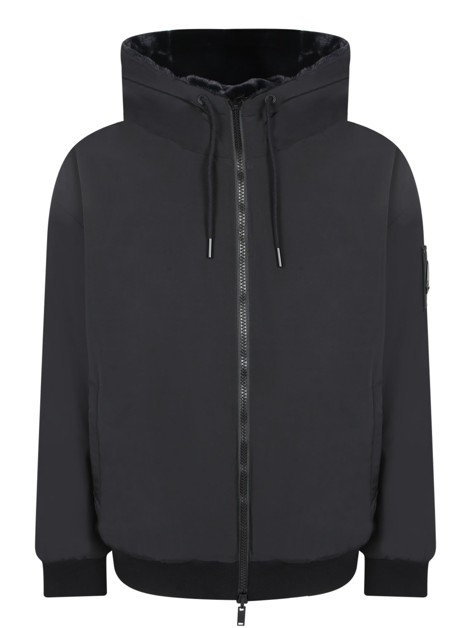 Jacket with hood and synthetic fur lining. Central zip closure. Side zip pockets. Elasticized cuffs.