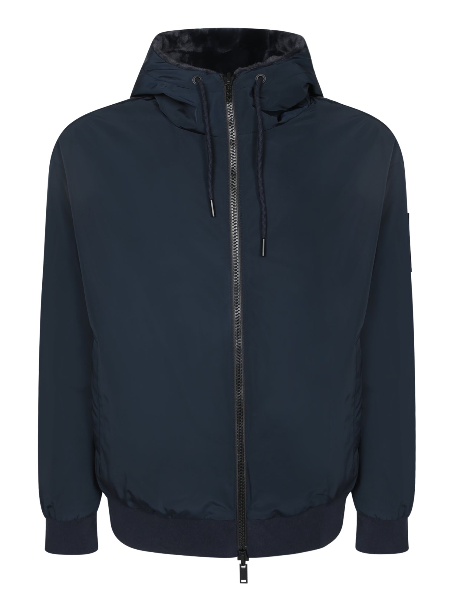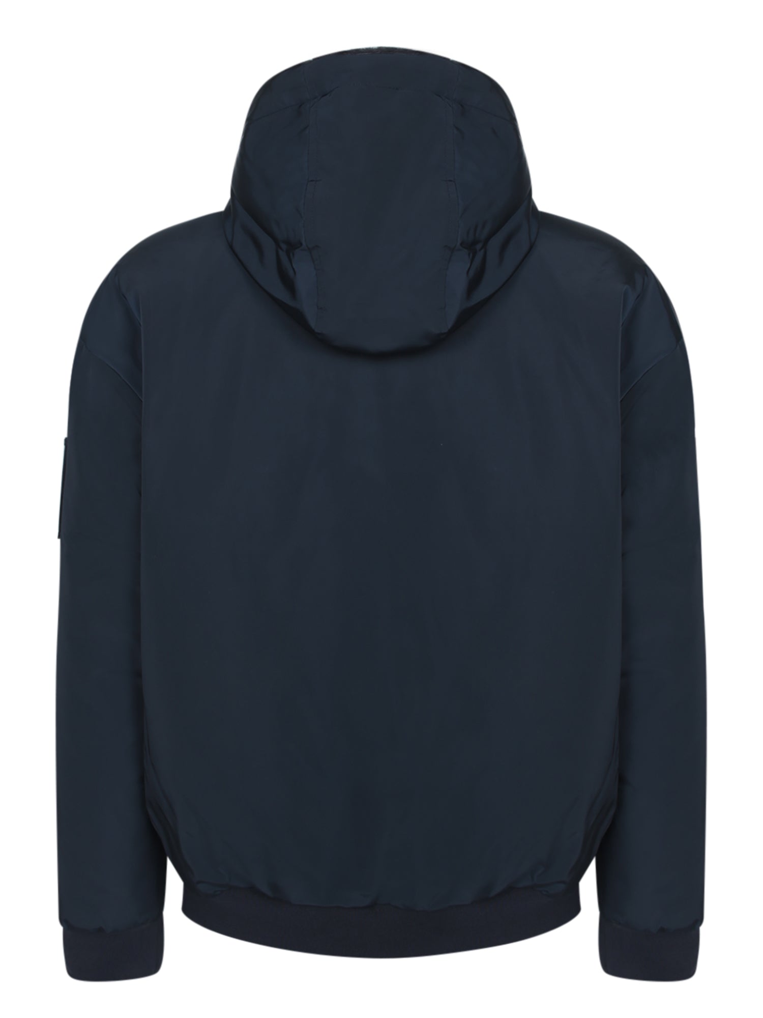 Padded jacket with hood. Front zip closure. Elasticated cuffs and hem.
