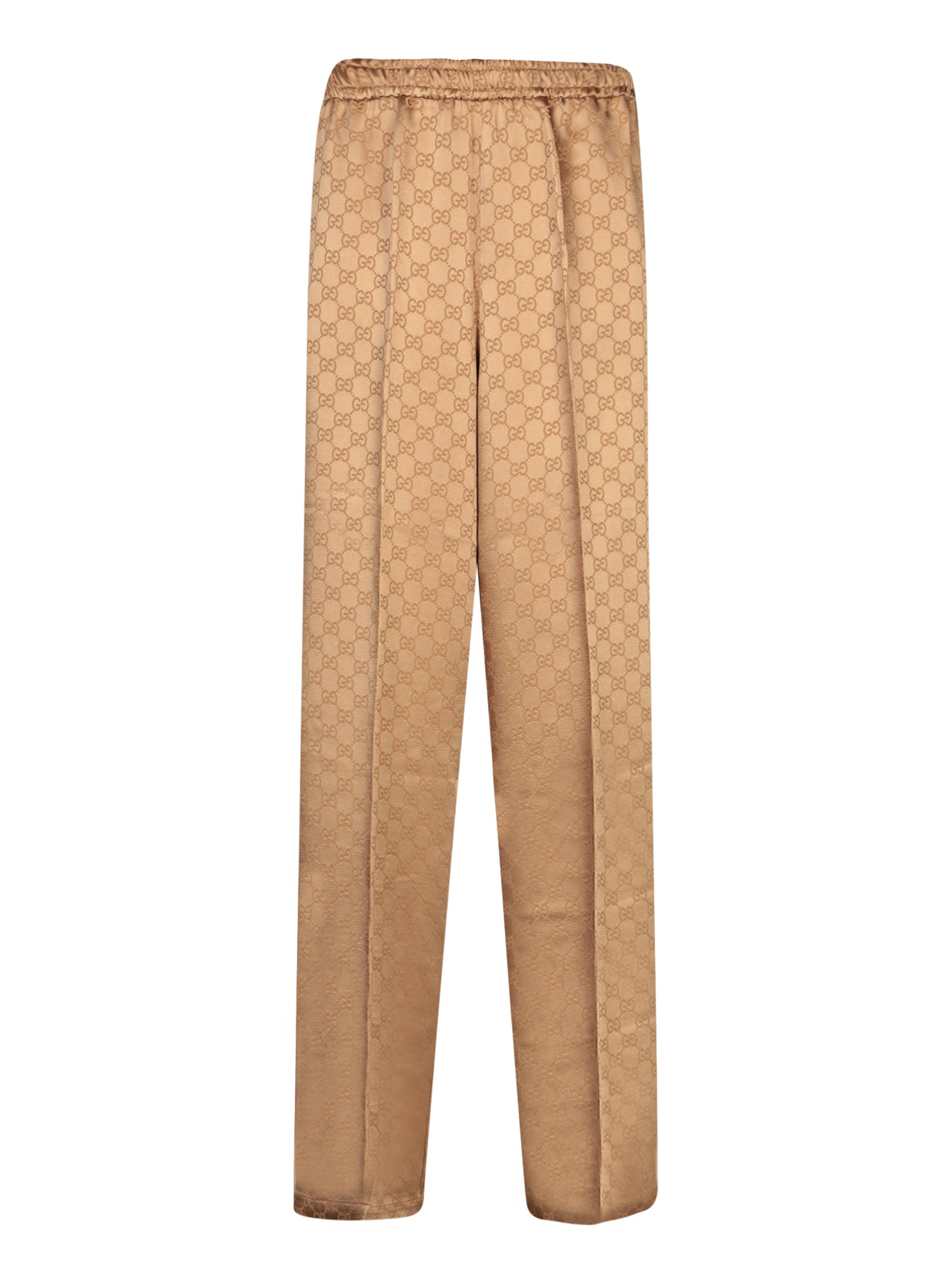 Viscose pants with all-over GG print. Elastic waistband. Straight cut.