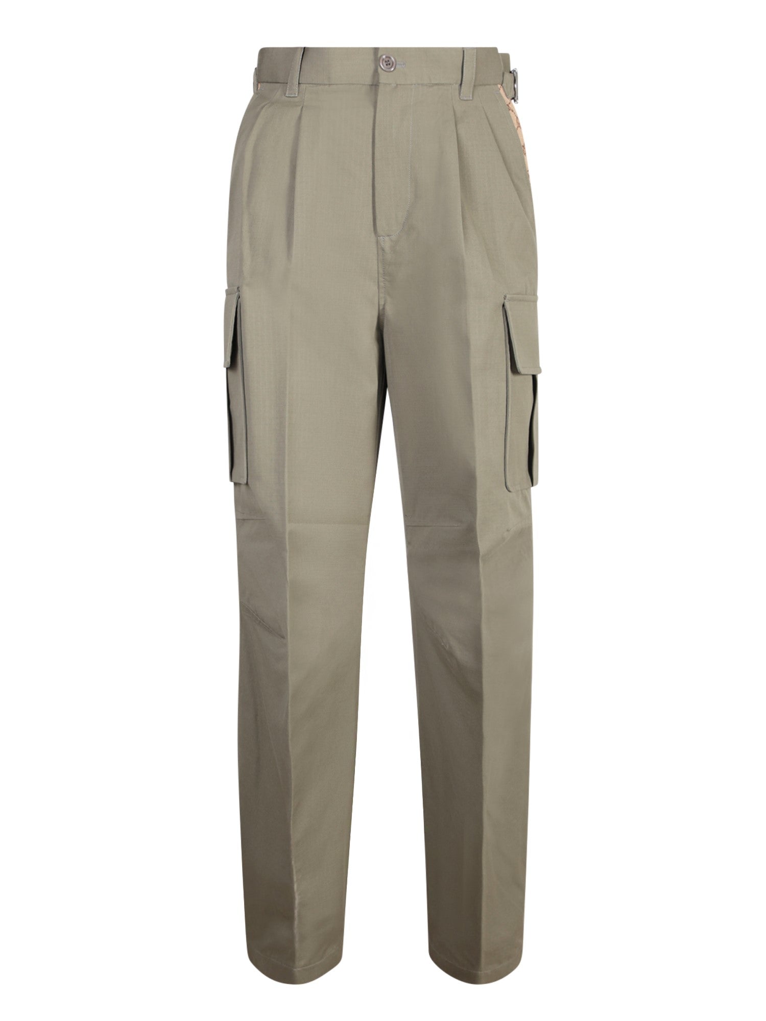 Regular waist. Belt loops. Two side cargo pockets. Two rear flap pockets. Concealed botton and zip fastening. GG Supreme motif. Color: army green