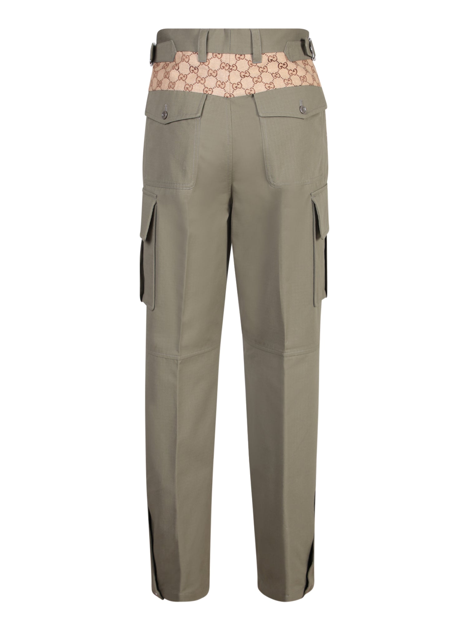 Made of green cotton, these pants are enhanced with a GG fabric insert, which adds subtle logo detail to the style.