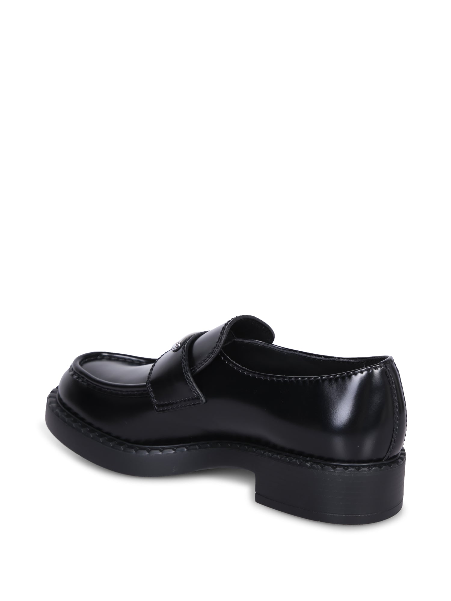Roundtoe. Front lace-up fastening. Triangle logo patch to the side. Rubber sole.