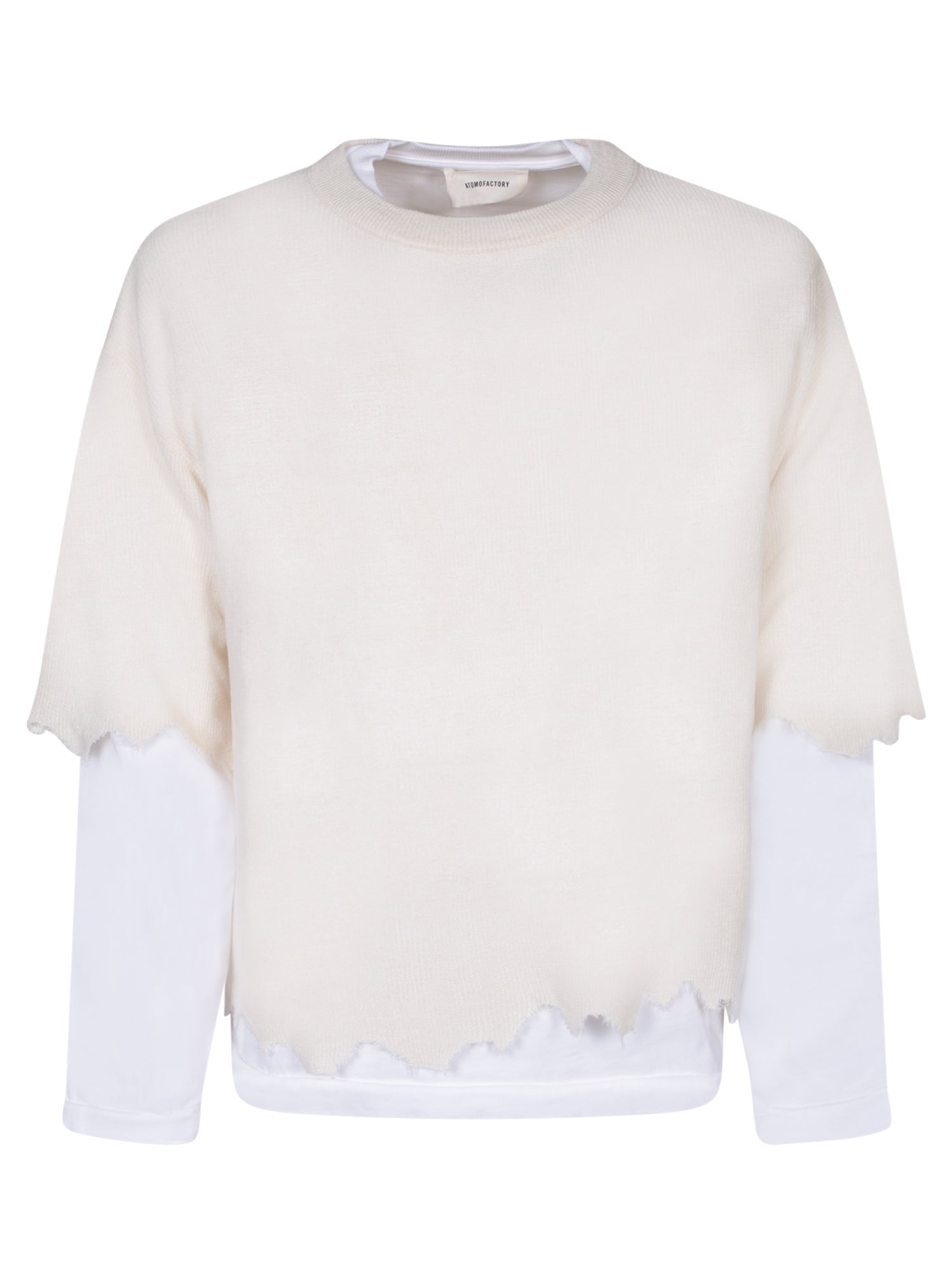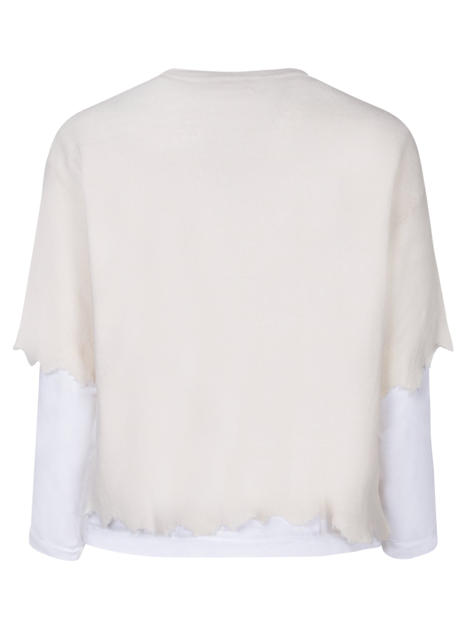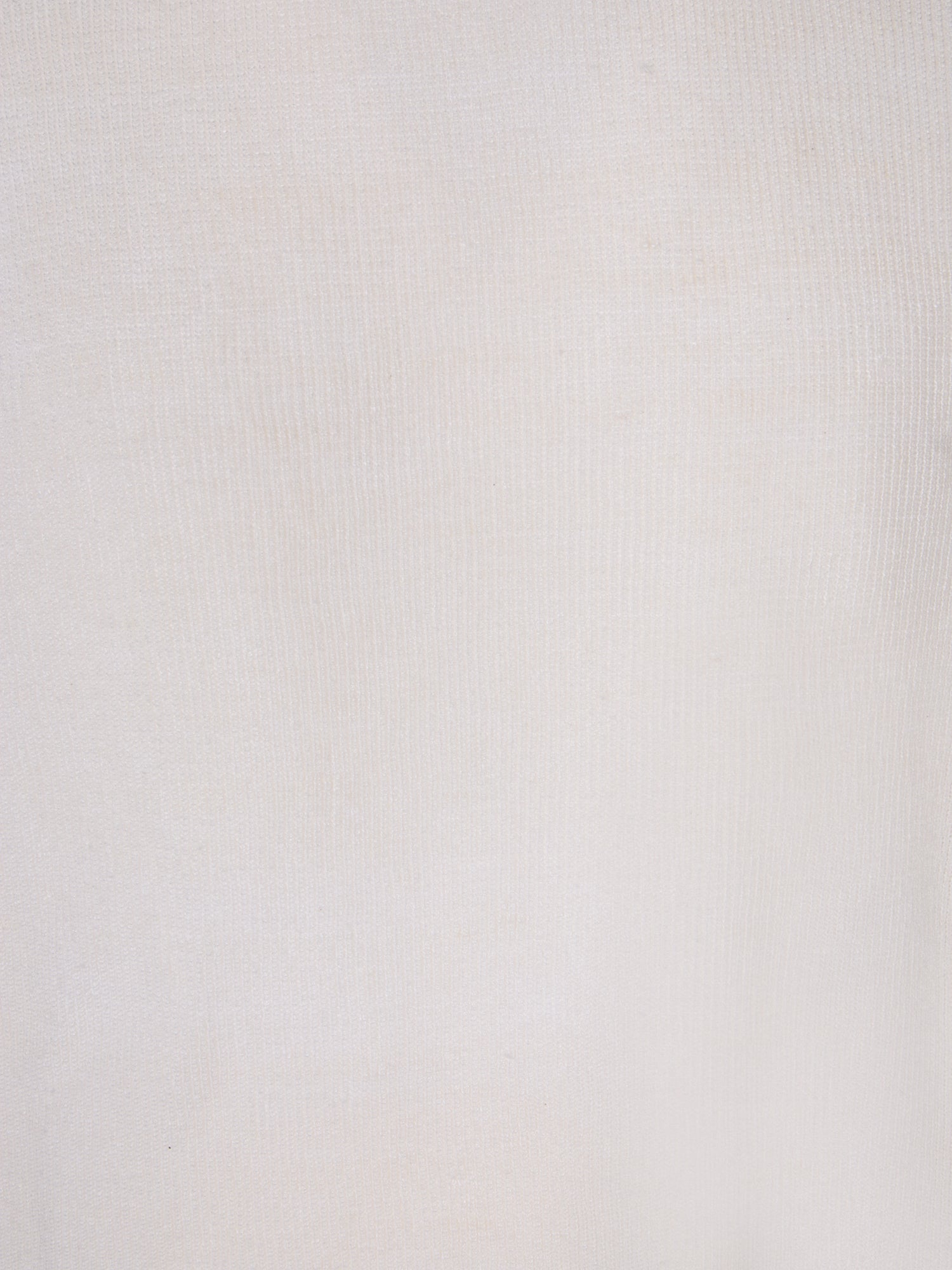 Long sleeve sweater. Cream color with accentuated slits on the sleeves and bottom hem. Crew neck.