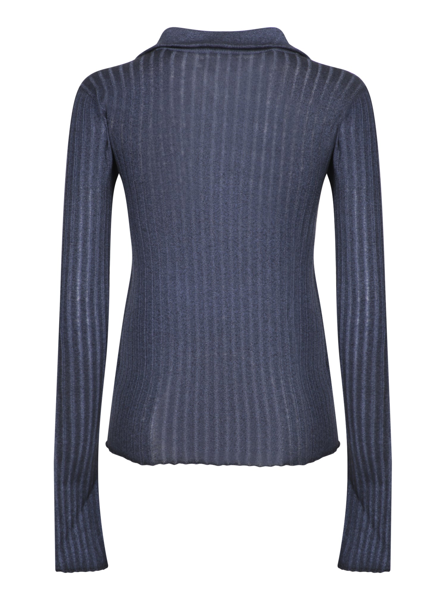Dark Blue Ribbed Wool Polo