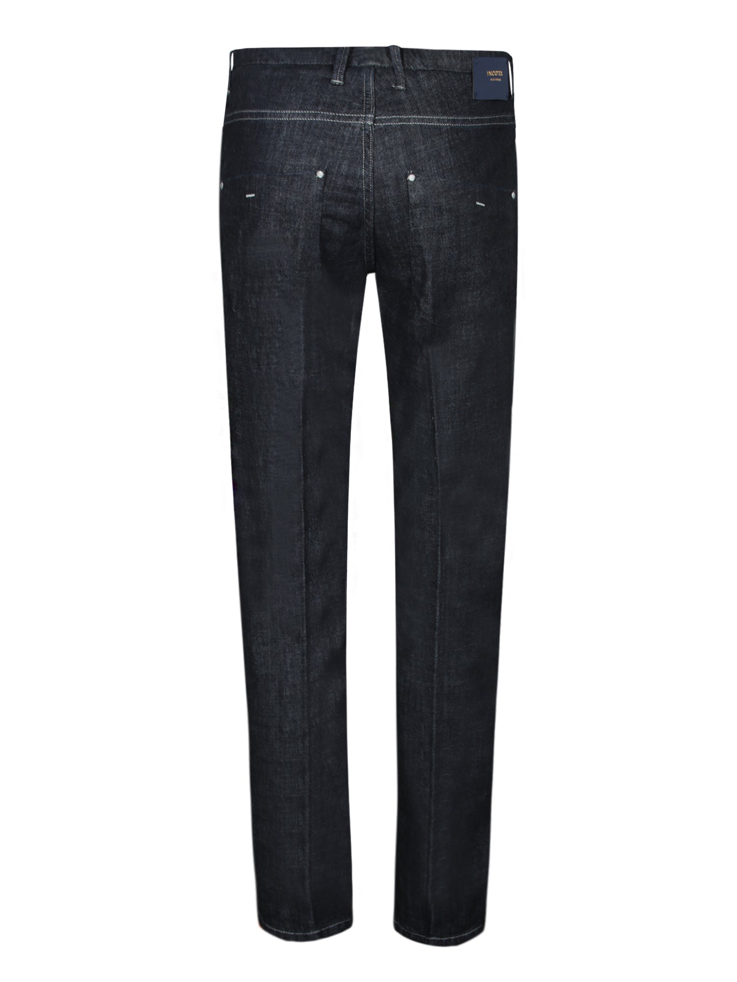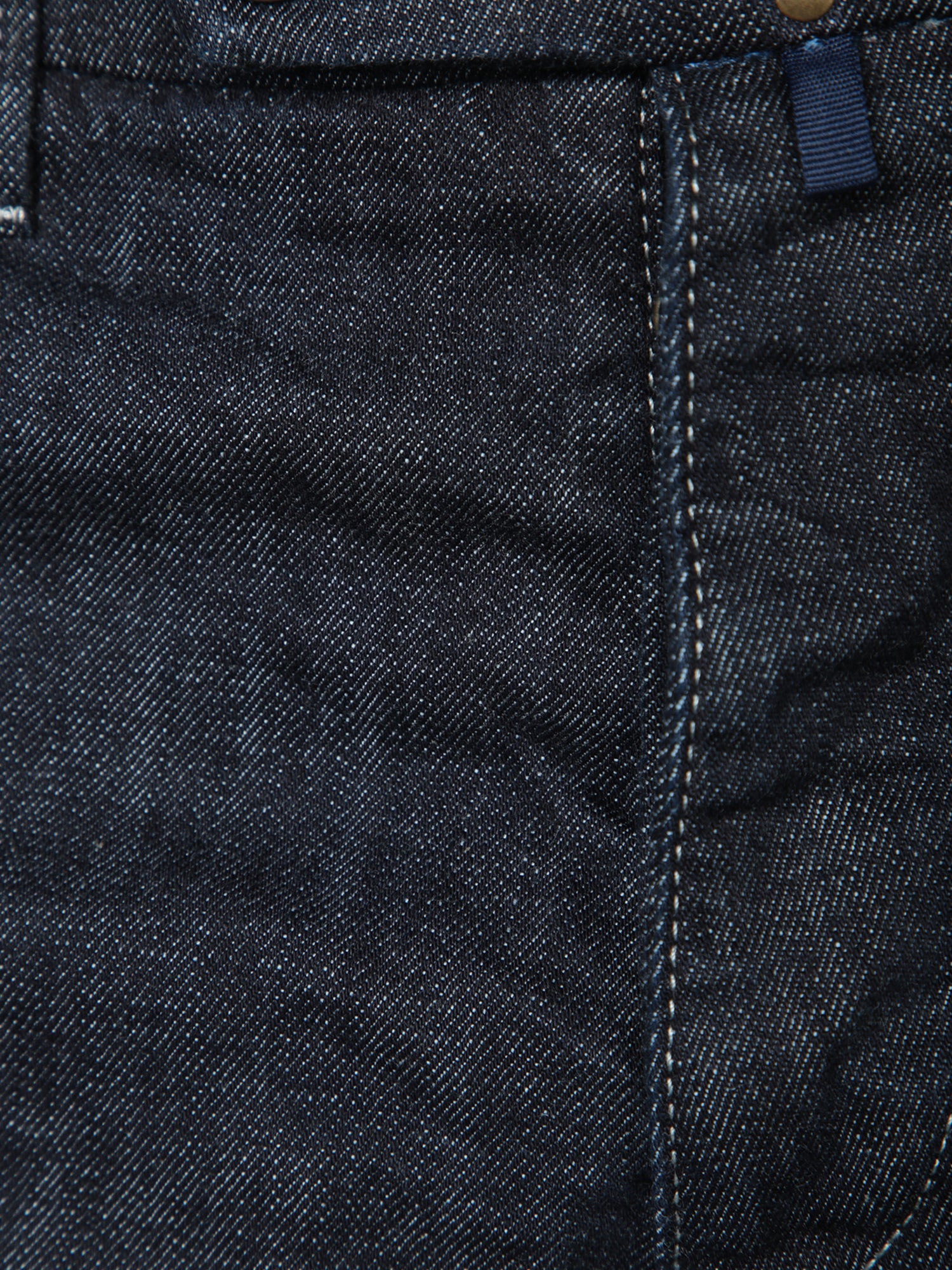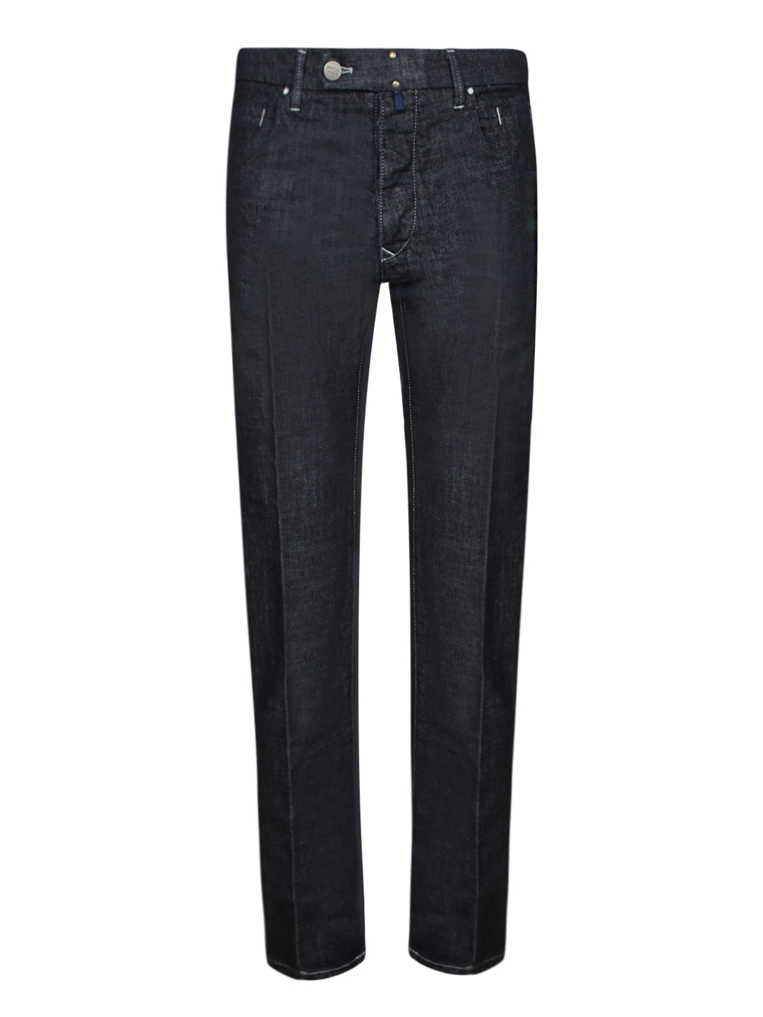 Five-pocket jeans. Front zip and button closure. Belt loops.