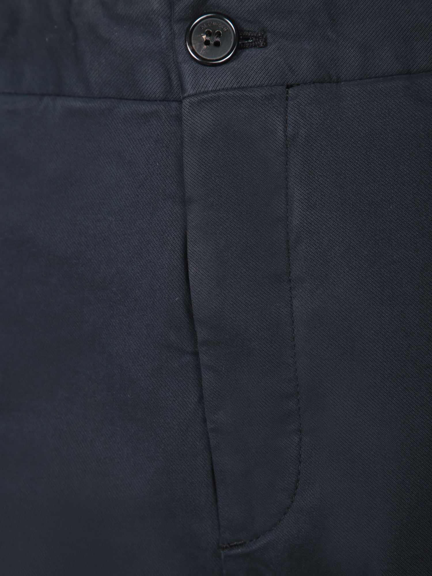 Slim cut. Zip and button closure. Side and back pockets.