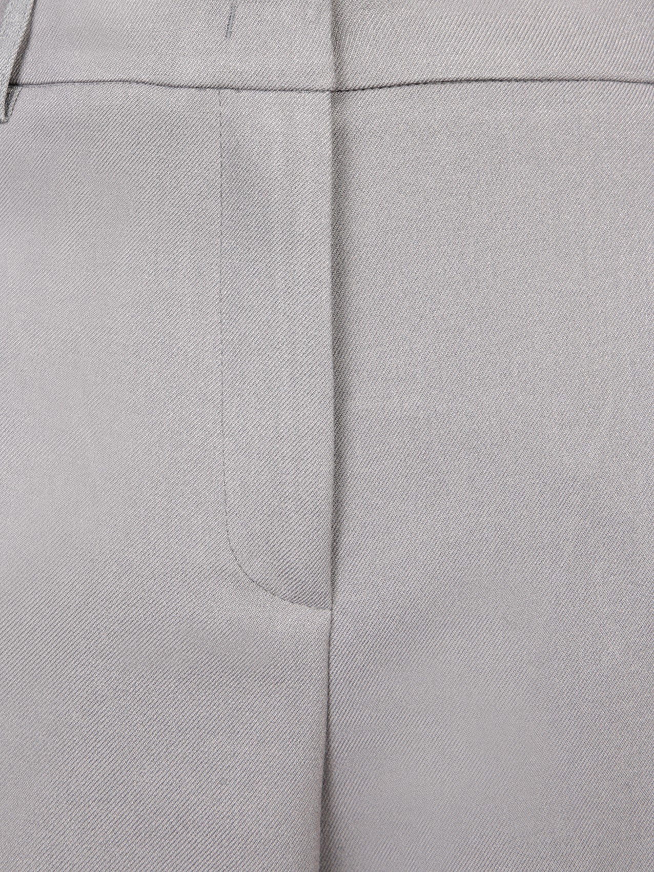 High waist with concealed closure, inset side pockets, wide leg cut.