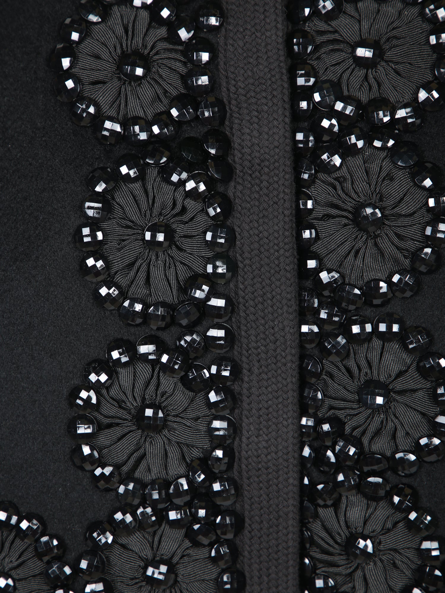 Jacket featuring raised floral embroidery, frontal zip closure, and ribbed fabric trims.