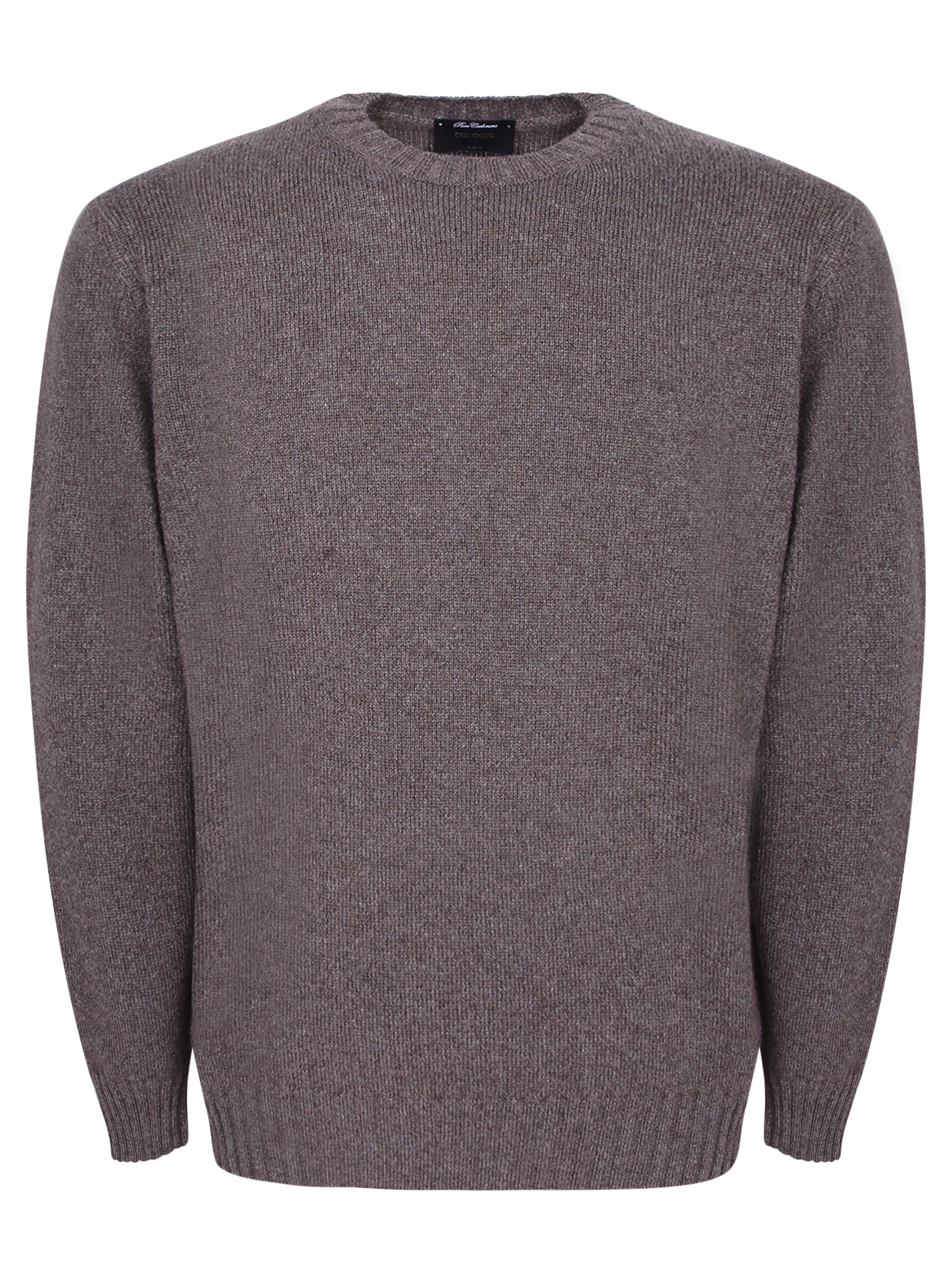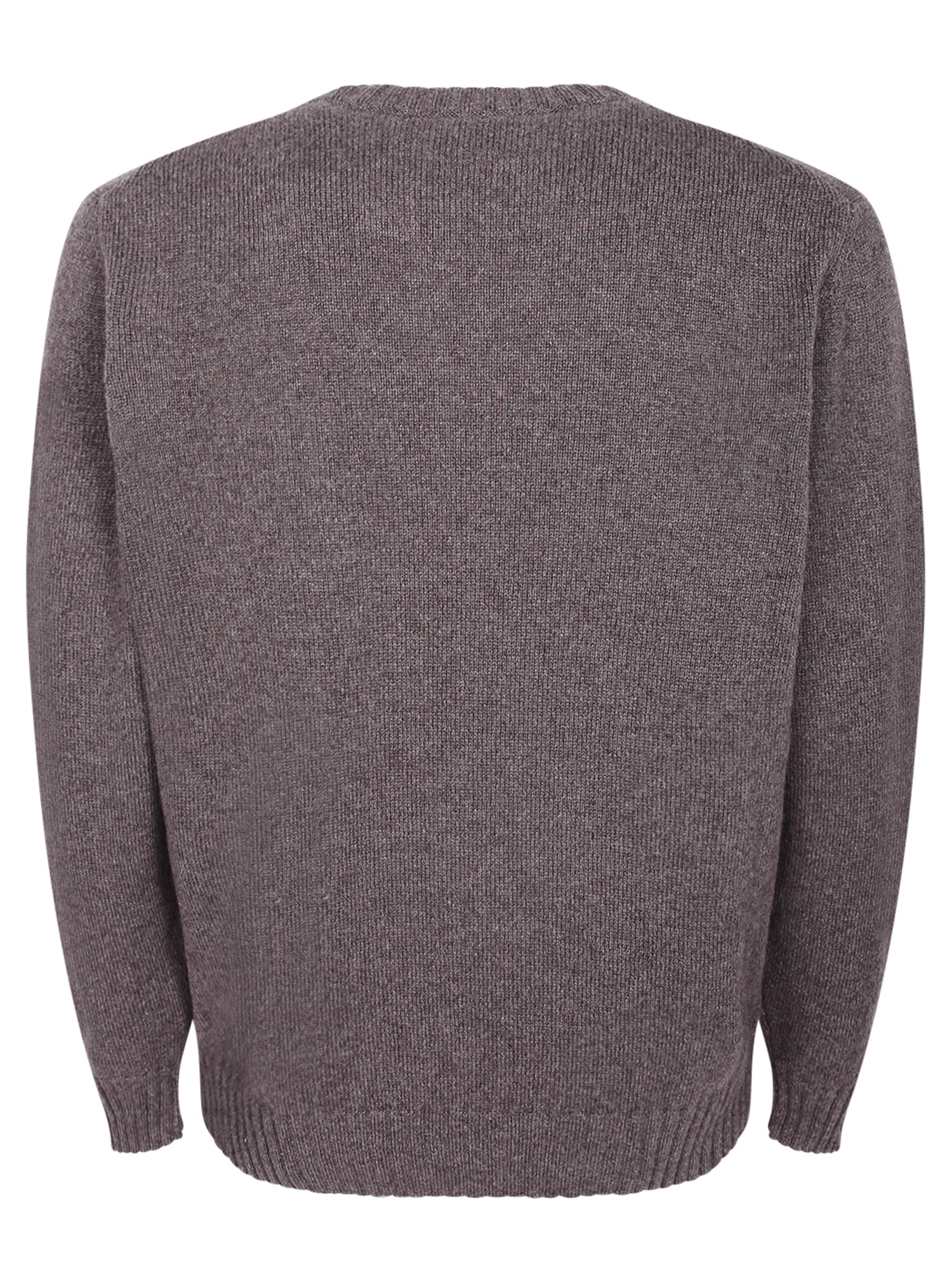 Round neck sweater in pure cashmere. Ribbed finishes on collar, cuffs, and hem. Solid dove grey color.
