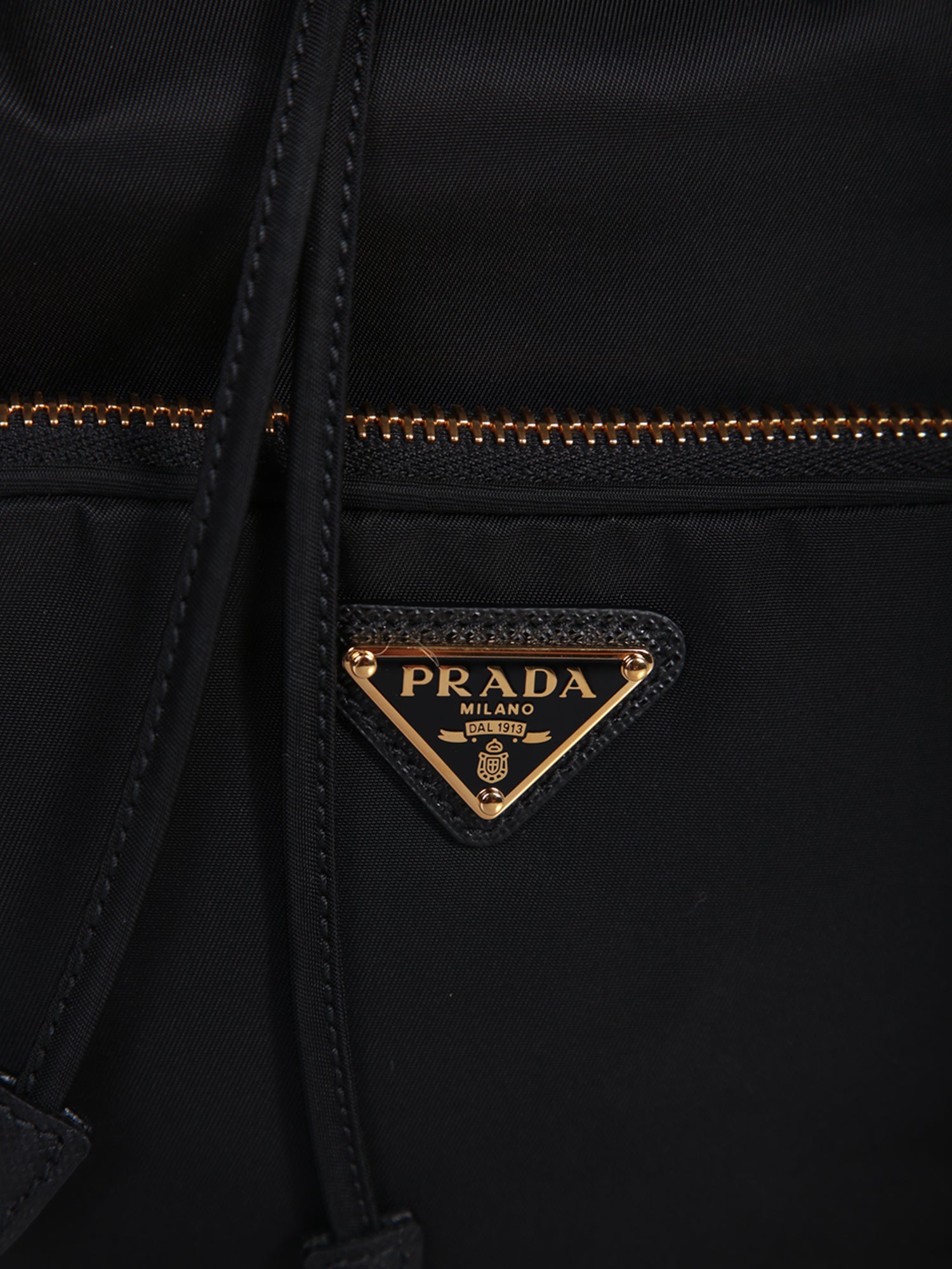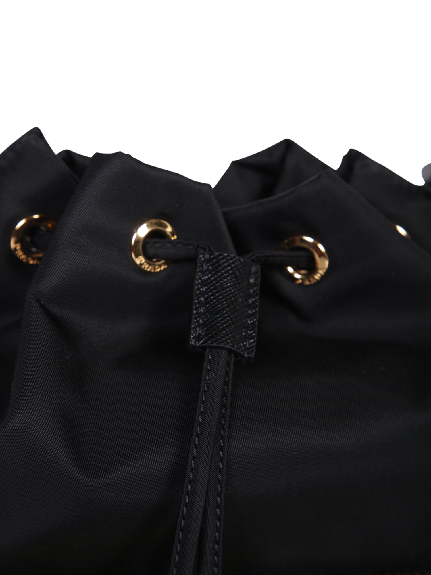 Leather details. Drawstring fastening. Traingle logo to the front. Size: 22.5 x 12 x 17.5 cm