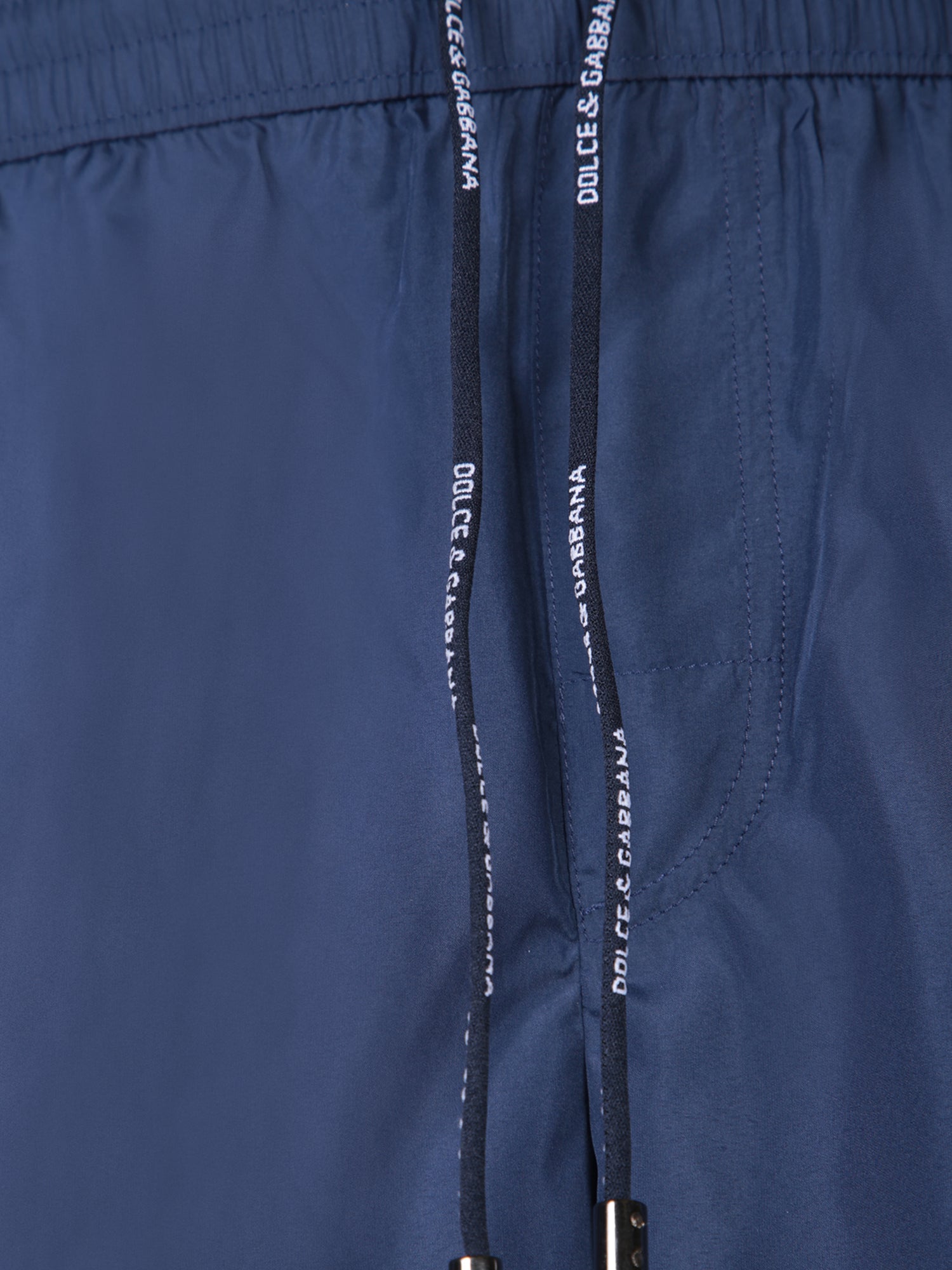 Medium-length swim shorts. Elastic waist with drawstring. Woven logo along the drawstring.