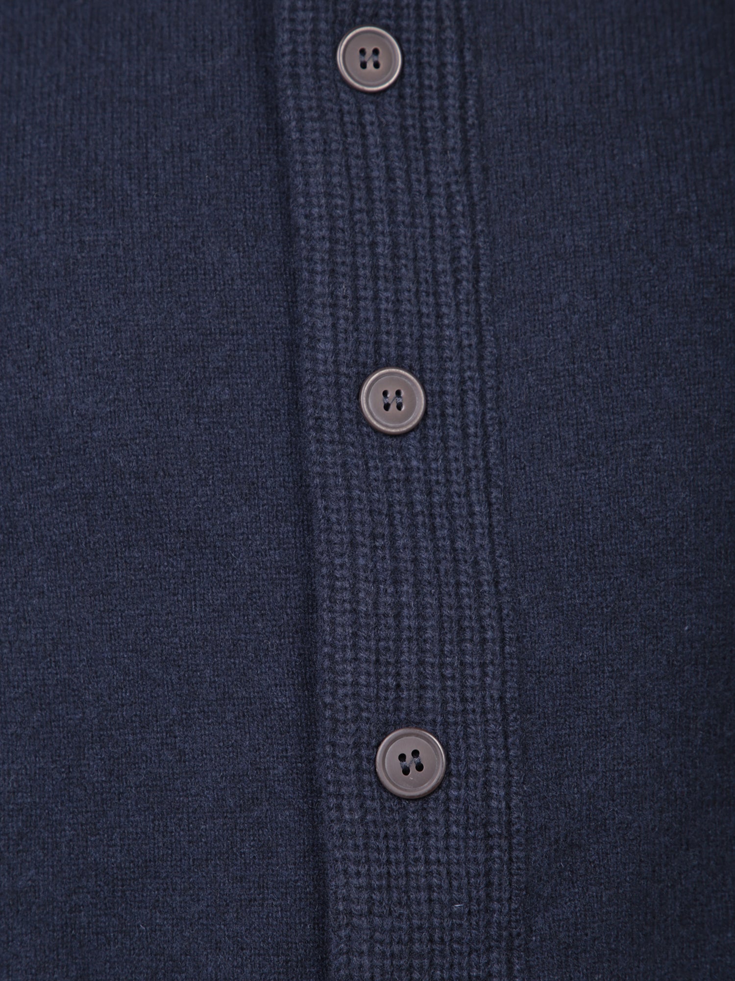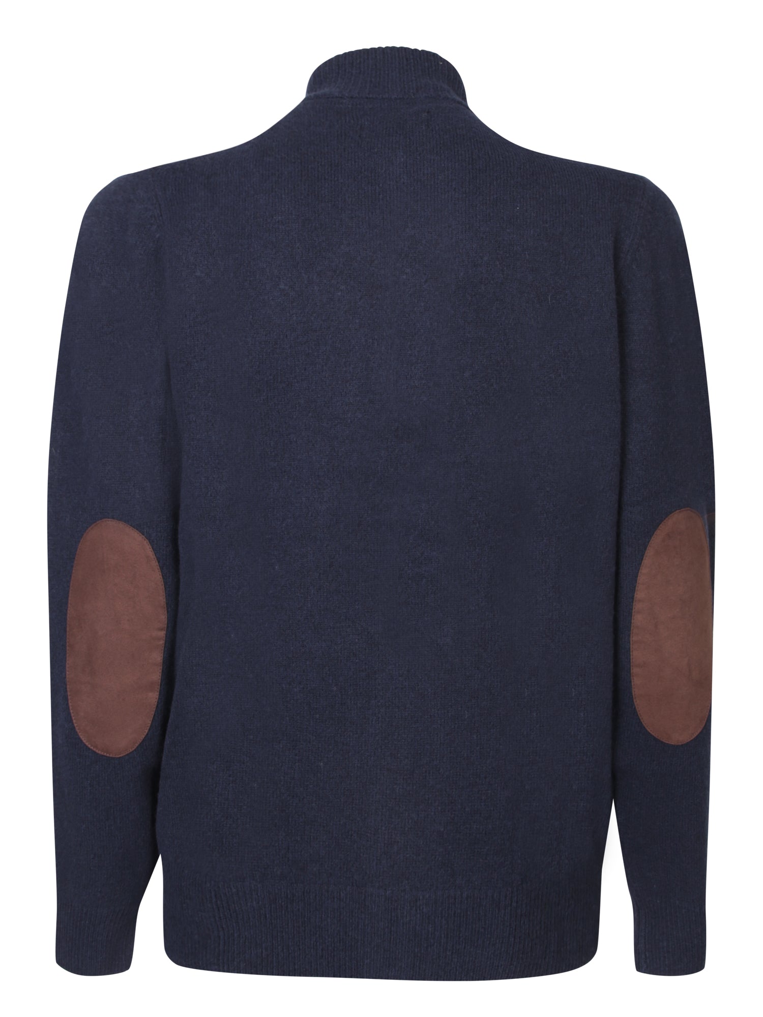 An iconic Barbour sweater in solid blue, featuring a full zip closure and a high collar for enhanced comfort. Perfect for a sophisticated casual style.