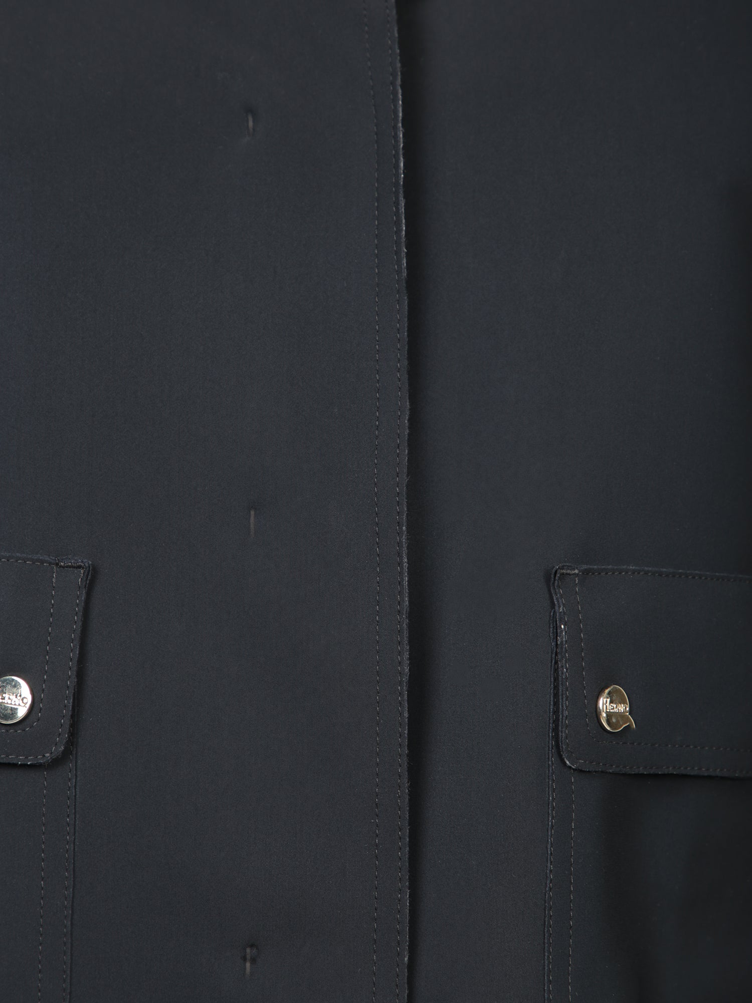 Long-sleeve jacket in technical fabric. Pointed collar with button front closure. Two front flap pockets.