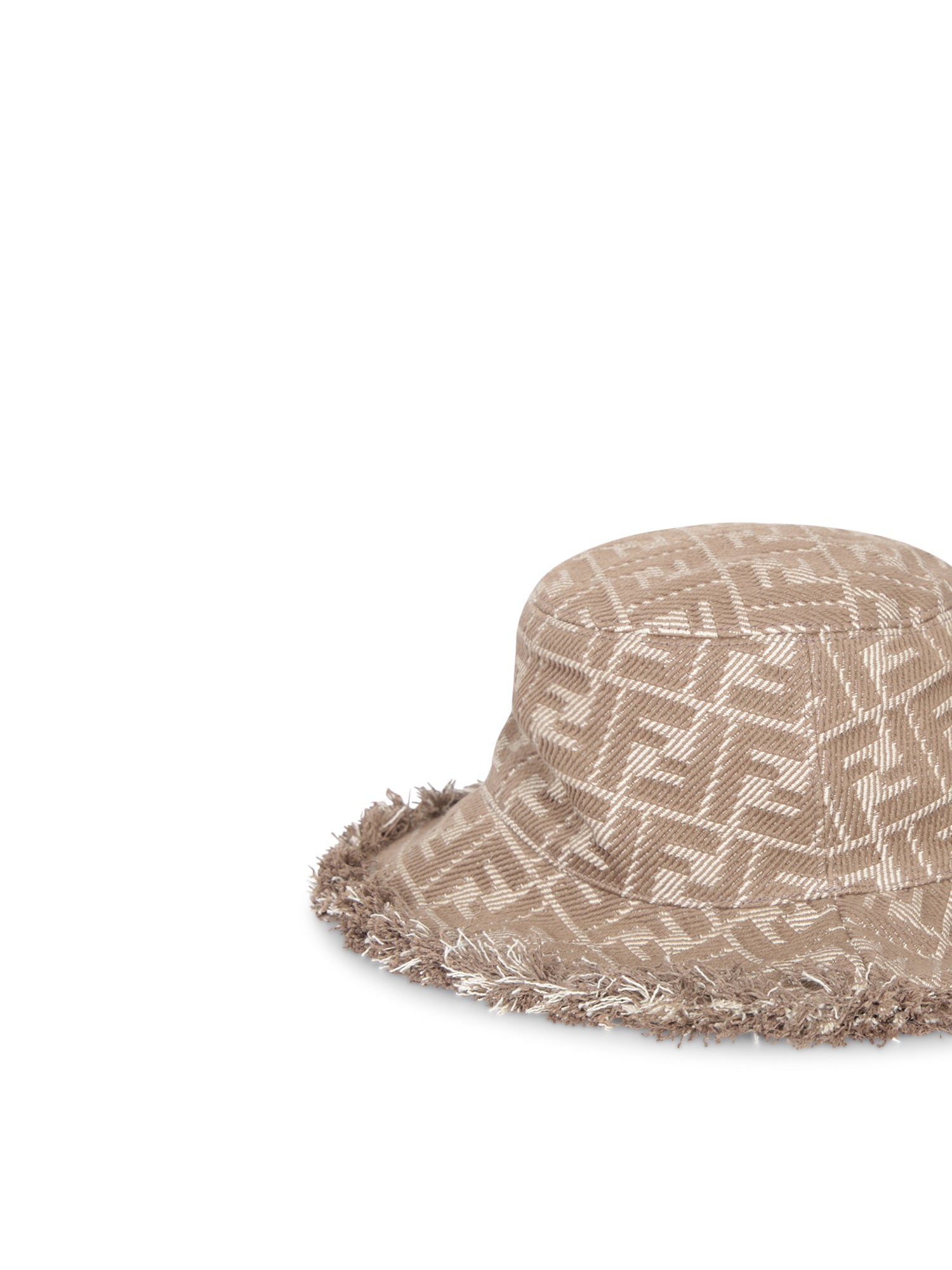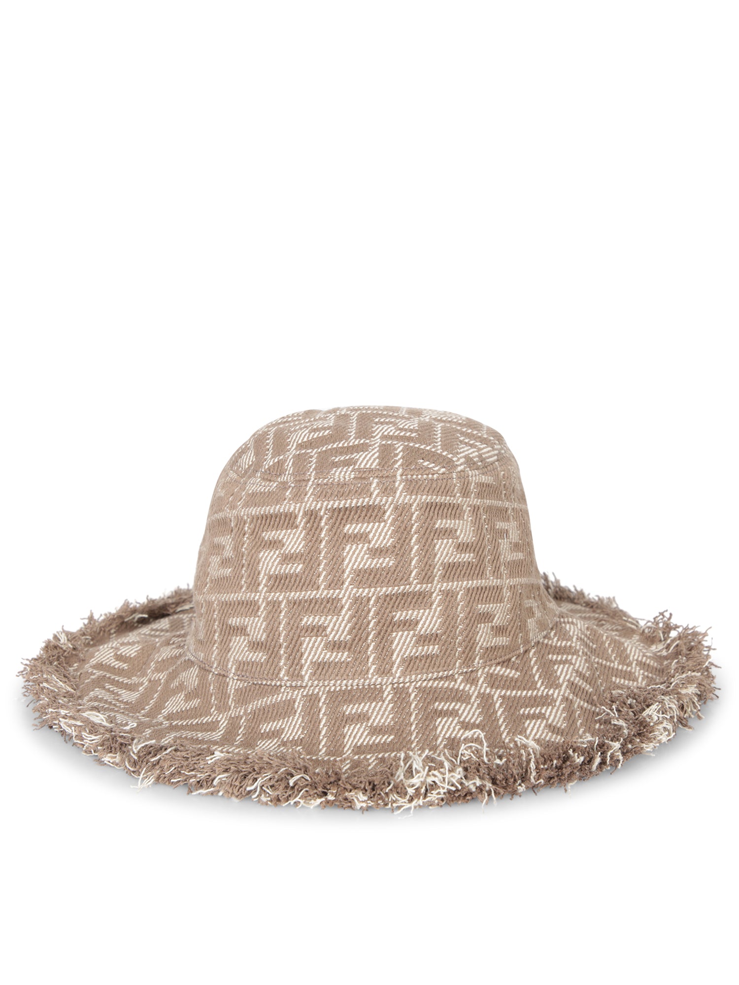 Bucket hat crafted from jacquard fabric featuring an all-over FENDI logo, frayed edges.