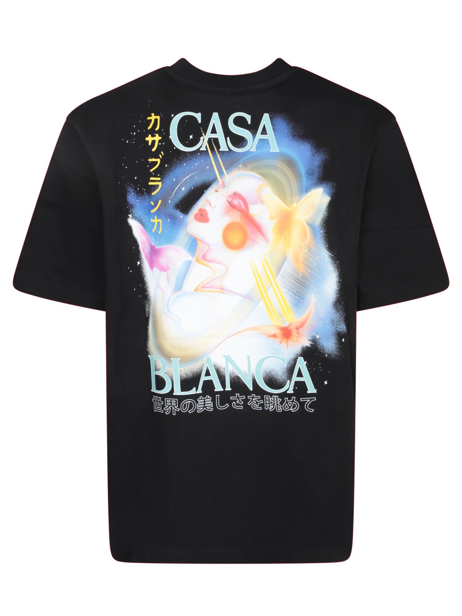 Explore the universe of fashion with the Casablanca Galactic T-shirt, featuring a bold graphic design that melds cosmic style and urban elegance.