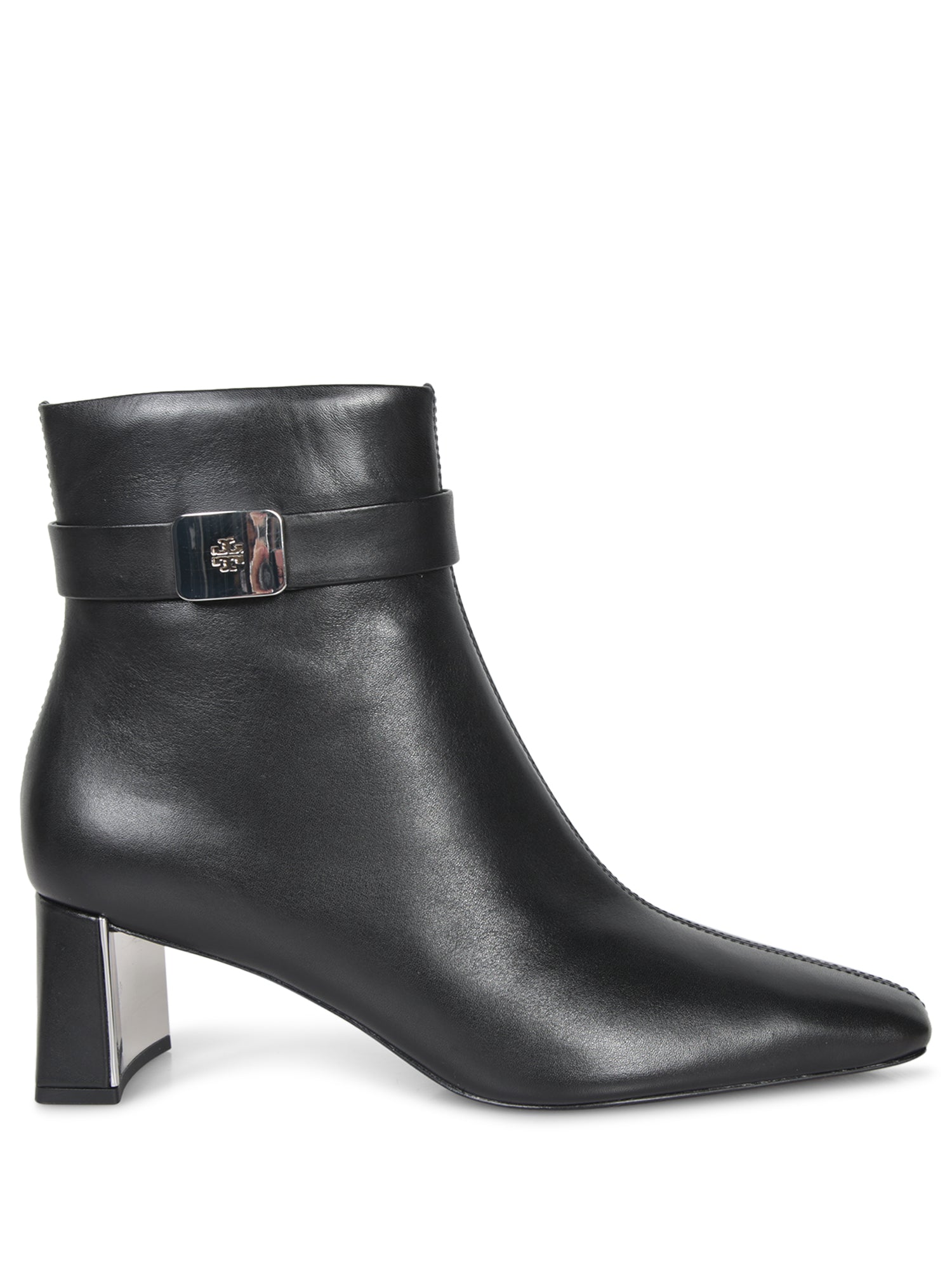 Smooth leather ankle boots. 55mm heel height. Buckle detail with logo.