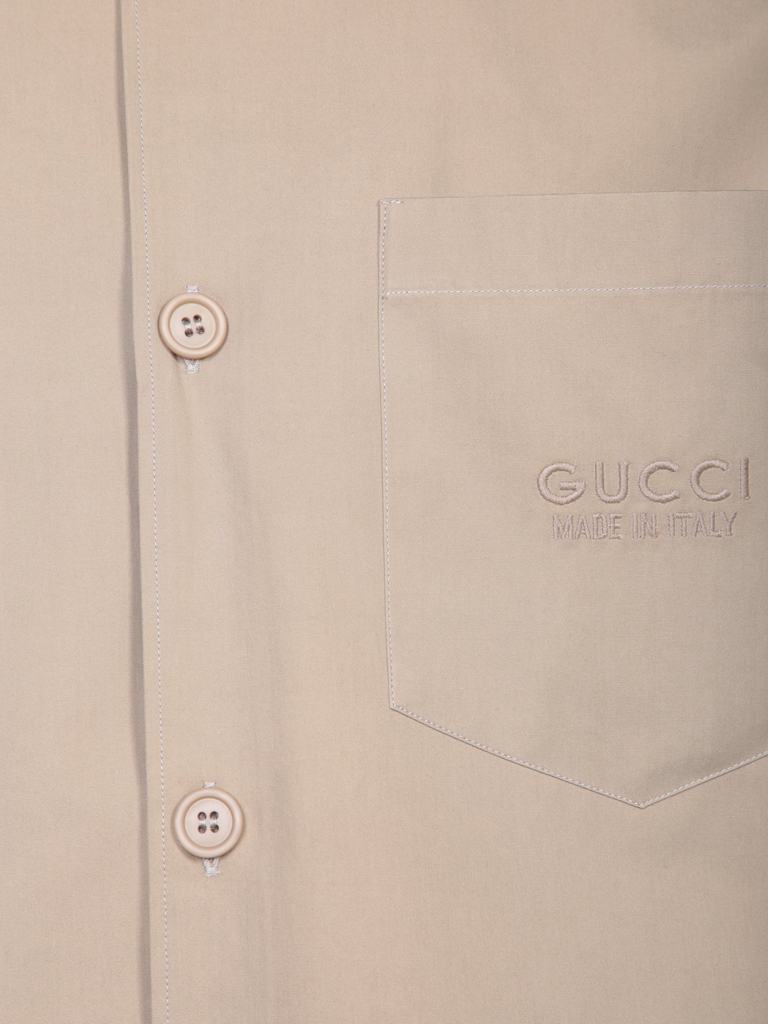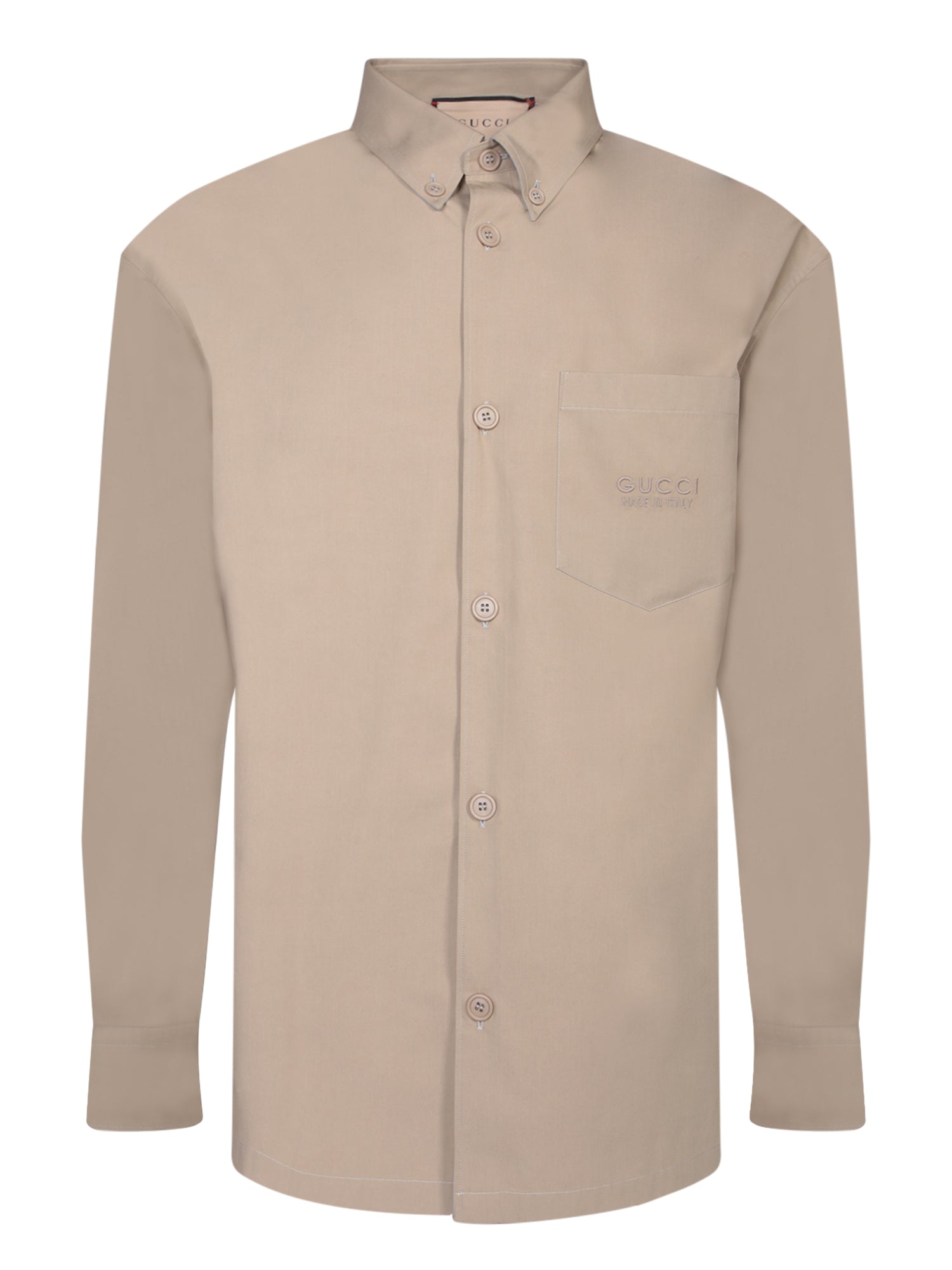 Long sleeves. Shirt collar. Front button fastening. Embroidered G tonal to the front.