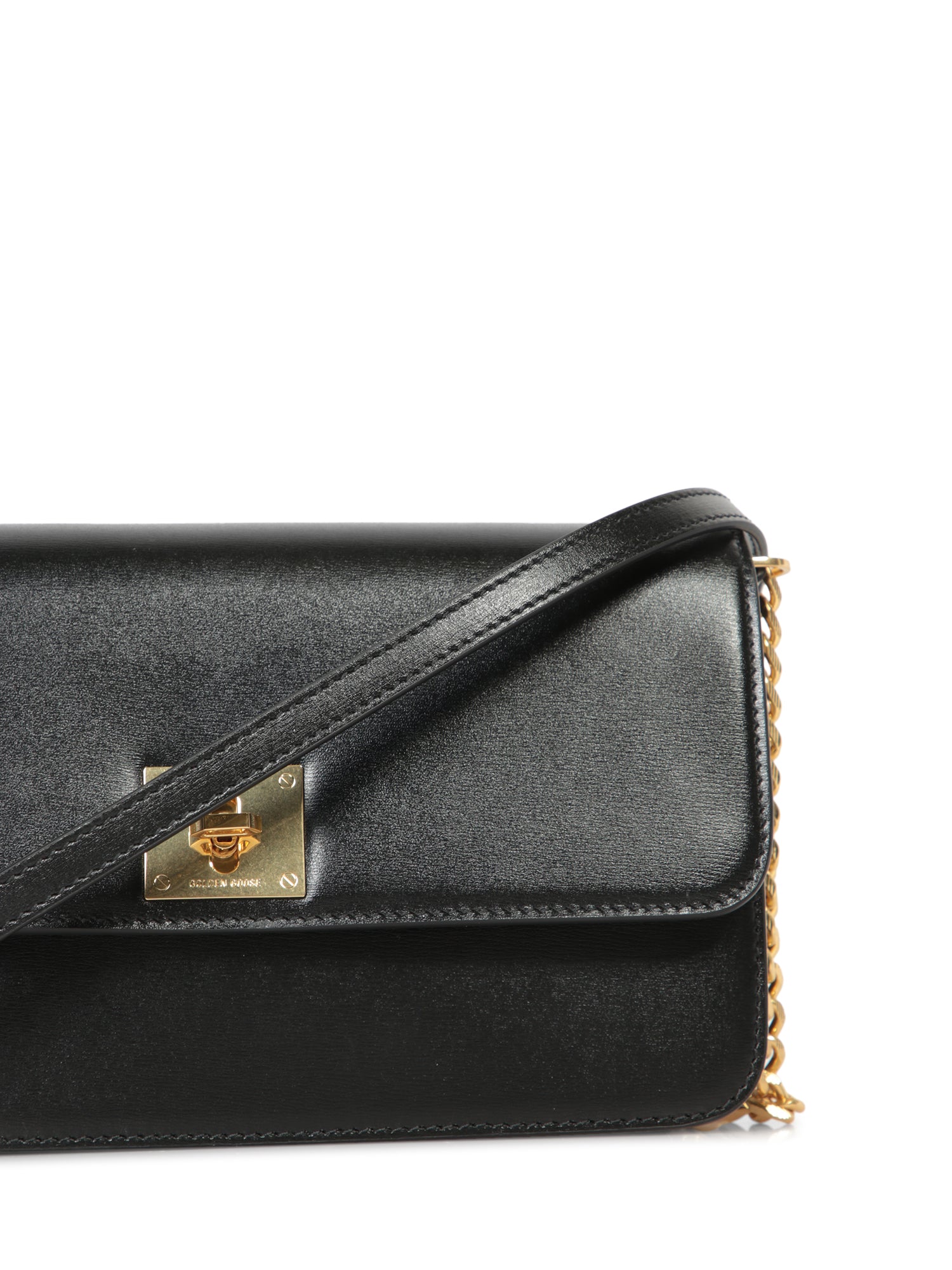 Timeless elegance with the Gioia Bag by Golden Goose, featuring refined black leather and luxurious gold details. Compact design ideal for daily or evening use.
