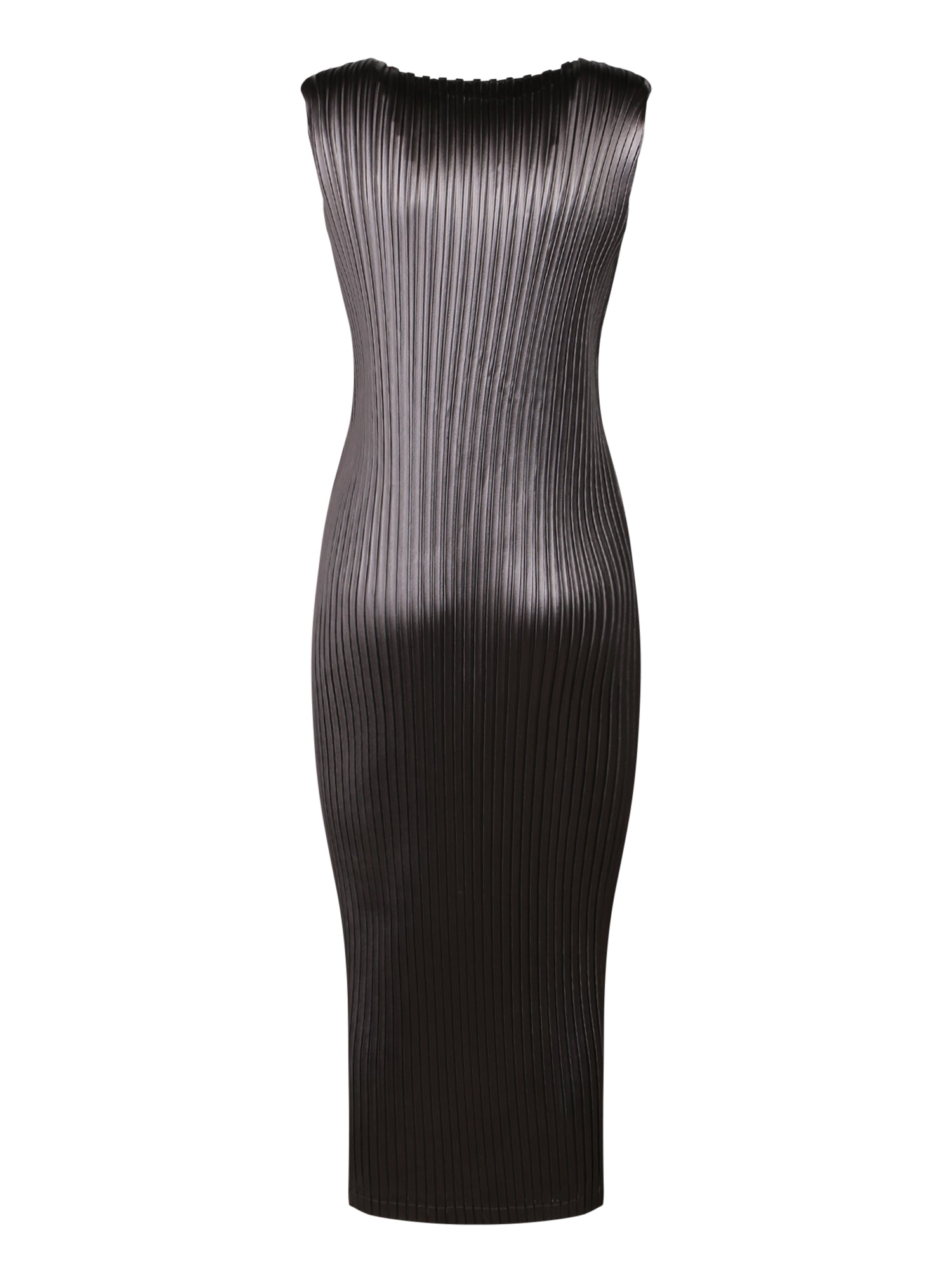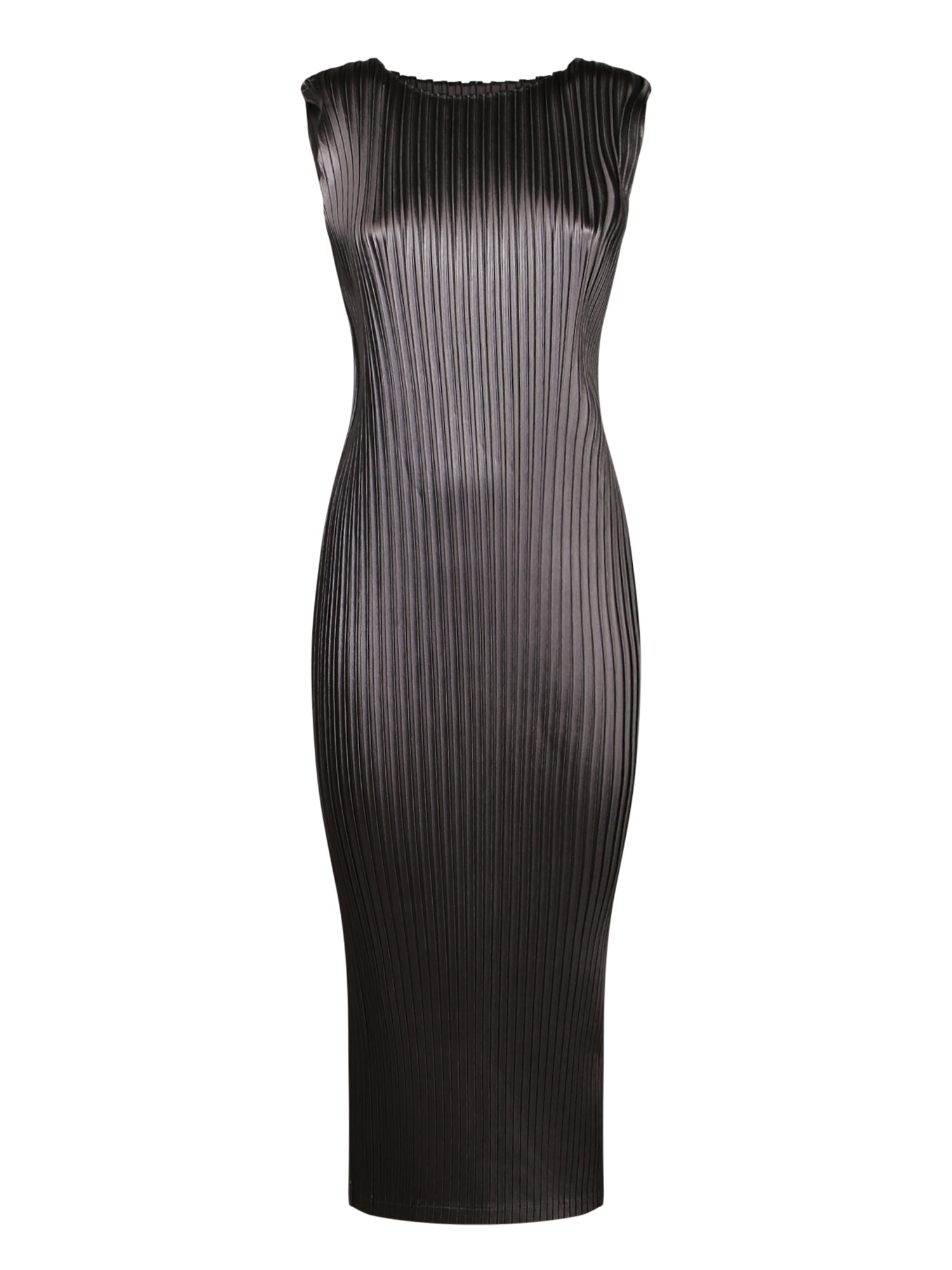 Sleeveless. Pleated structure. Glossy fabric.