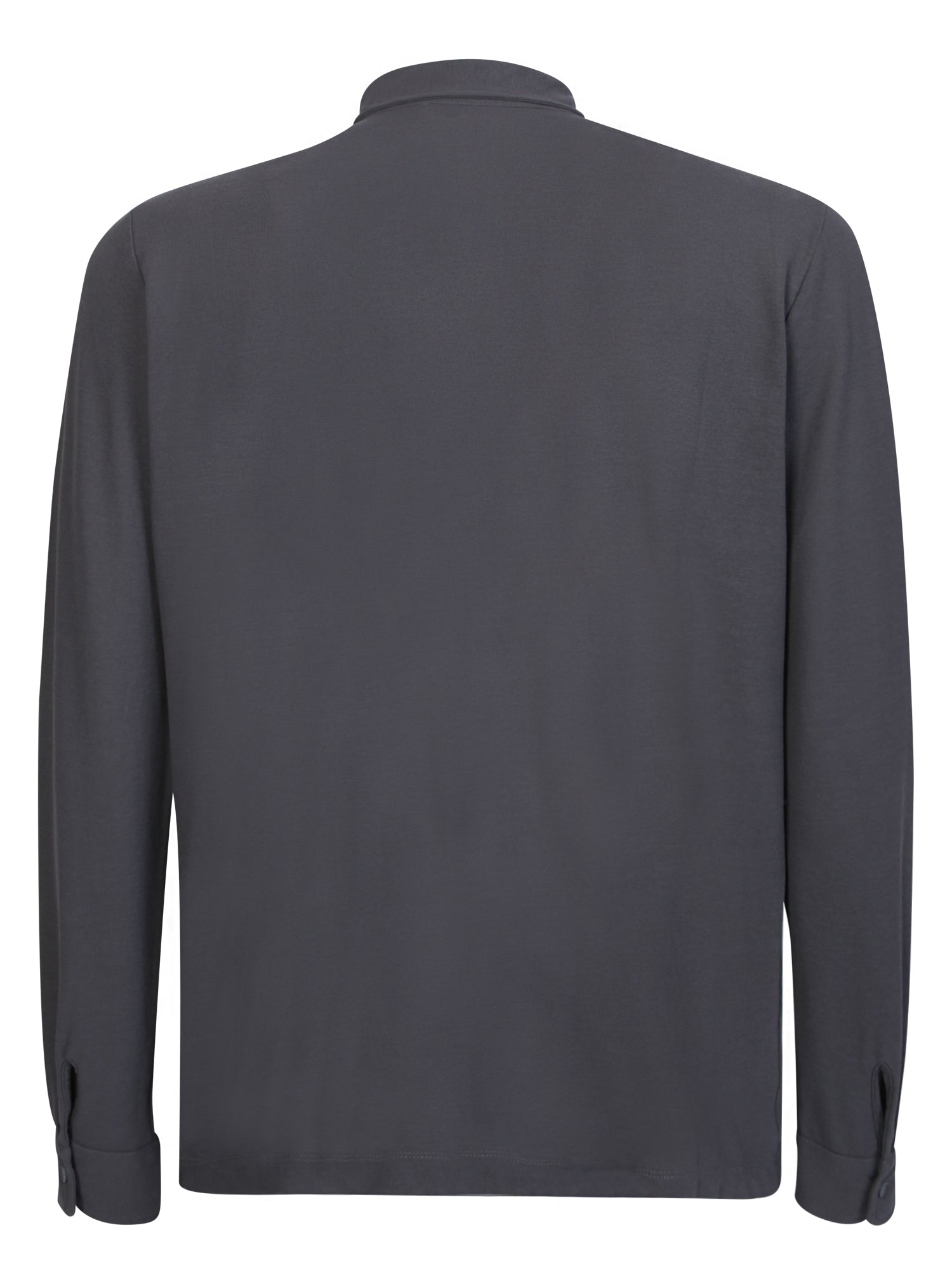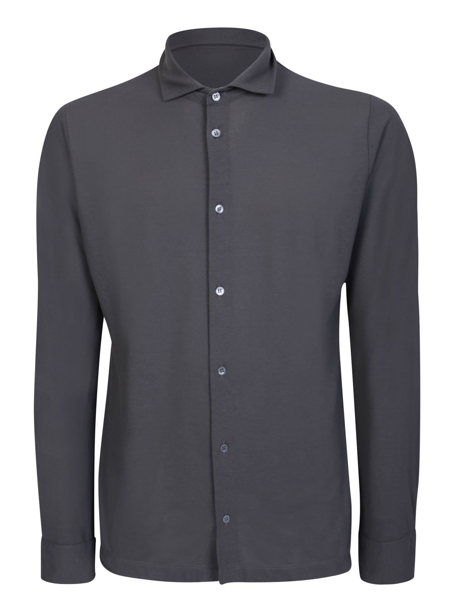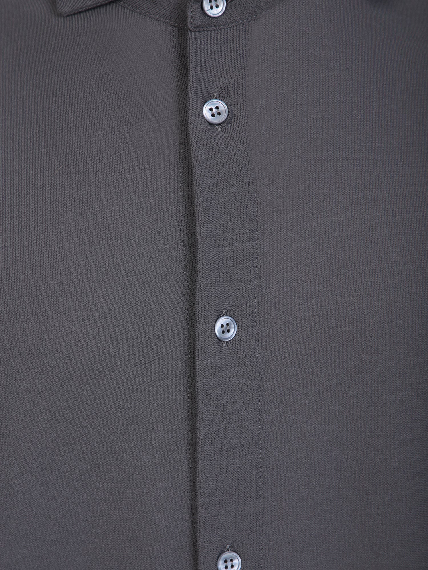 Classic collar. Front button fastening. Long sleeves. Tone on tone stitching. Straight hem. Color: grey
