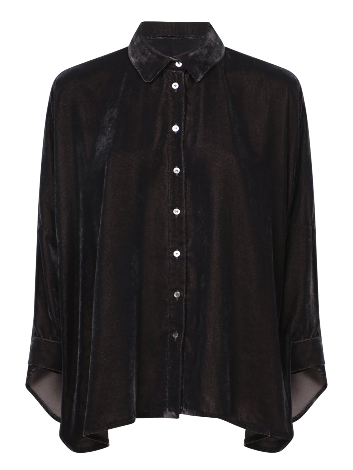 This Blanca Vita velvet overshirt embodies modern elegance with its luxurious fabric and relaxed silhouette. Perfect for adding a touch of sophistication to any outfit.