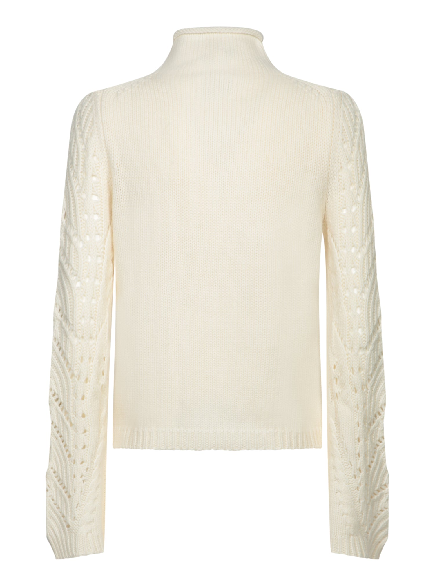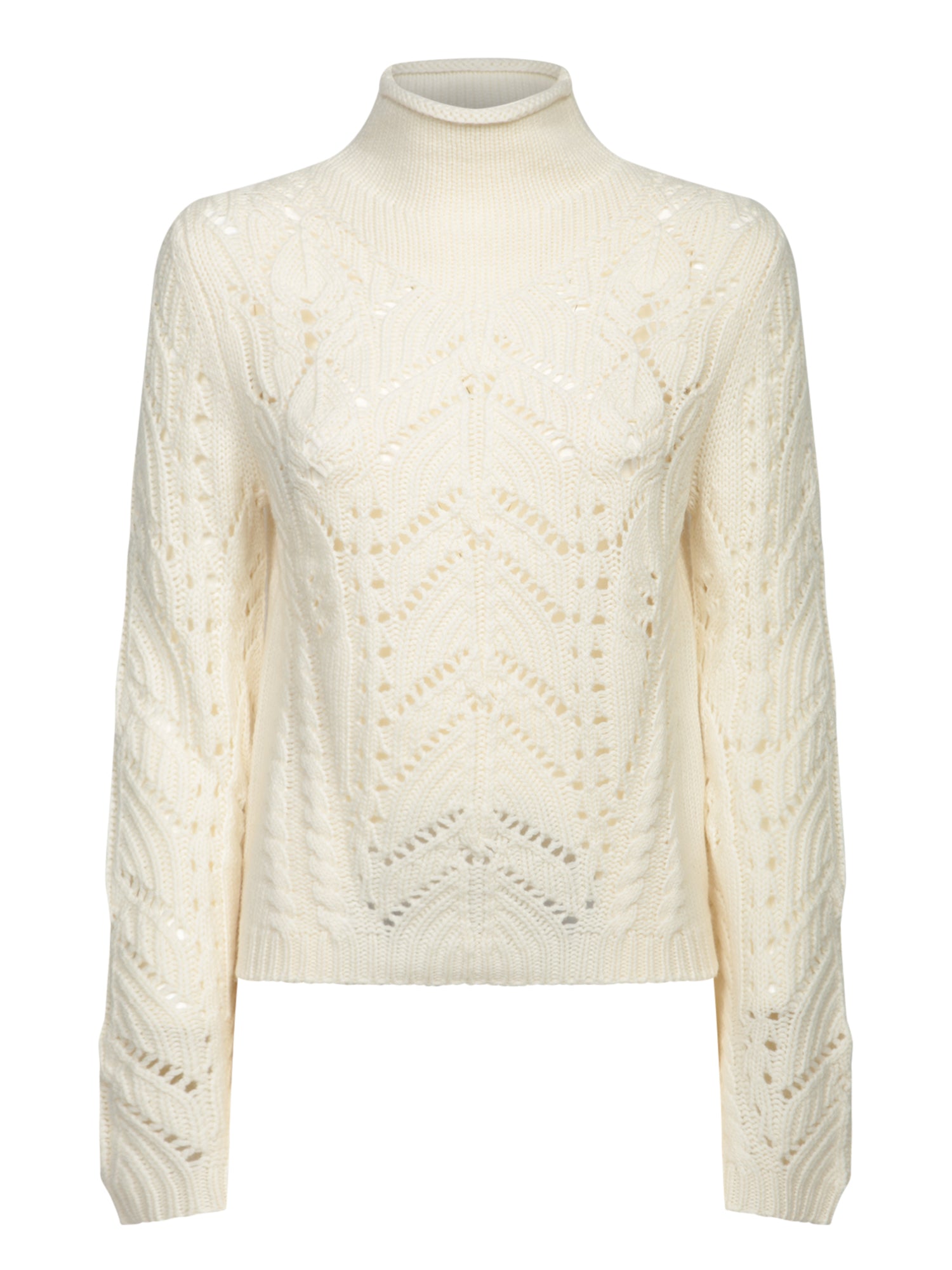 Turtleneck sweater. Openwork knit design. Ribbed trims.