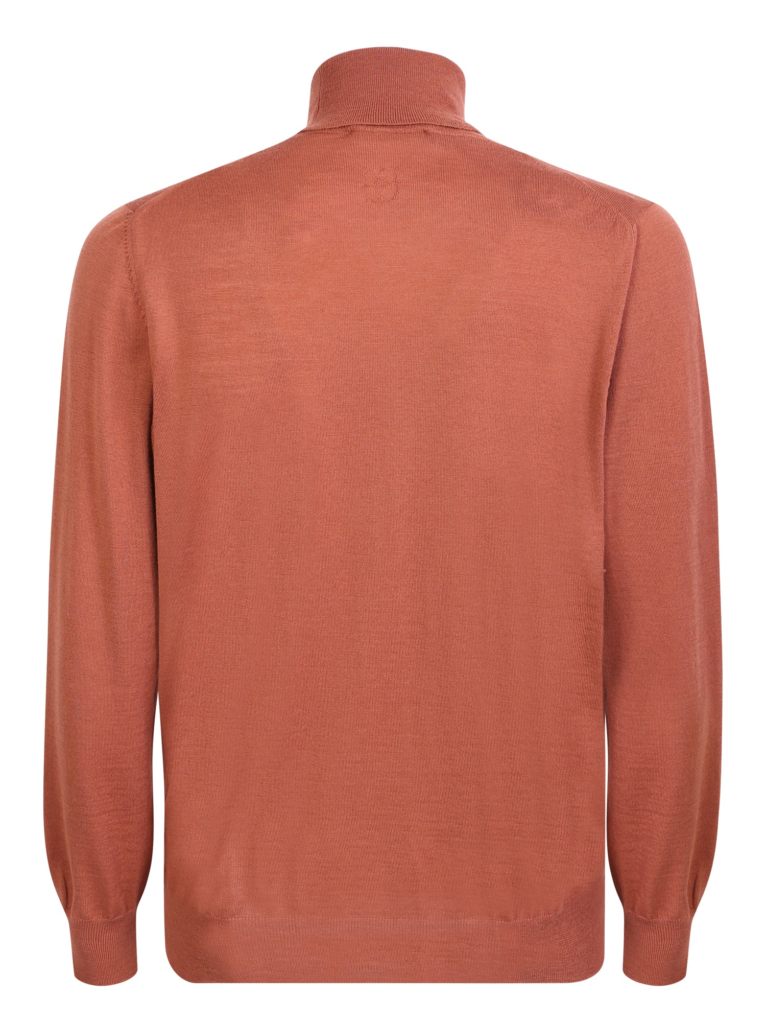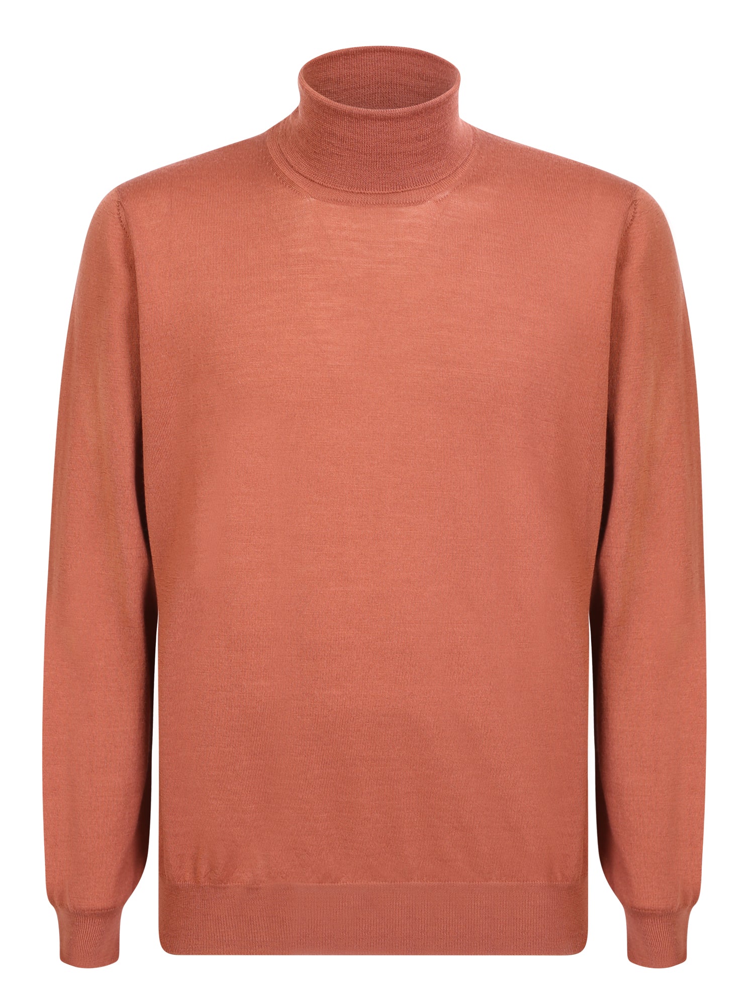 High neck. Long sleeves. Fine knit. Straight hem. Color: salmon