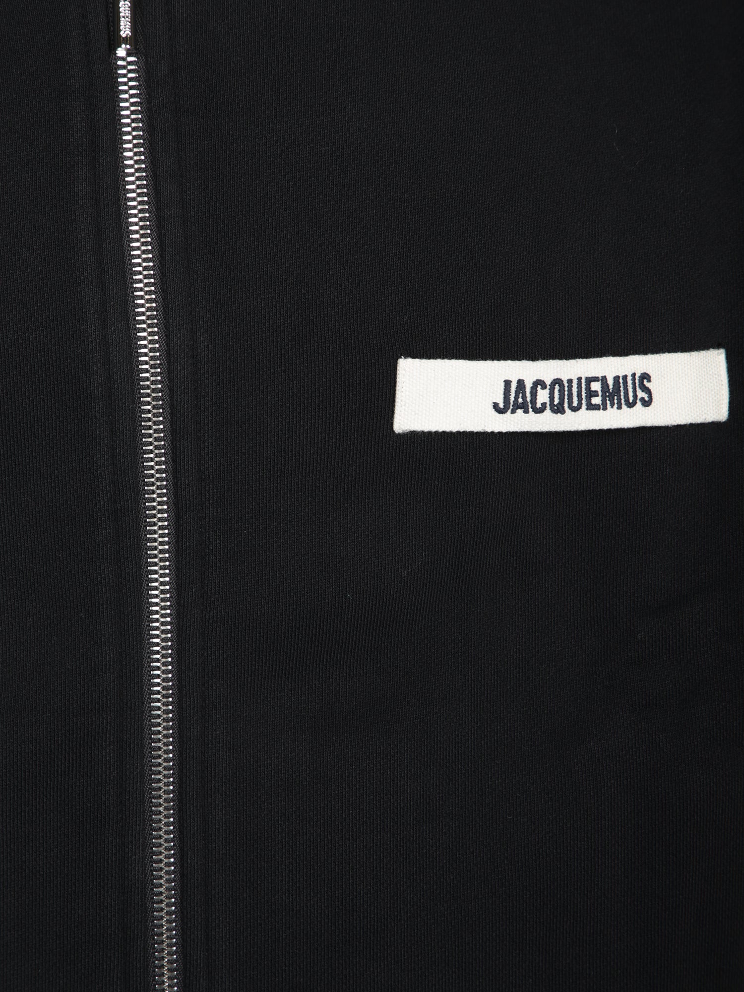 Spacious hood with drawstring, front zip closure, long sleeves, ribbed cuffs and hem. Contrasting Jacquemus logo on the chest.