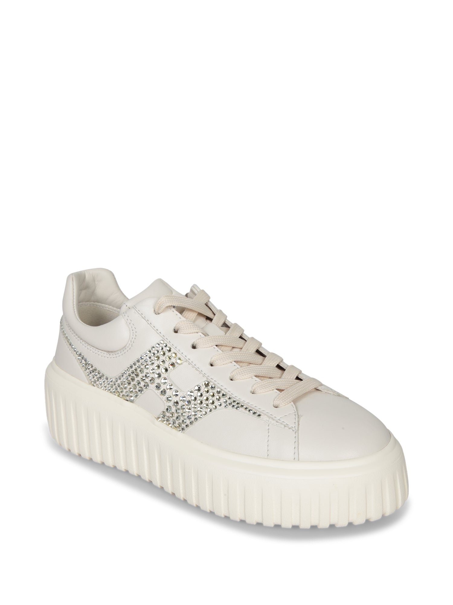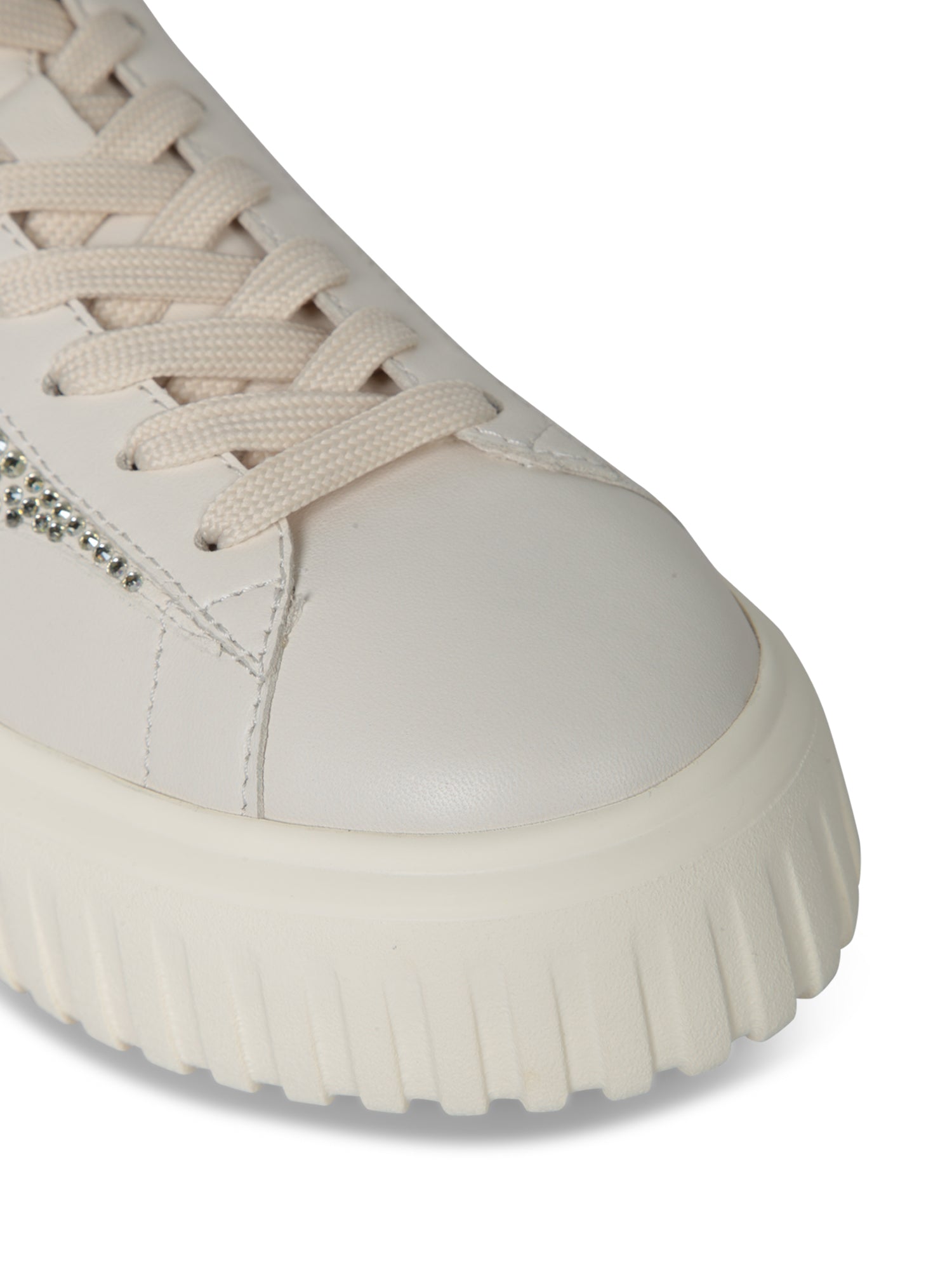 Leather sneakers with rhinestone details. Rubber sole, tonal laces.