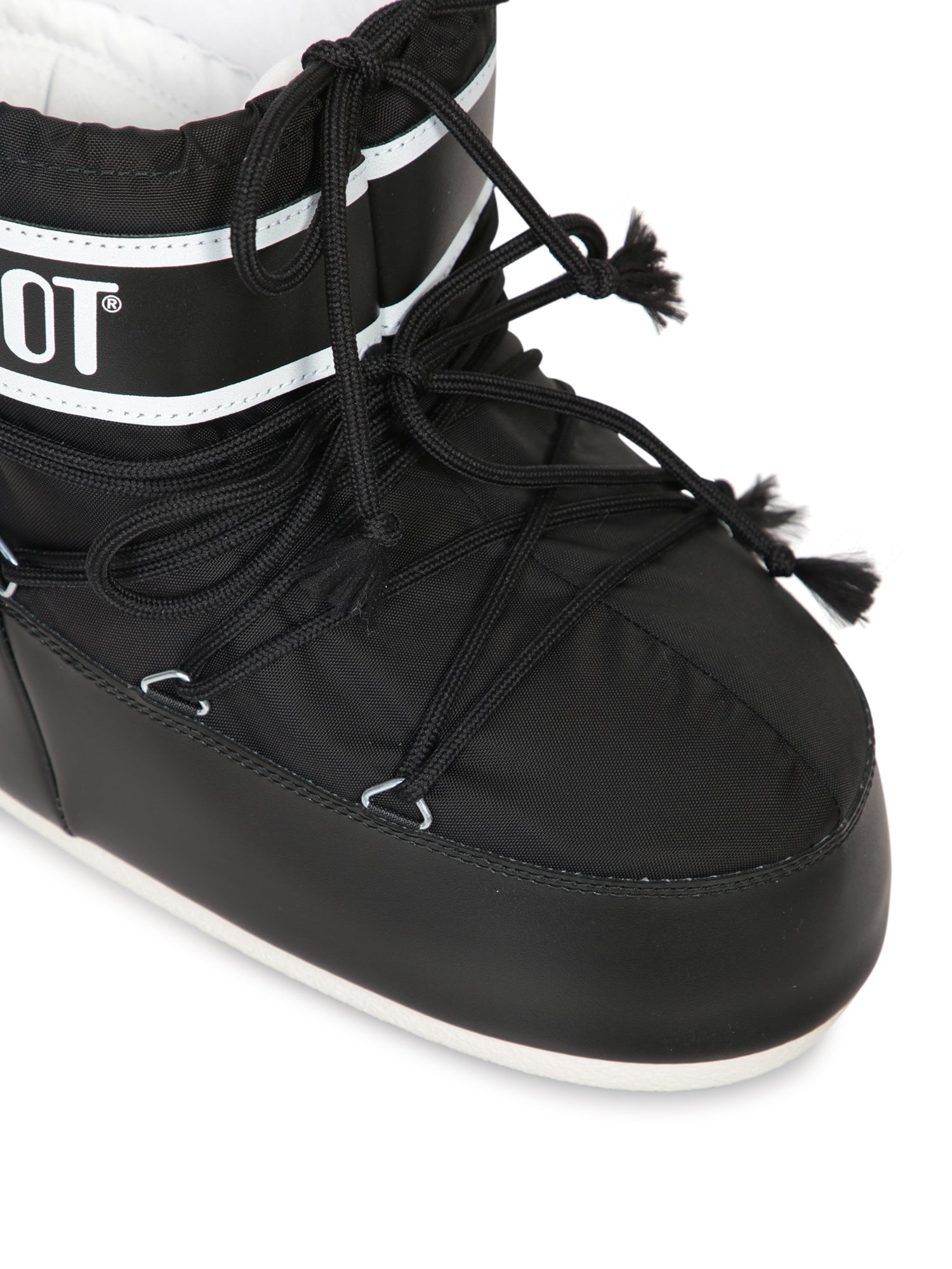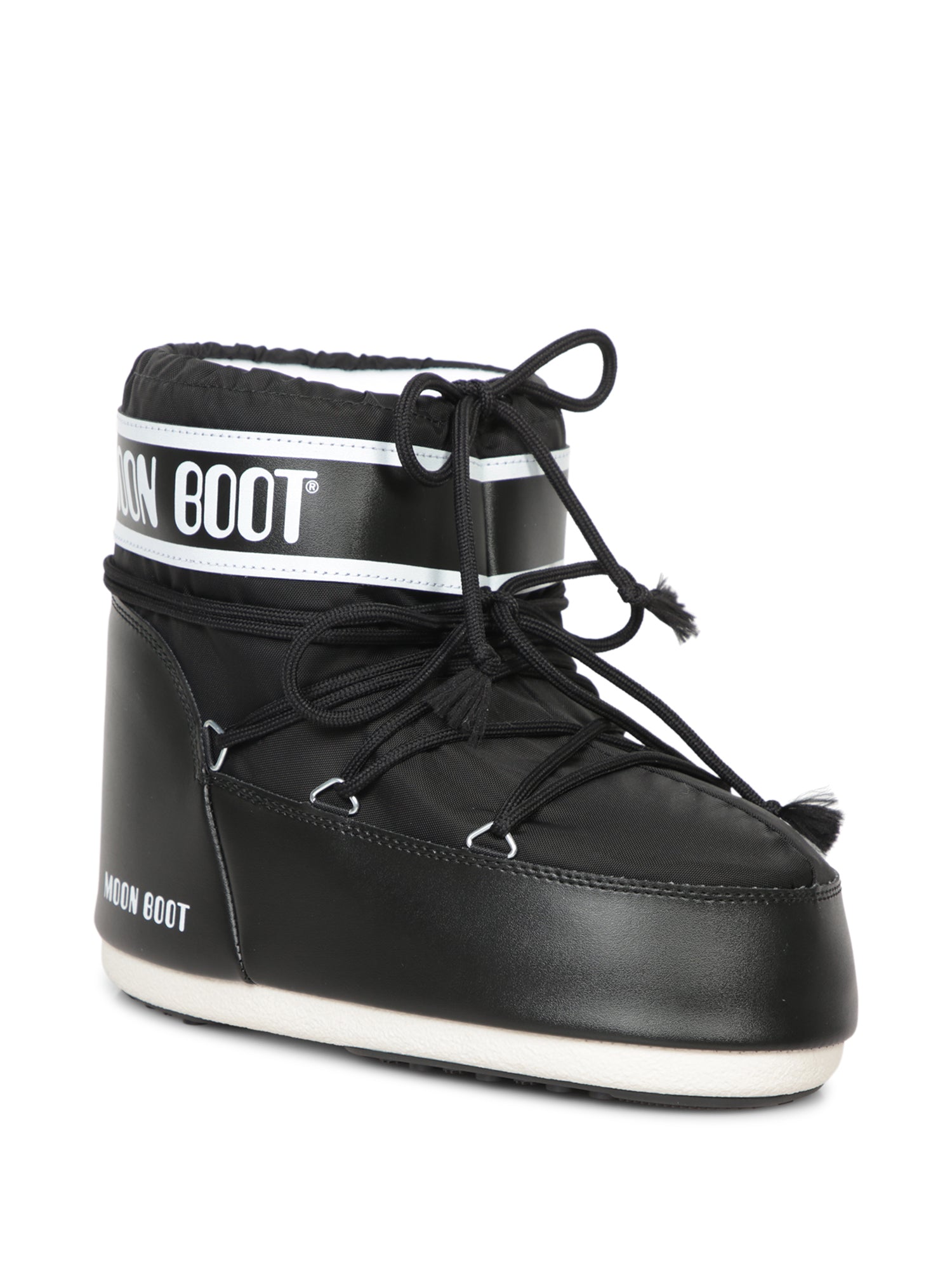 A style icon for the winter season, these Moon Boot ankle boots blend functionality with fashion. The sleek and minimalist design is enhanced with faux leather details and sturdy laces.