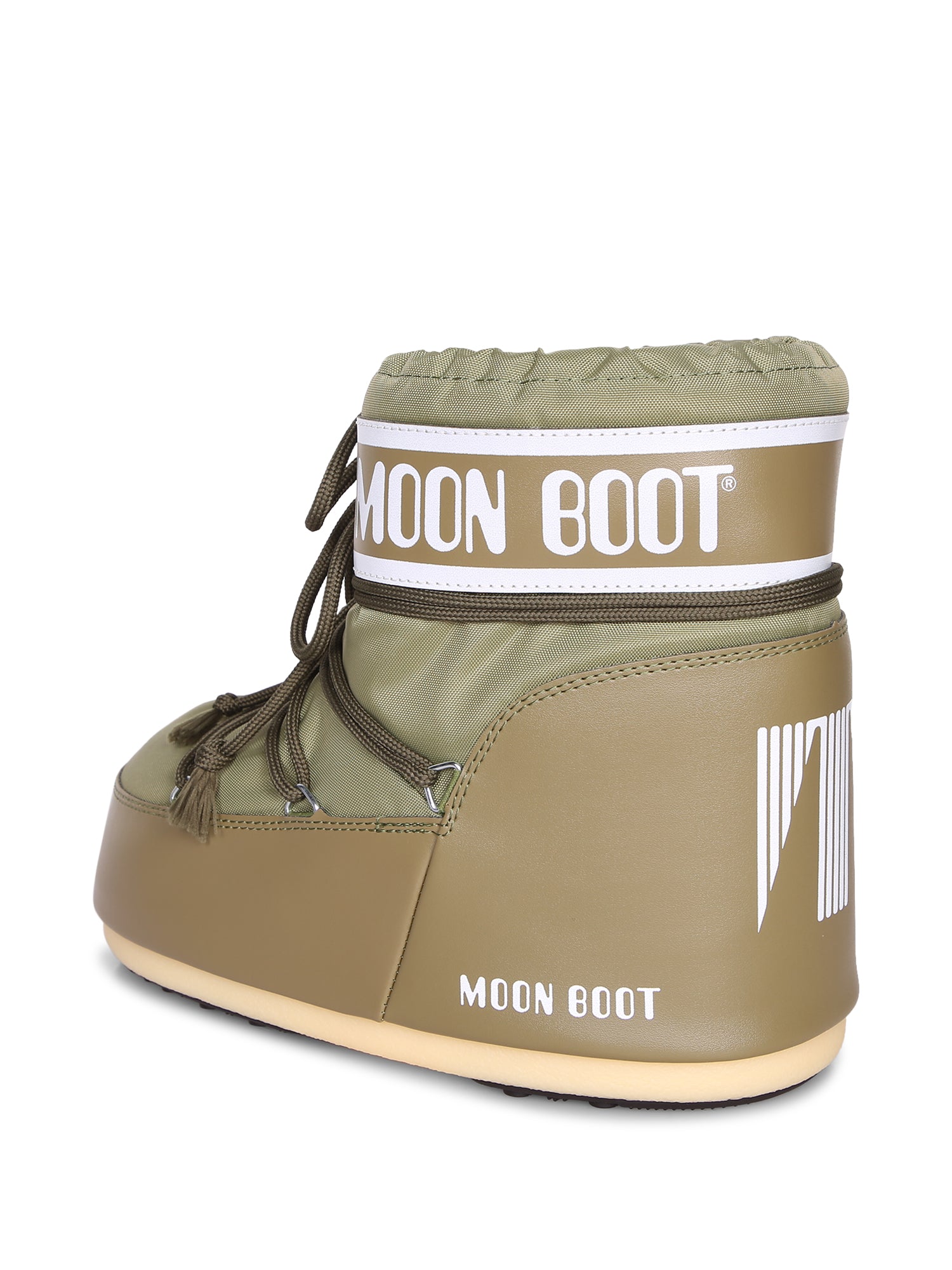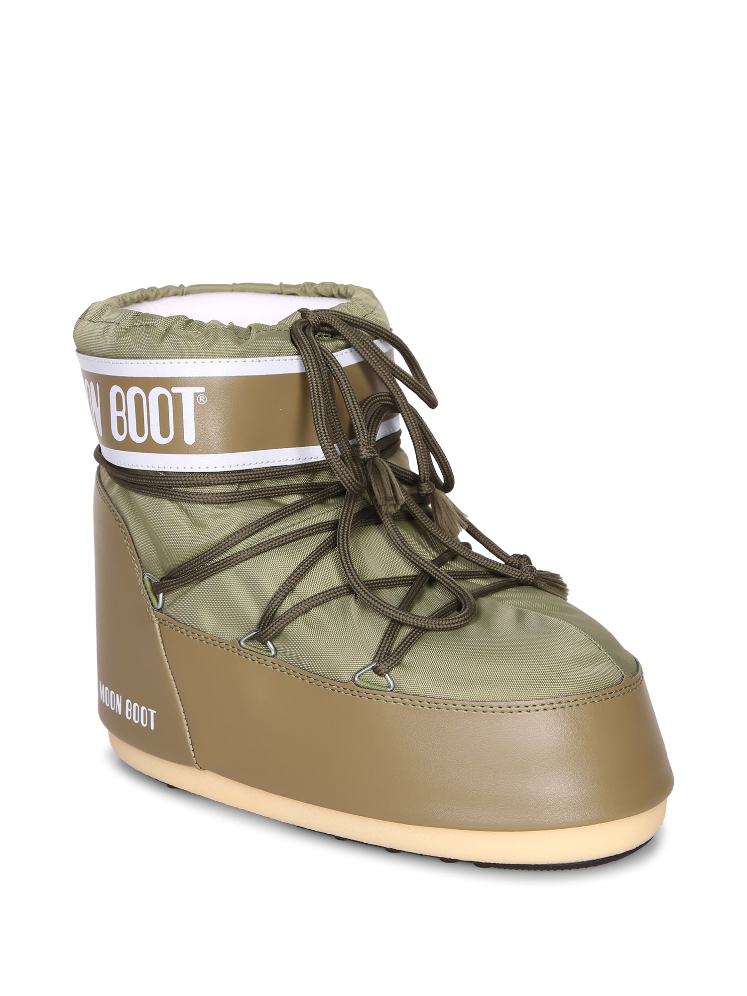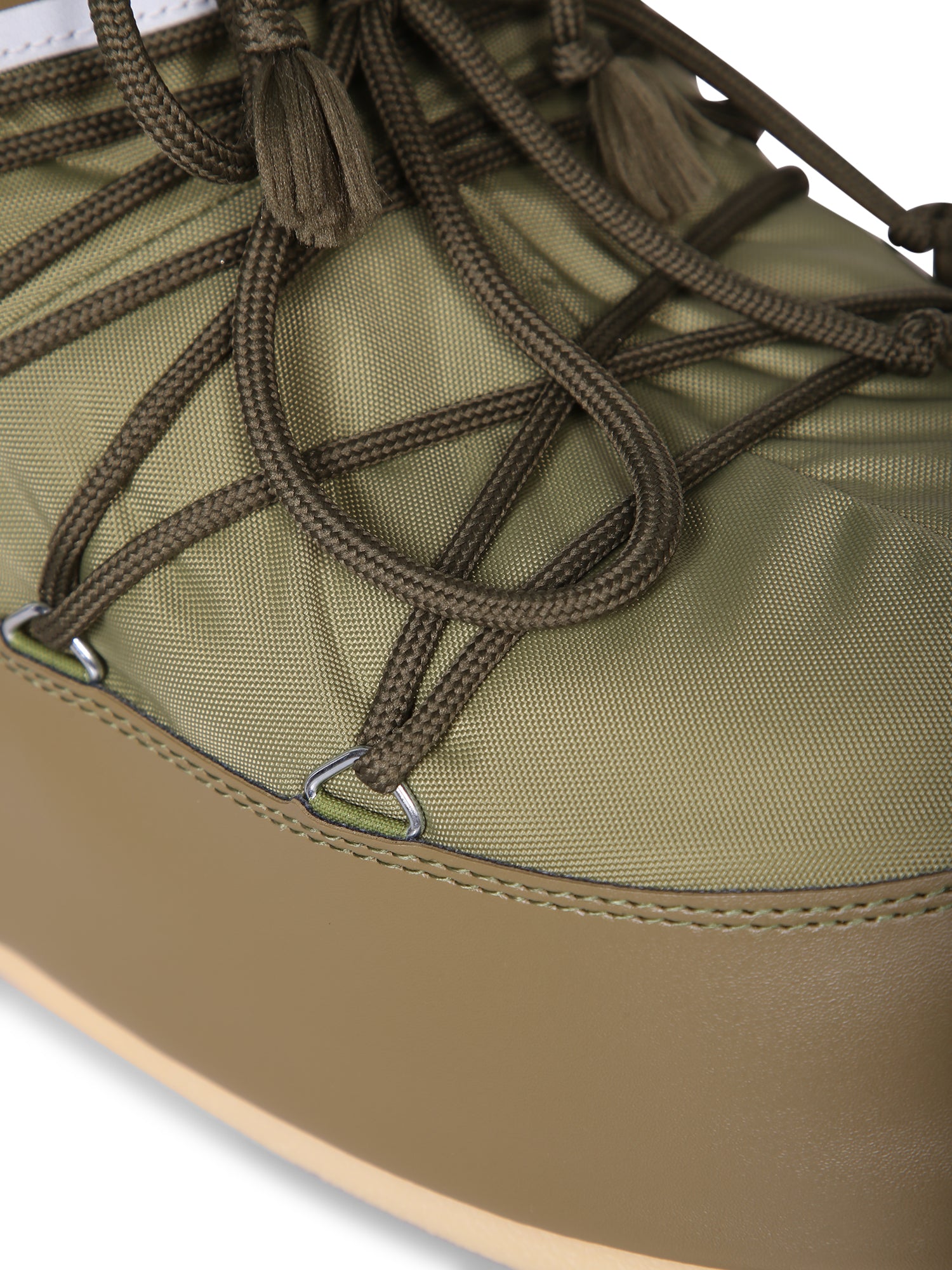 Rugged ankle boots featuring technical fabric and khaki synthetic leather. Lace-up closure with metal eyelets. Non-slip sole.