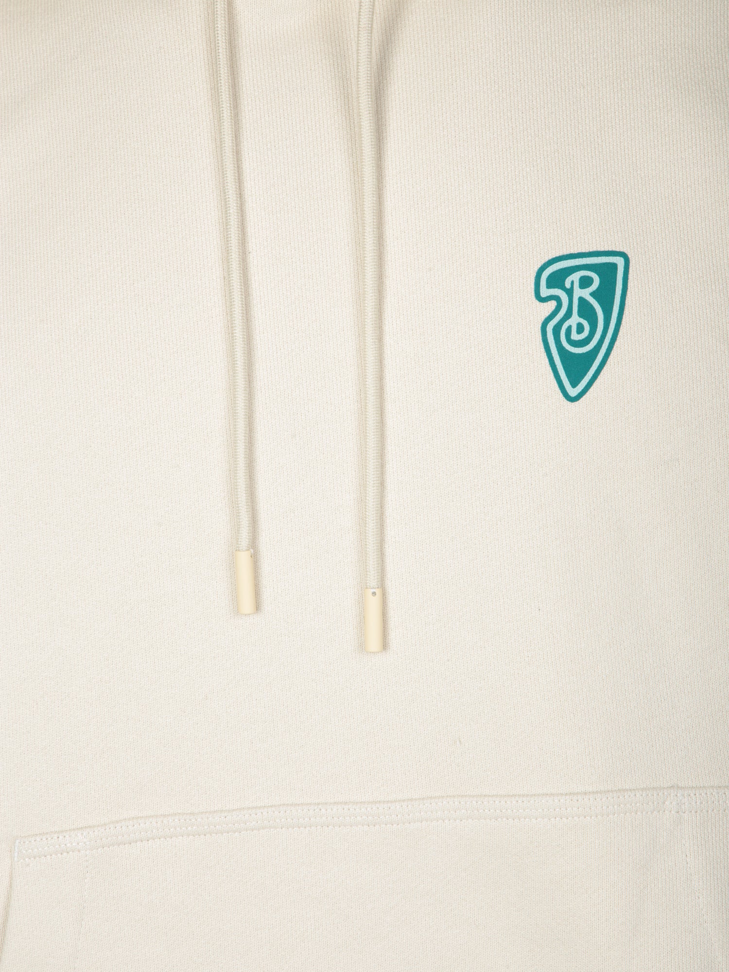 Long sleeves, drawstring hood, embroidered logo on the chest, kangaroo pocket.