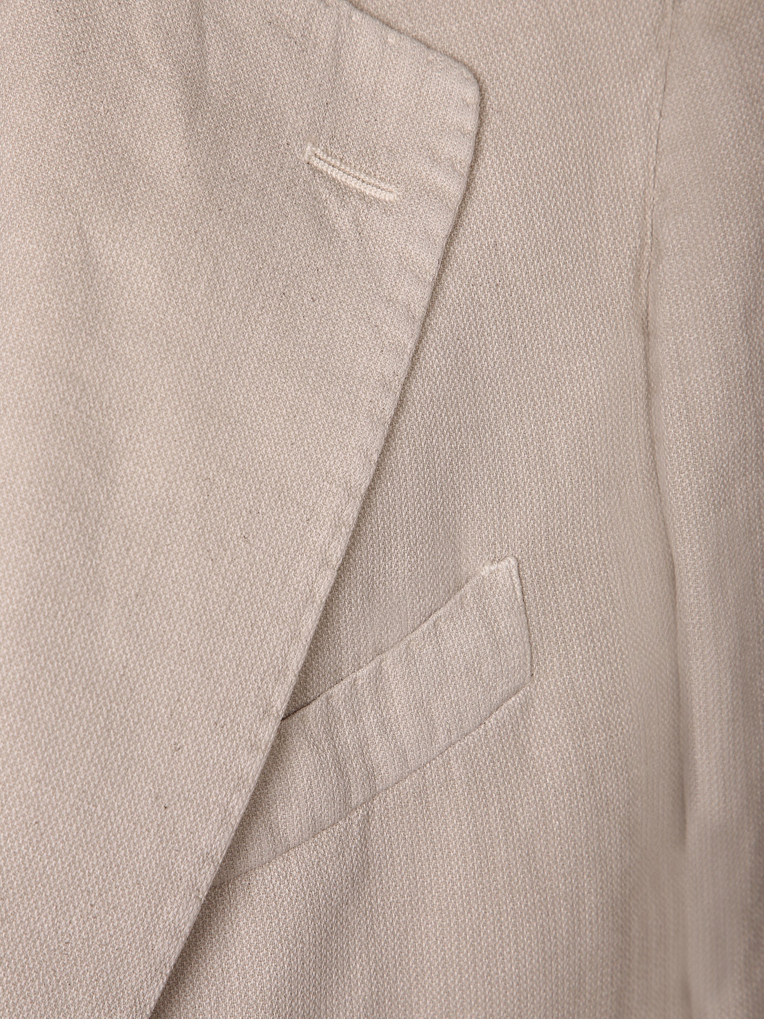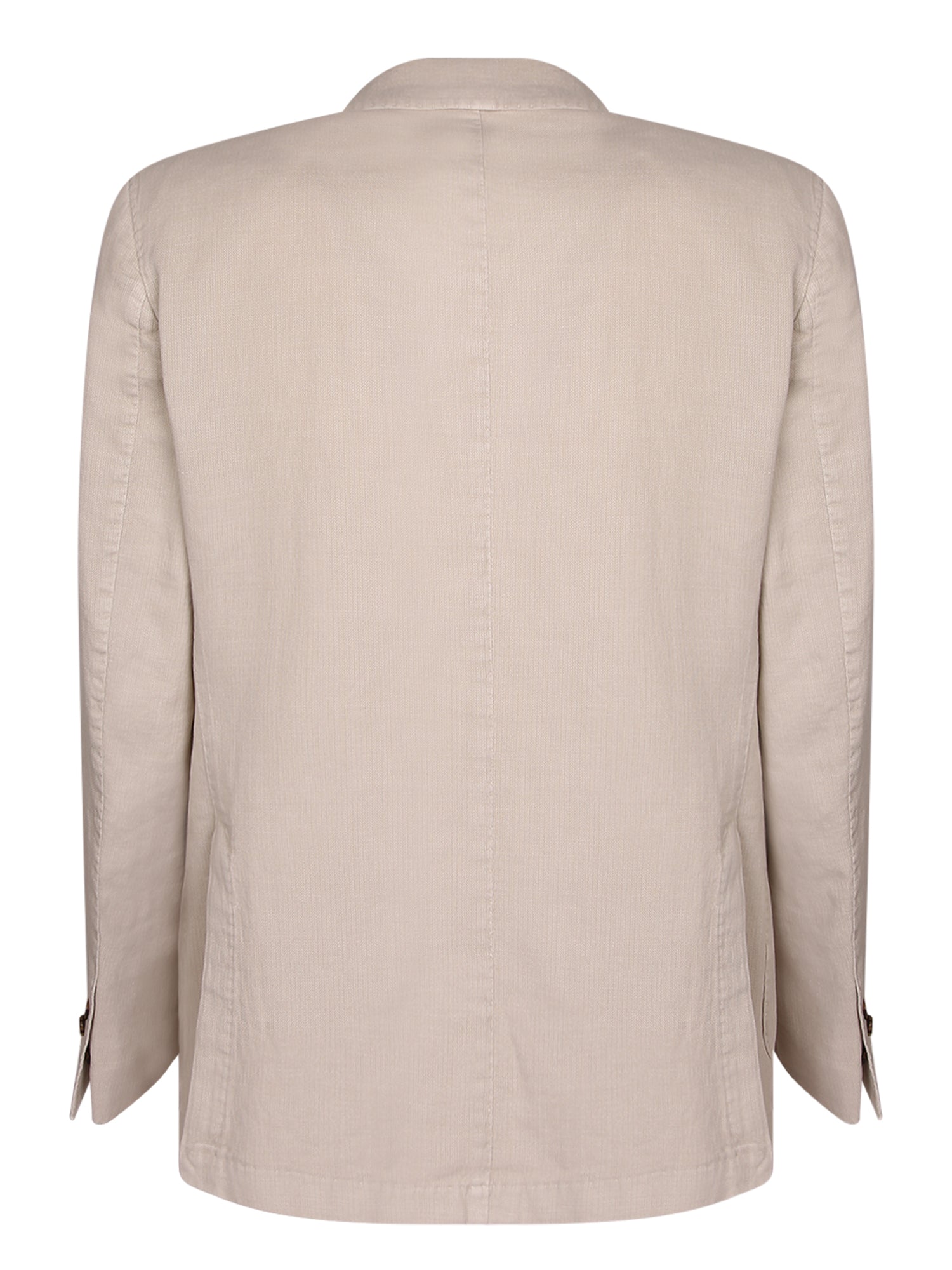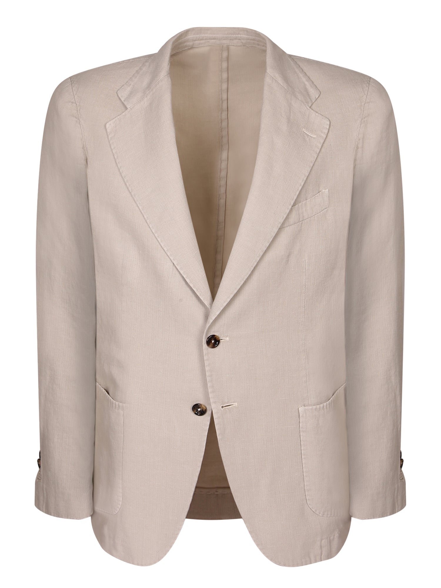 Ramie fabric. Single-breasted design. Applied pockets. Horn buttons.