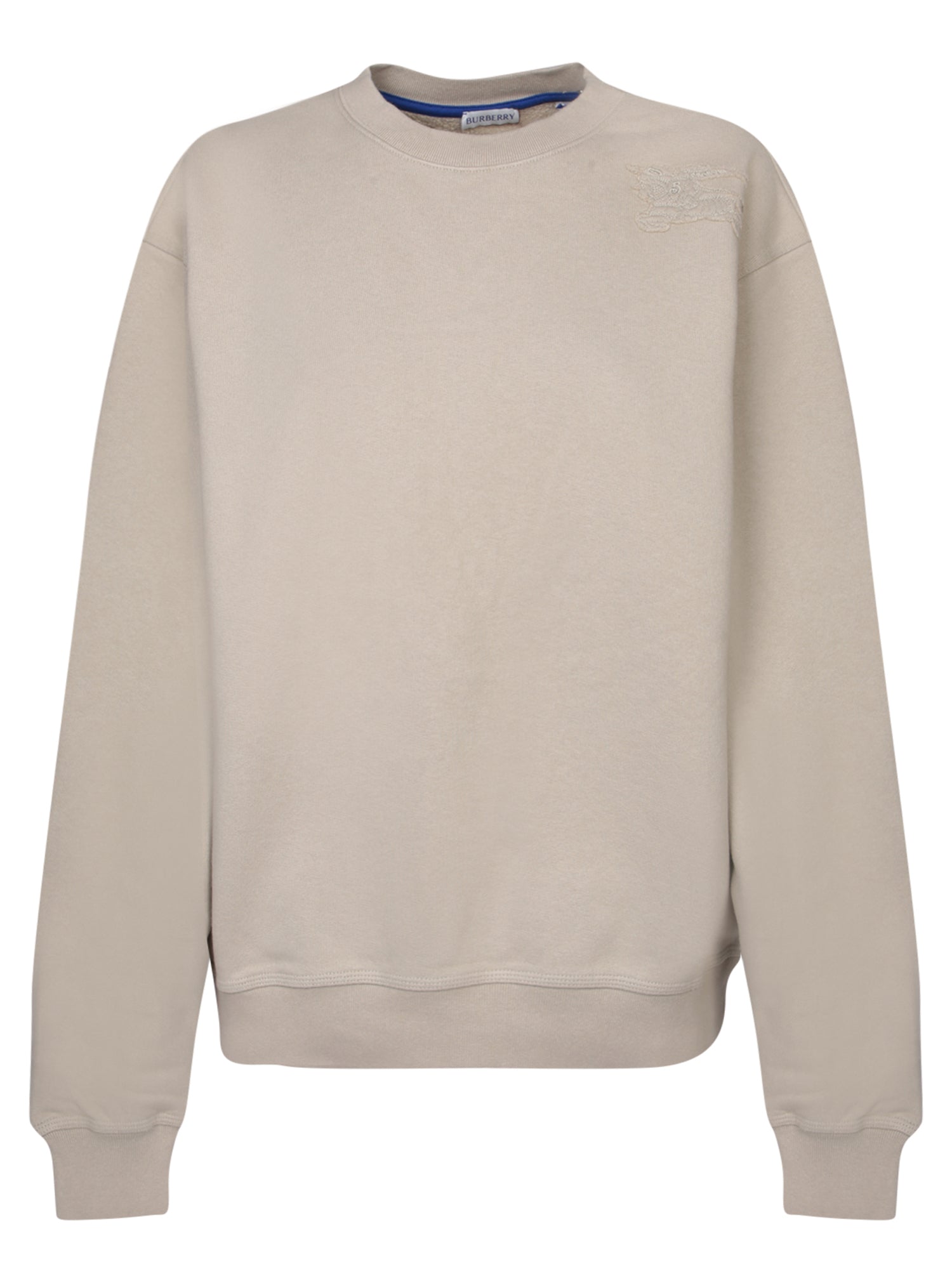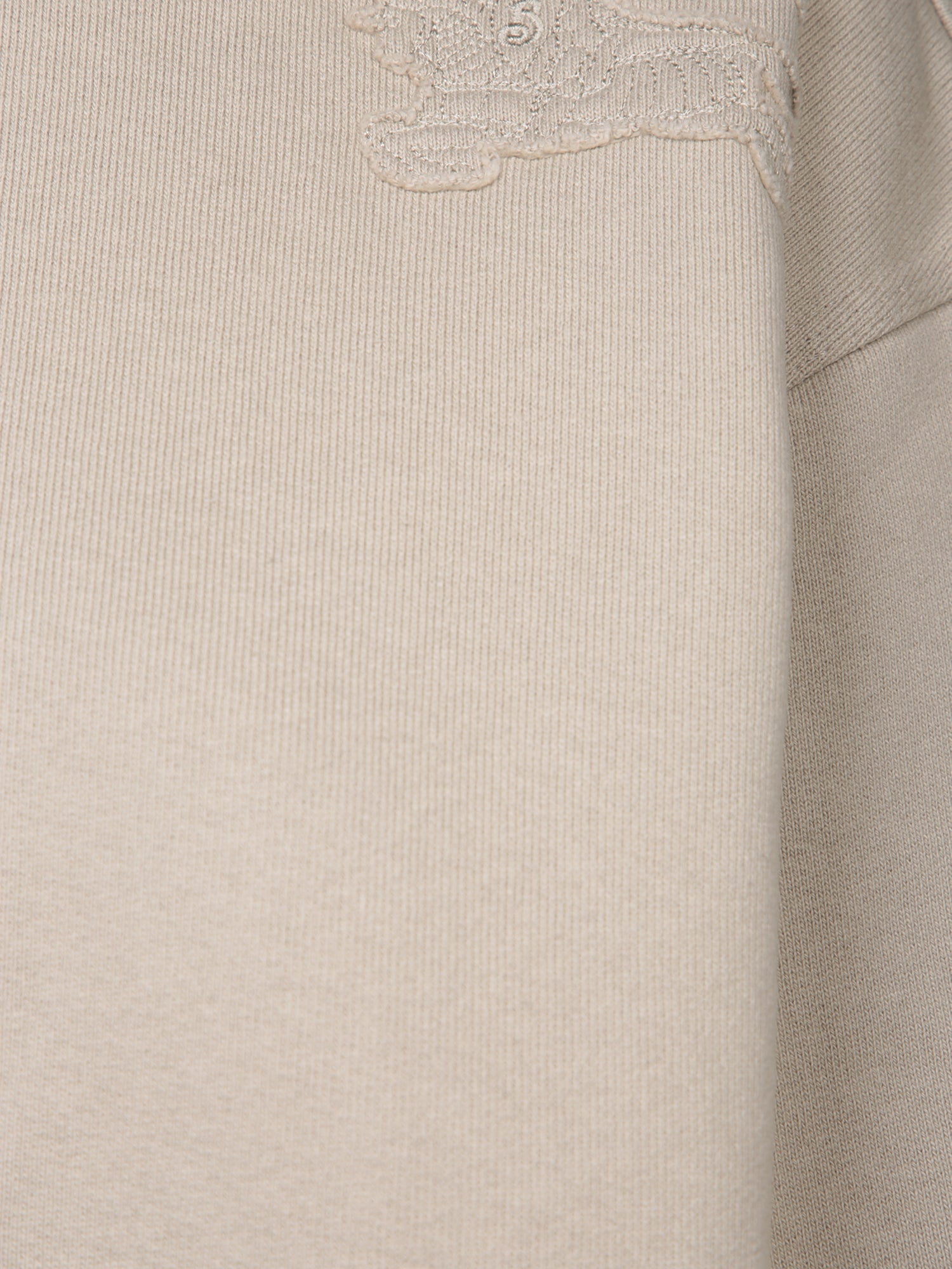 Long sleeve jersey sweatshirt. Ribbed neck, cuffs, and hem. Embroidered knight emblem detail.