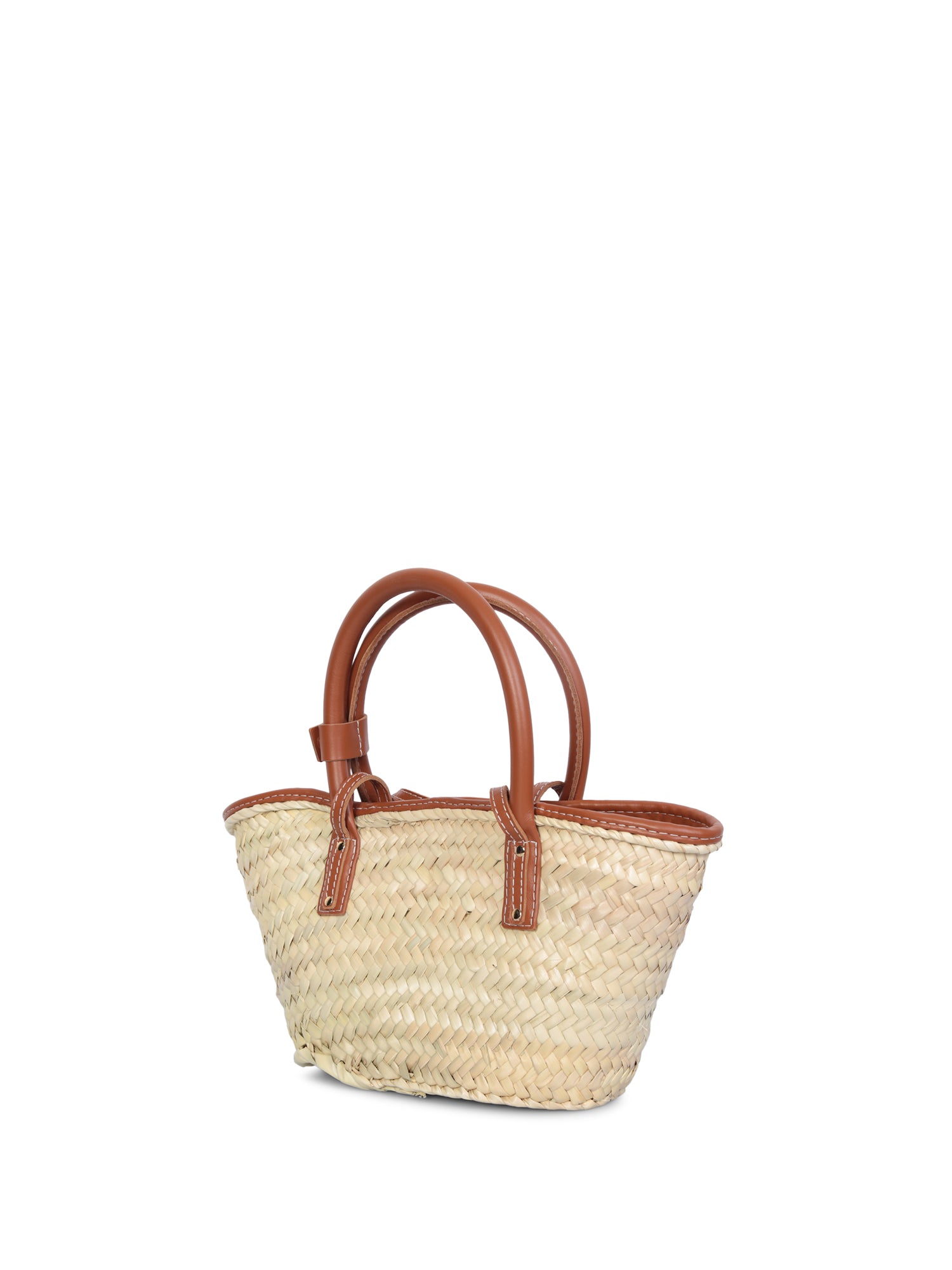 Soft construction. Woven raffia basket. Front flap pocket. Logo plaque. Main compartment. Two rounded handles. Color: brown Width: 34 cm Height: 17 cm