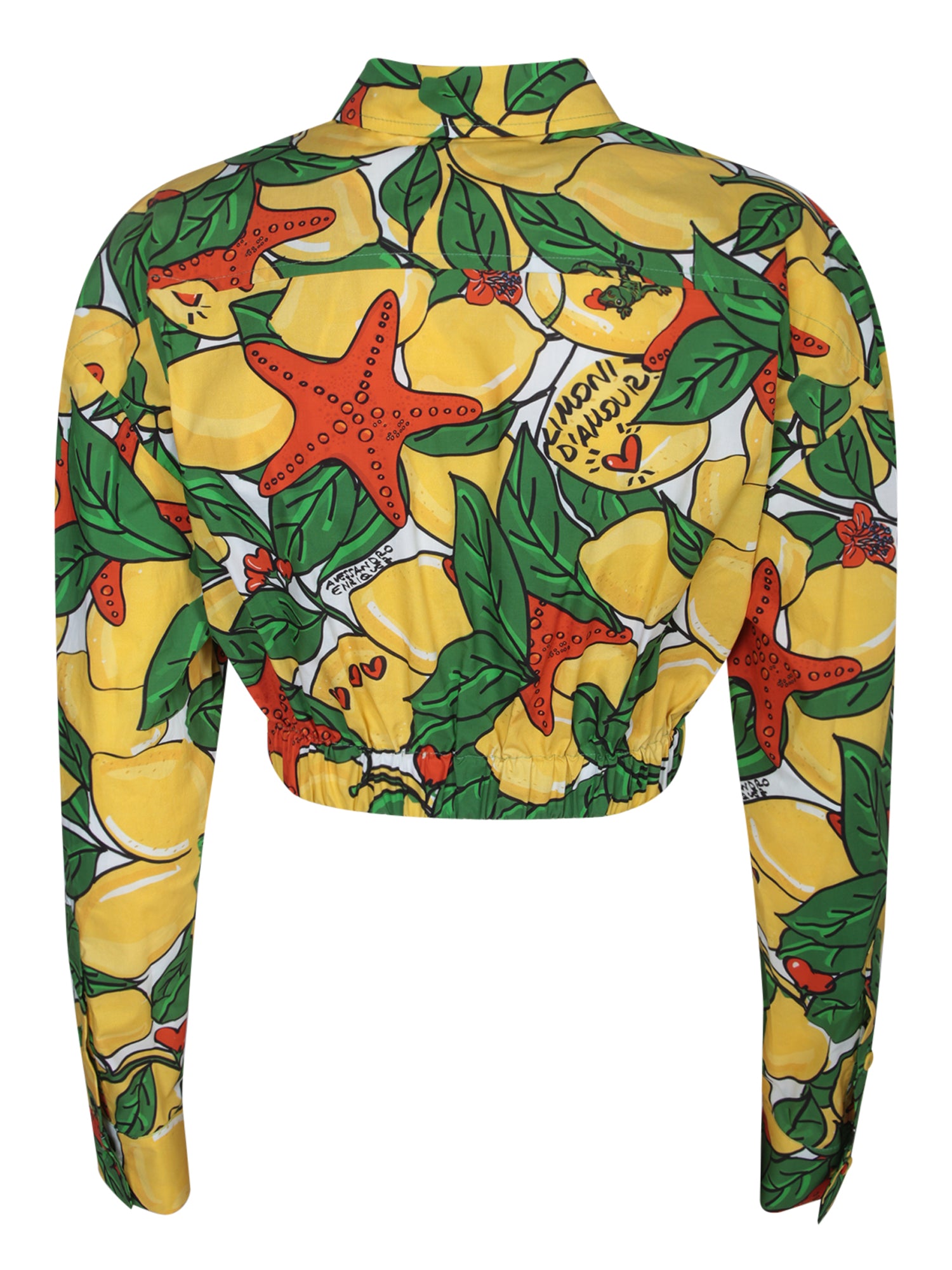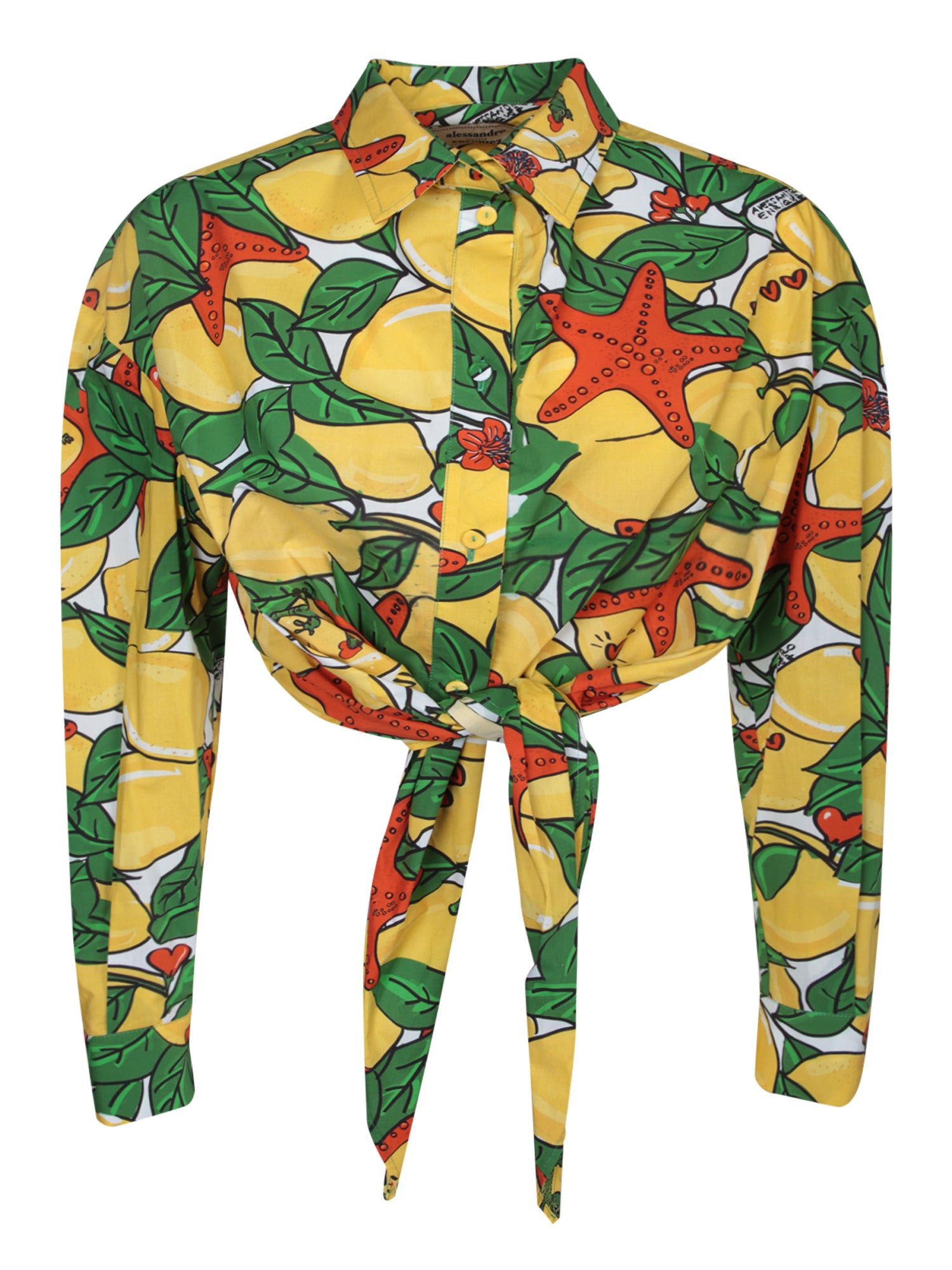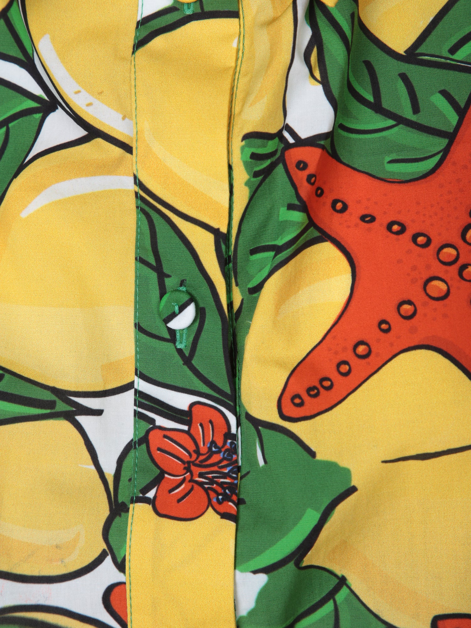 Long sleeves, front knot, poplin fabric. Lemon and starfish motif.
