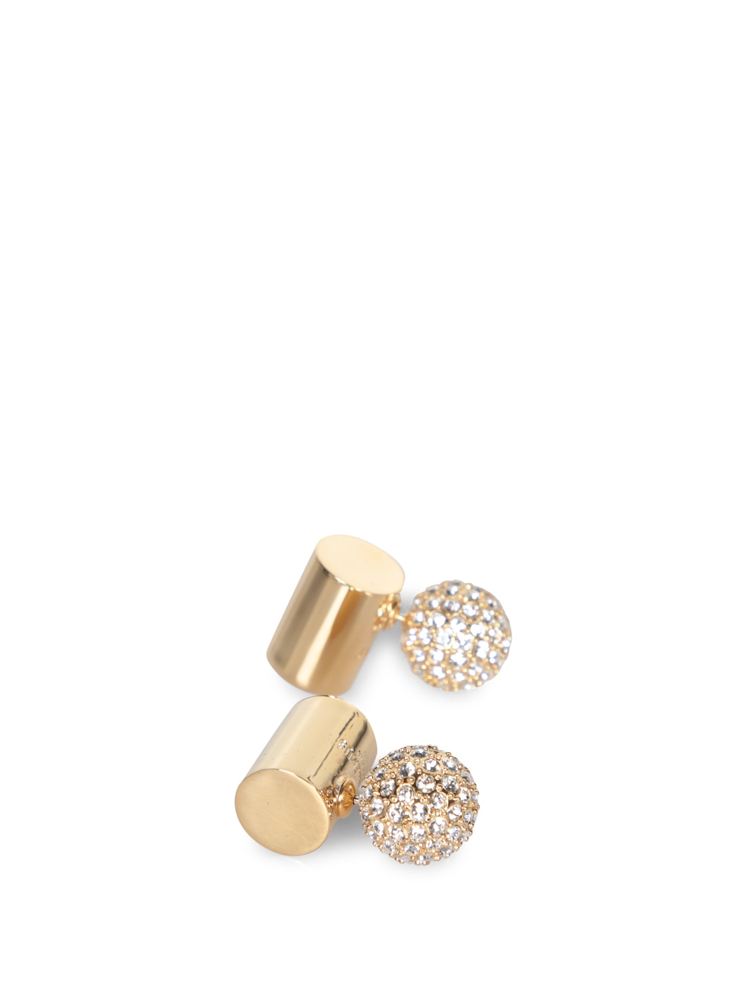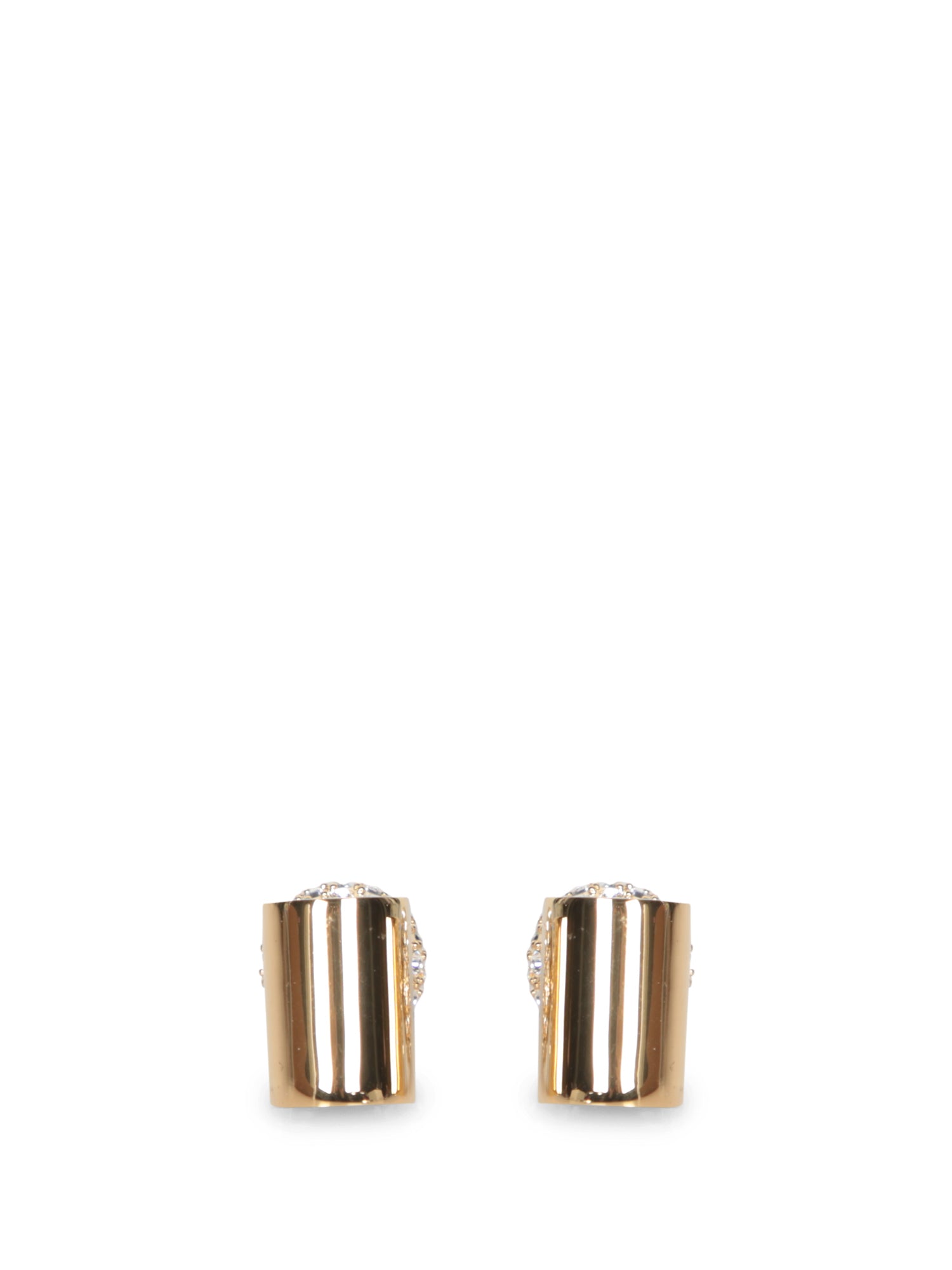 Gold-tone metal earrings. Rhinestone detail. Clip-on design.