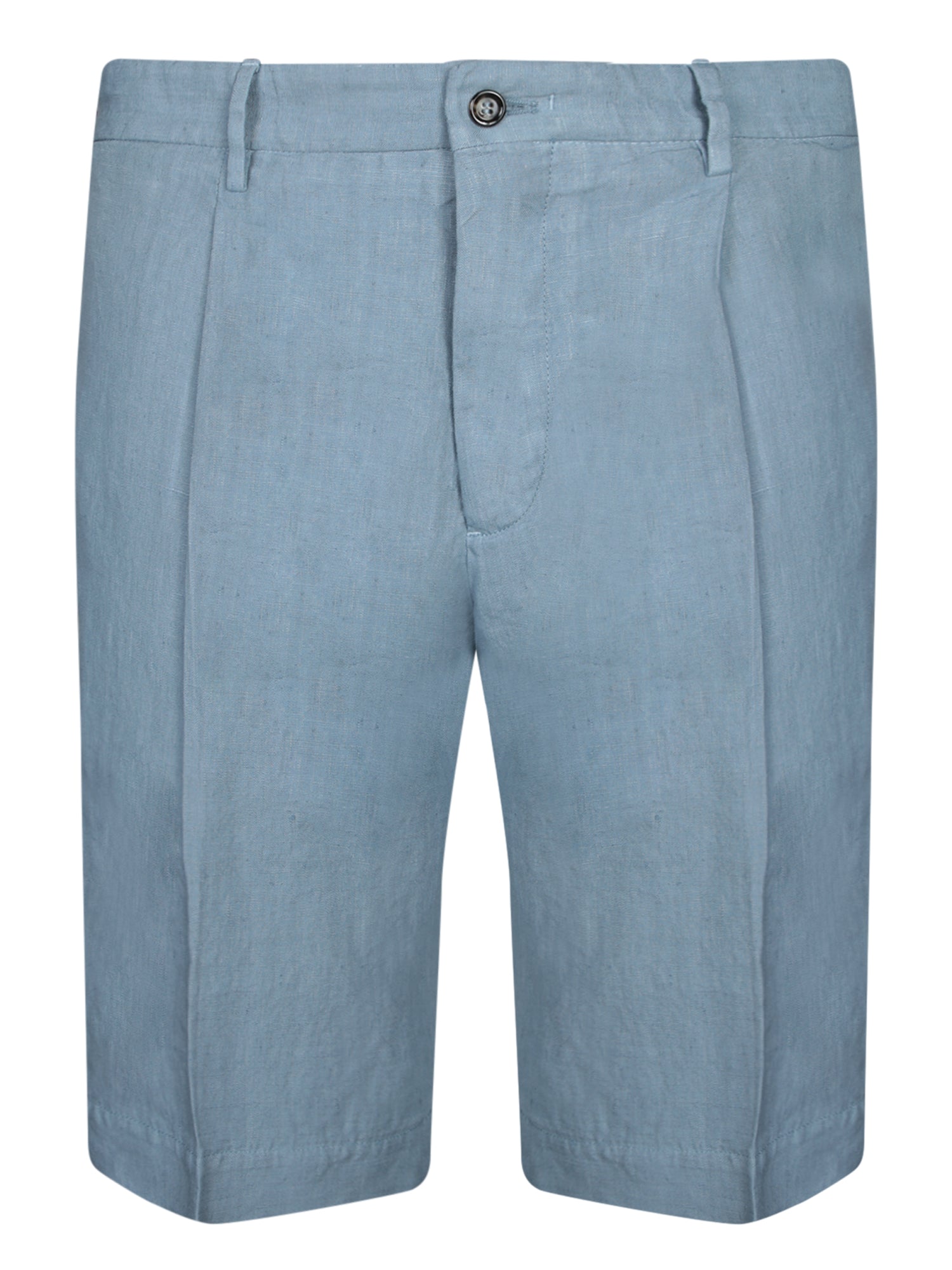Linen Bermuda shorts. Avio color. Zip and button closure. Side and back pockets.