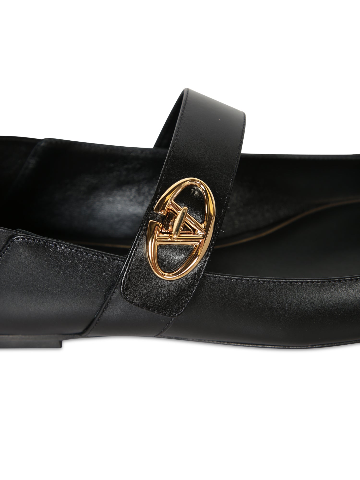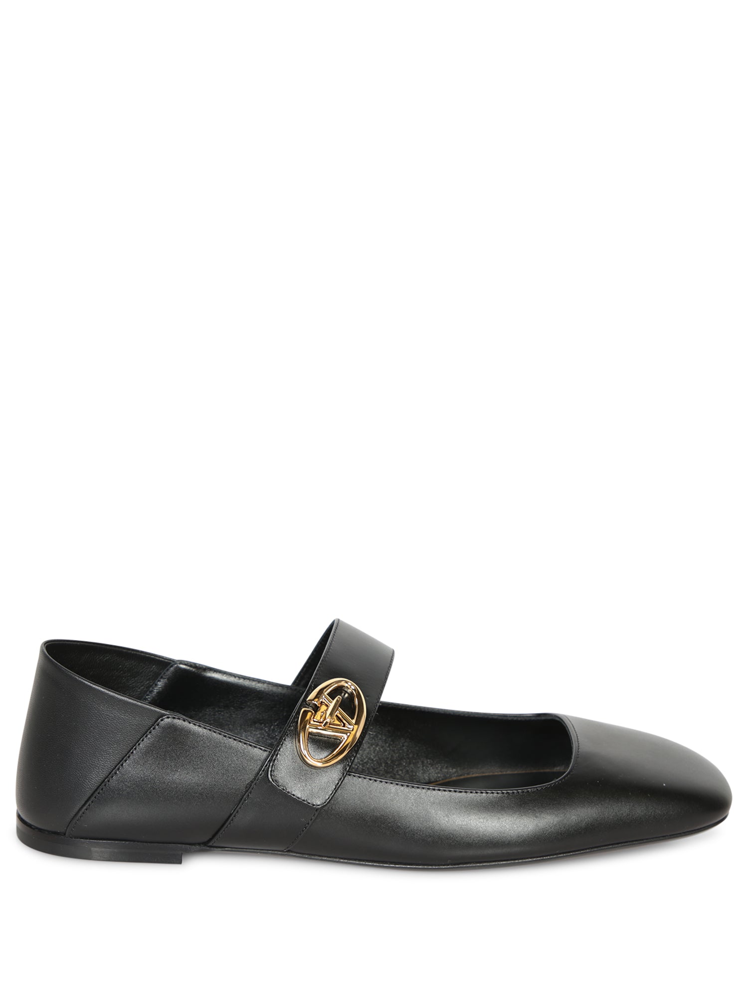 Smooth leather ballerina. Golden VLogo detail on the buckle. Slip-on design.