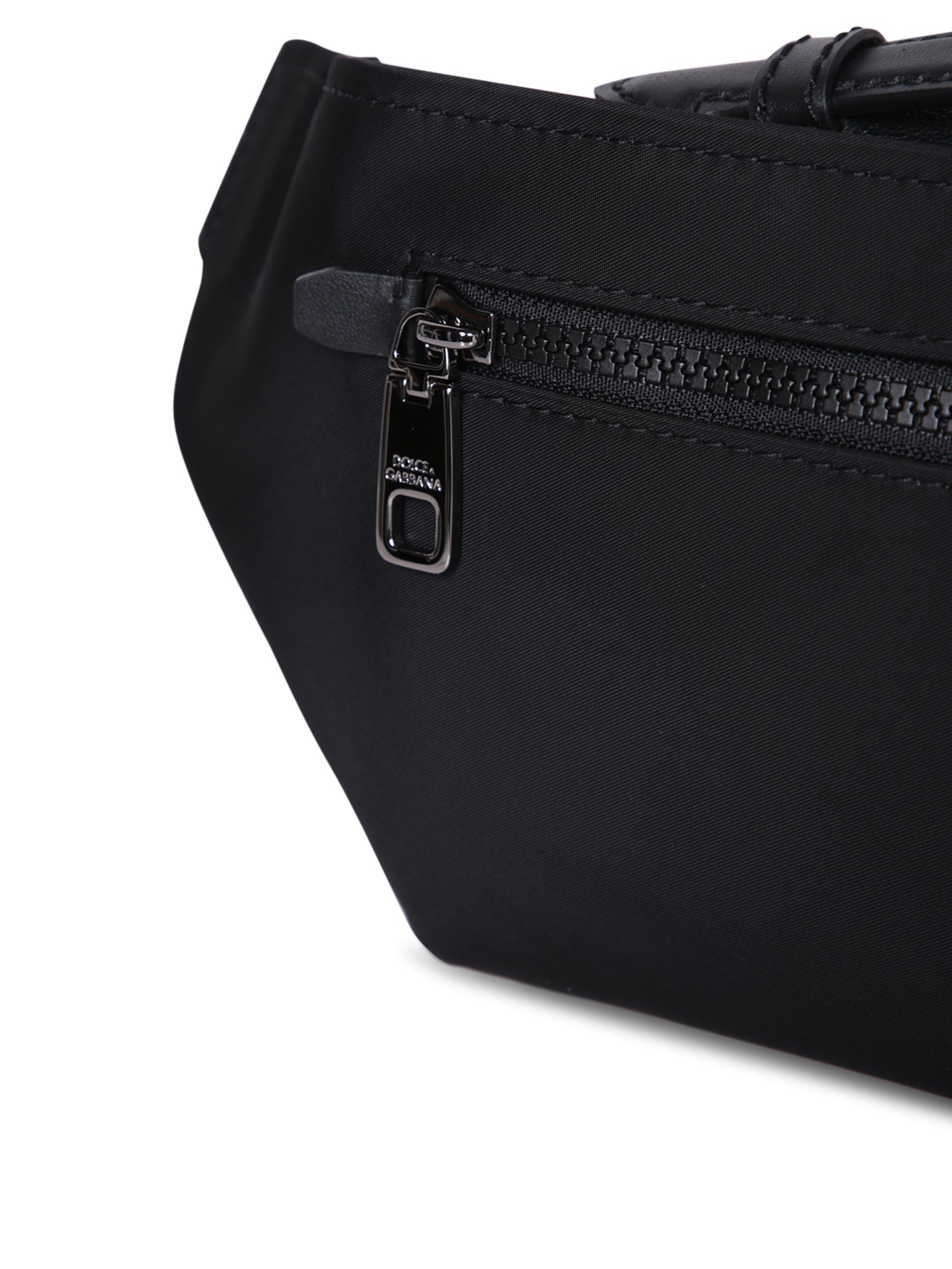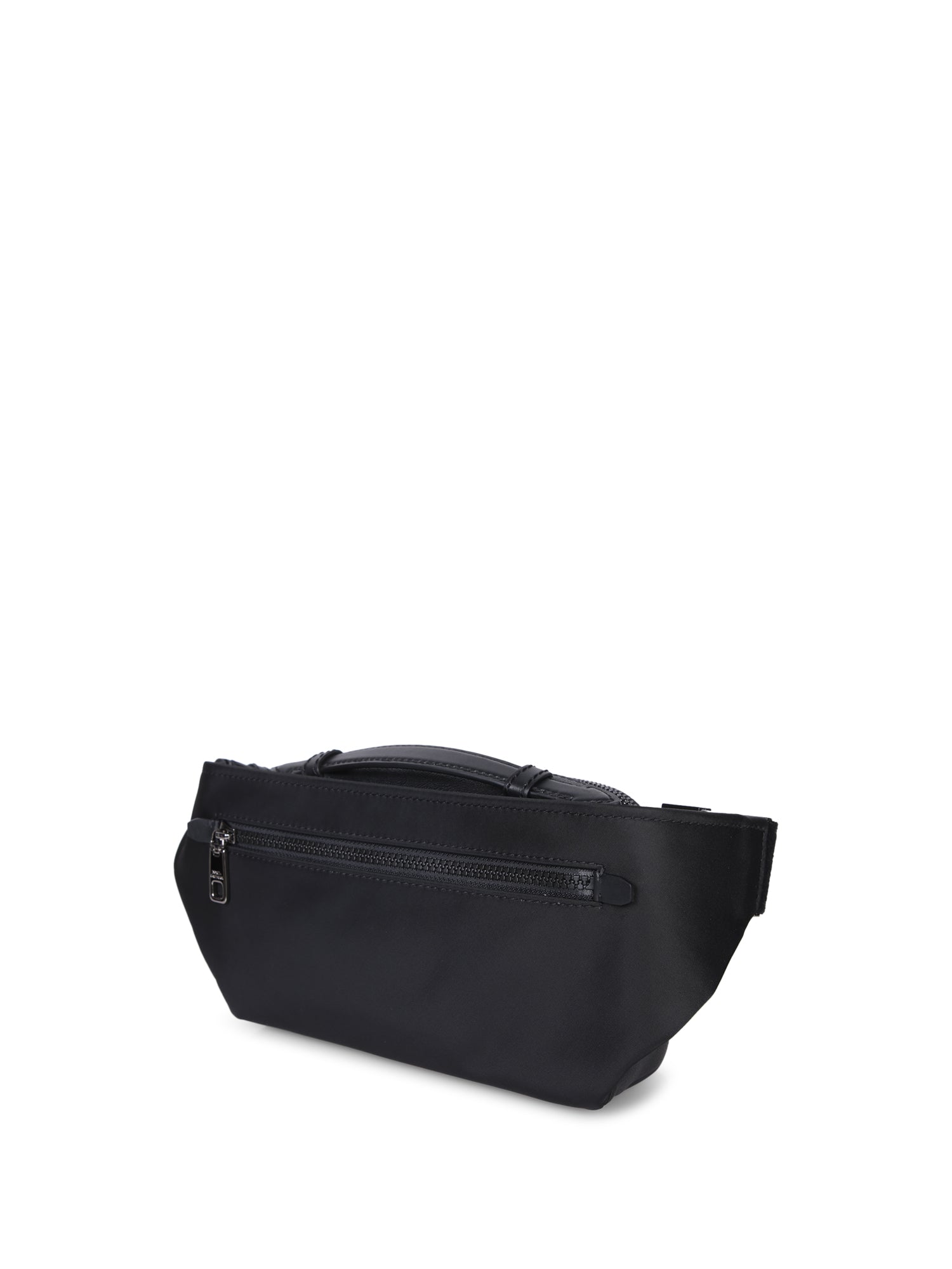 Zip fastenng. Embossed logo plaque. Adjustable belt.