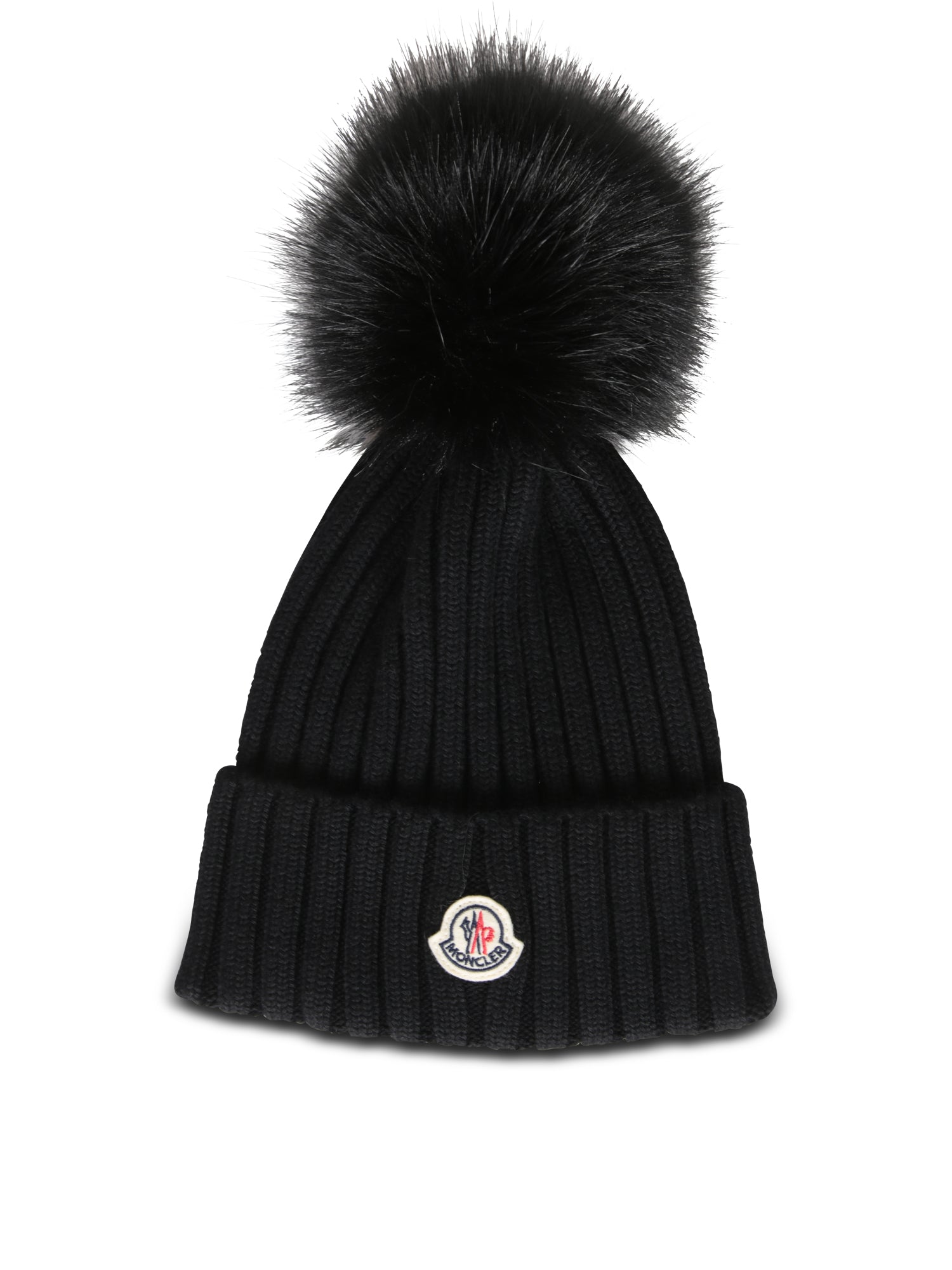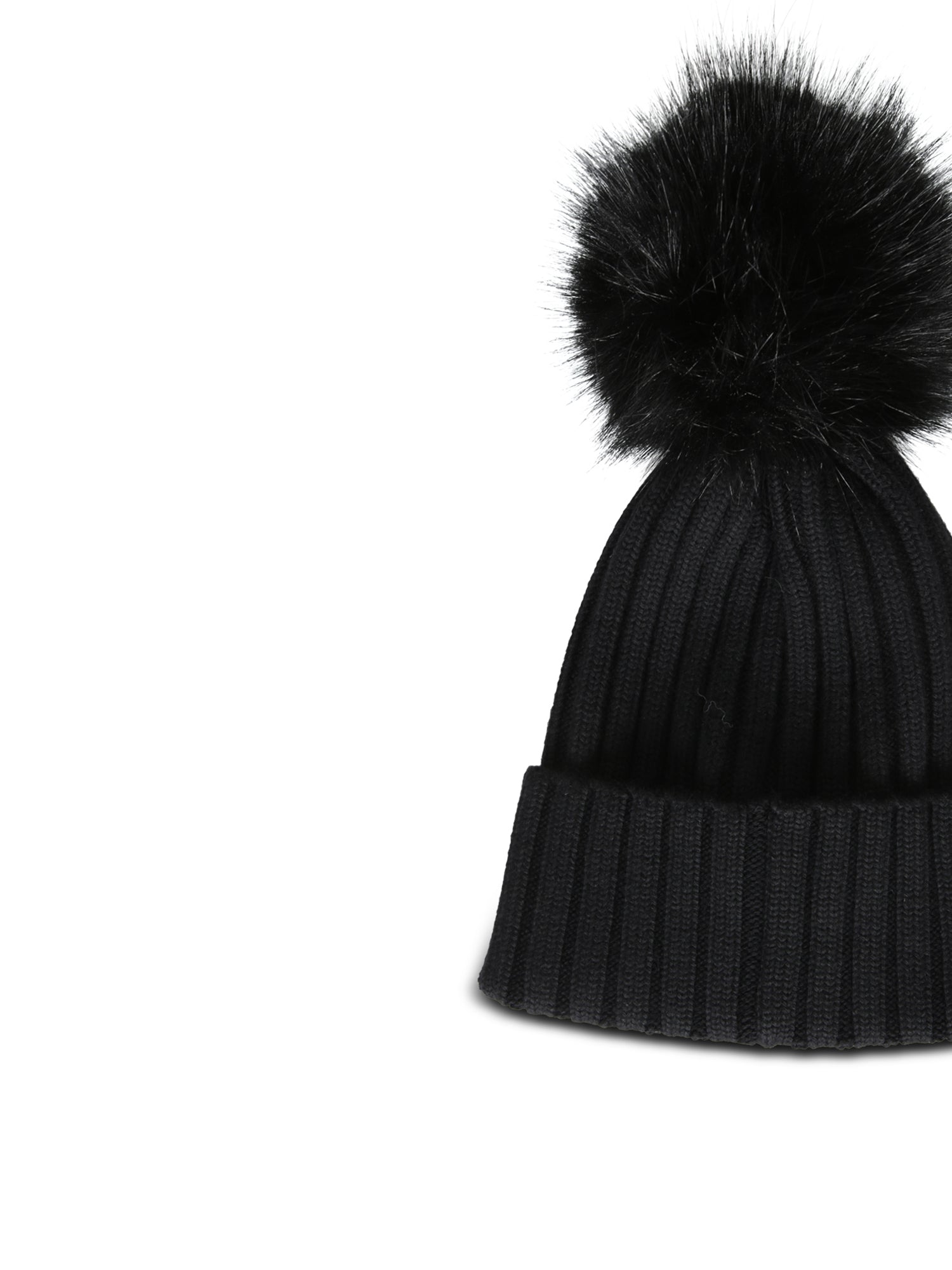 Ribbed knit. Fur pom pom. Embroidered front logo.