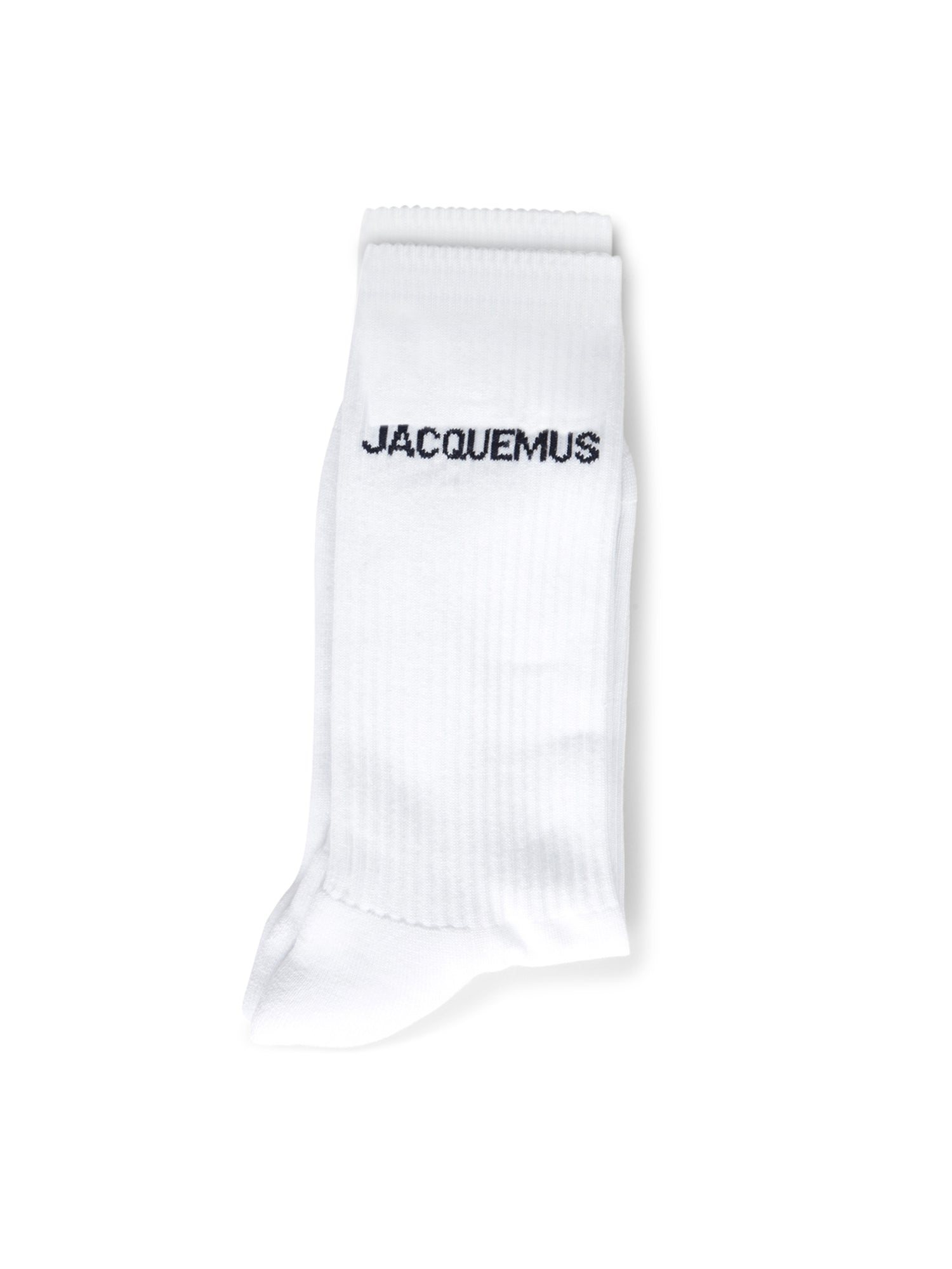 White socks featuring black Jacquemus logo. Reinforced toe and heel. Stretch at calf.