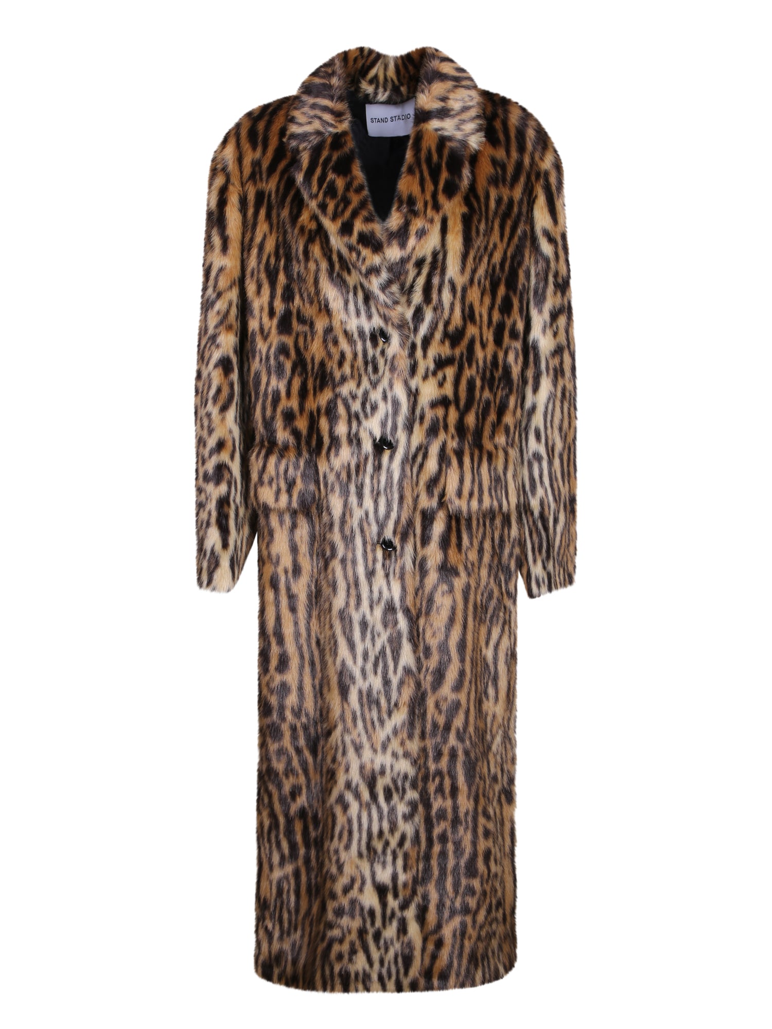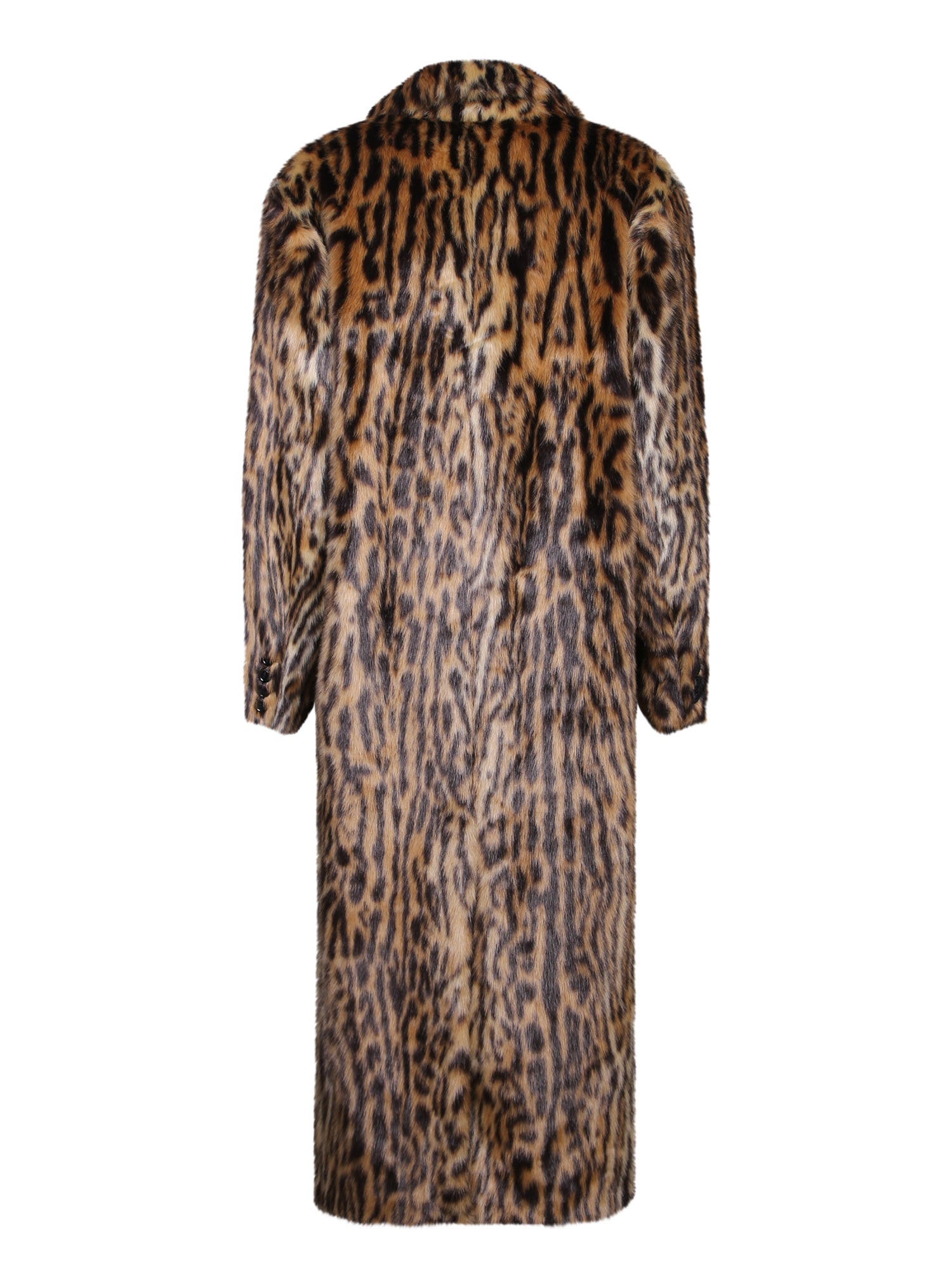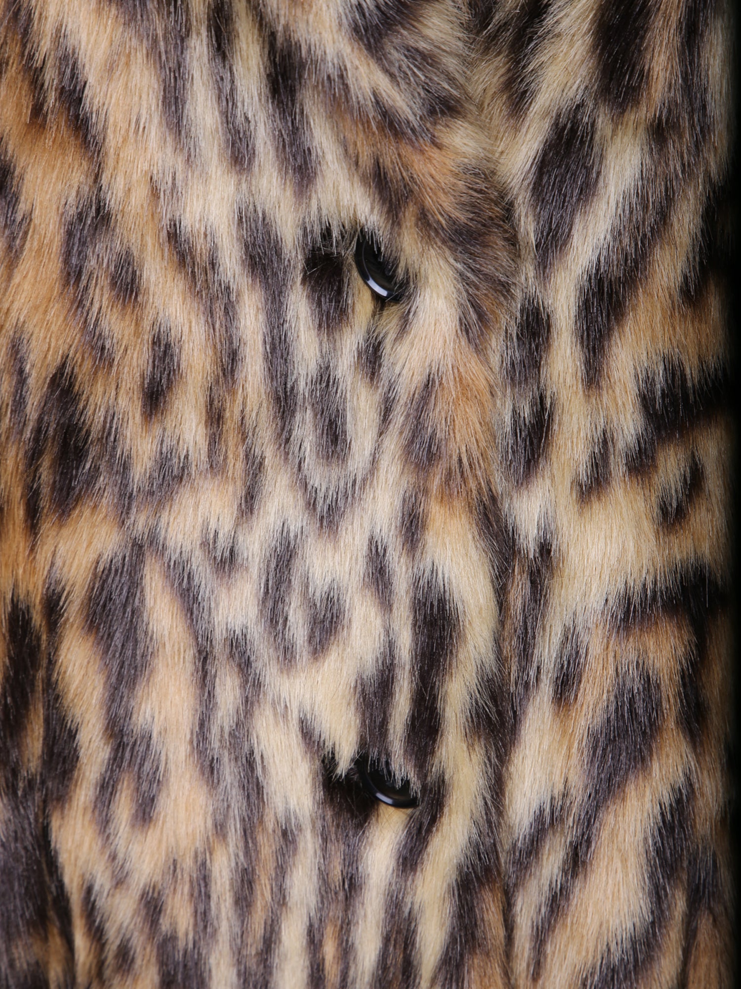 Synthetic fabric coat. Full-body leopard print. Wide collar.
