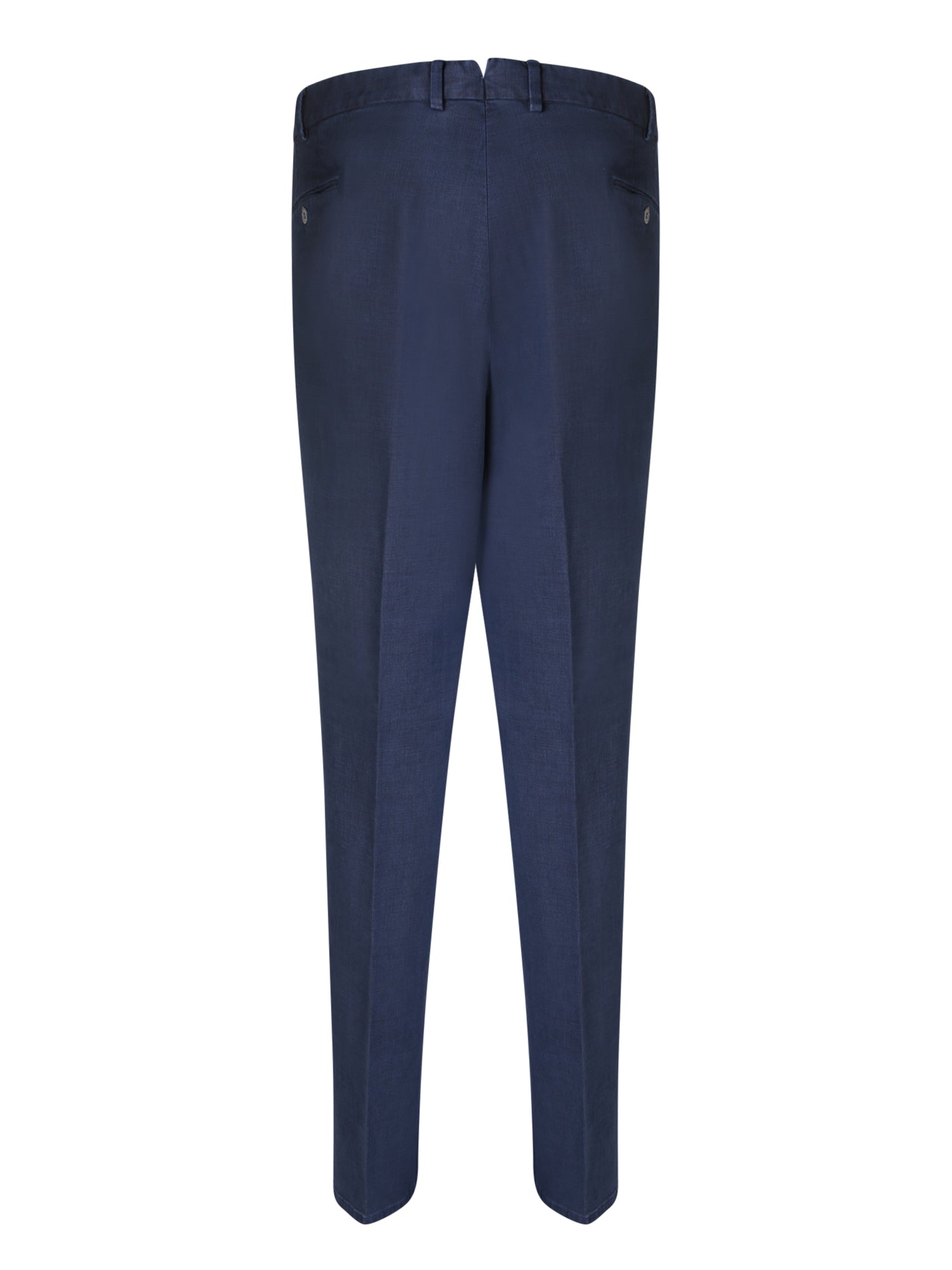 Dell'Oglio's blue cotton pants with a micro pattern offer a sophisticated and contemporary look, enhanced by a fit that ensures comfort and style.